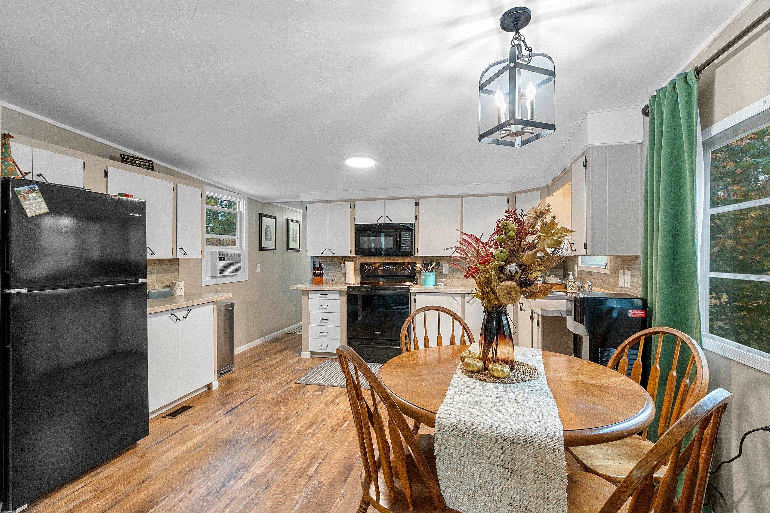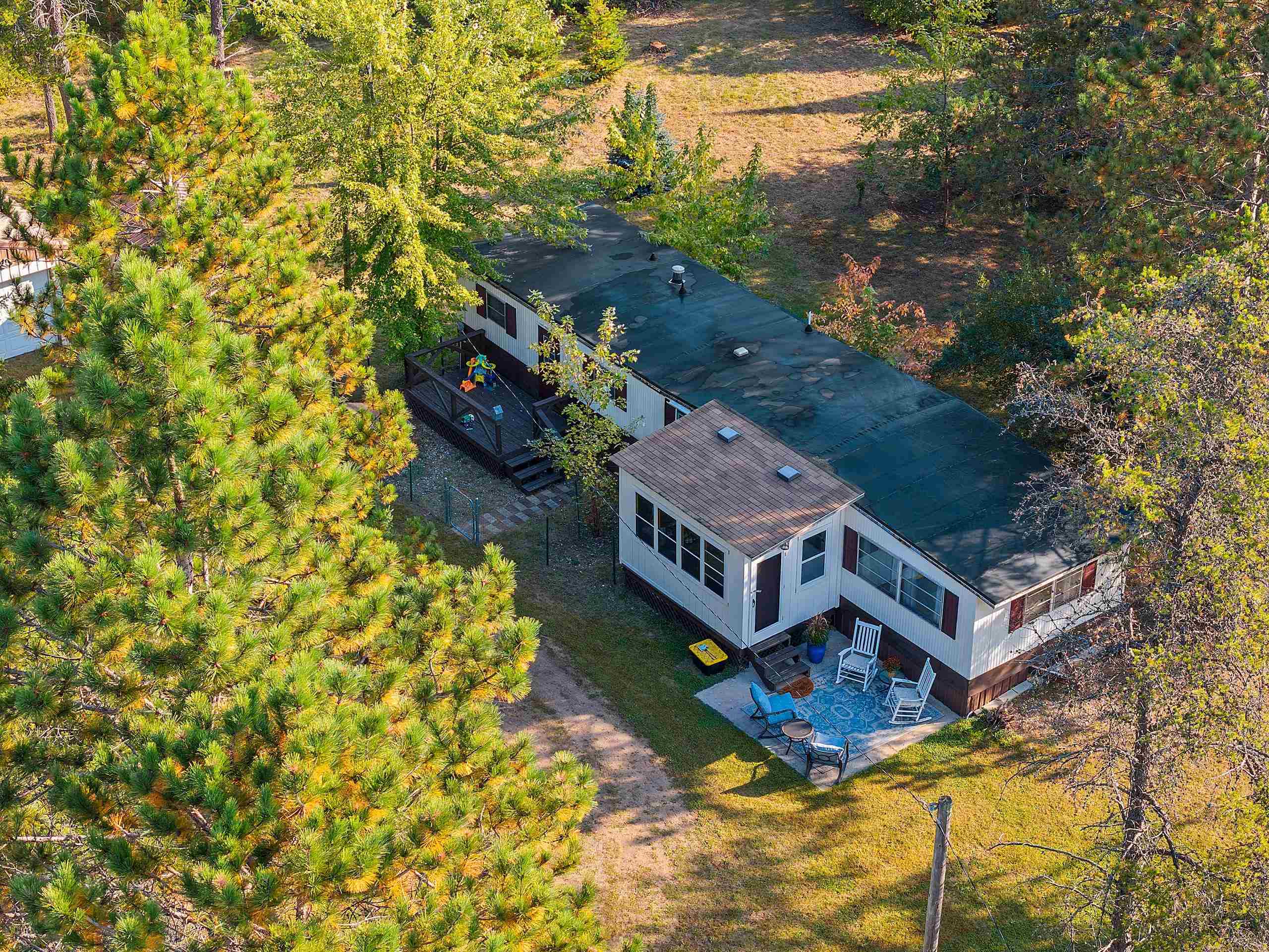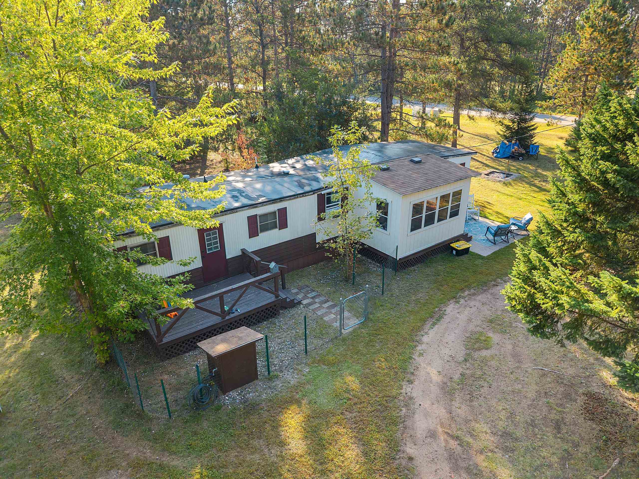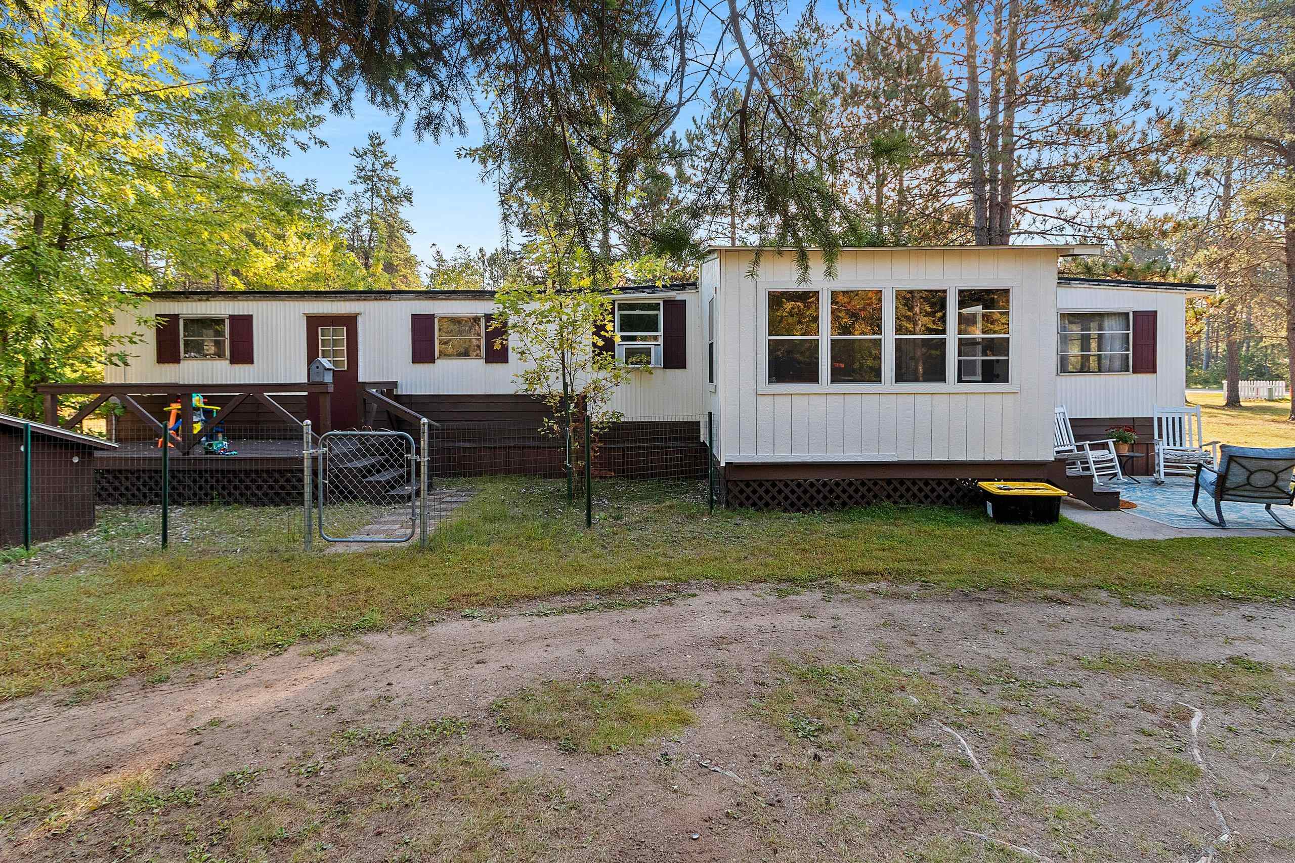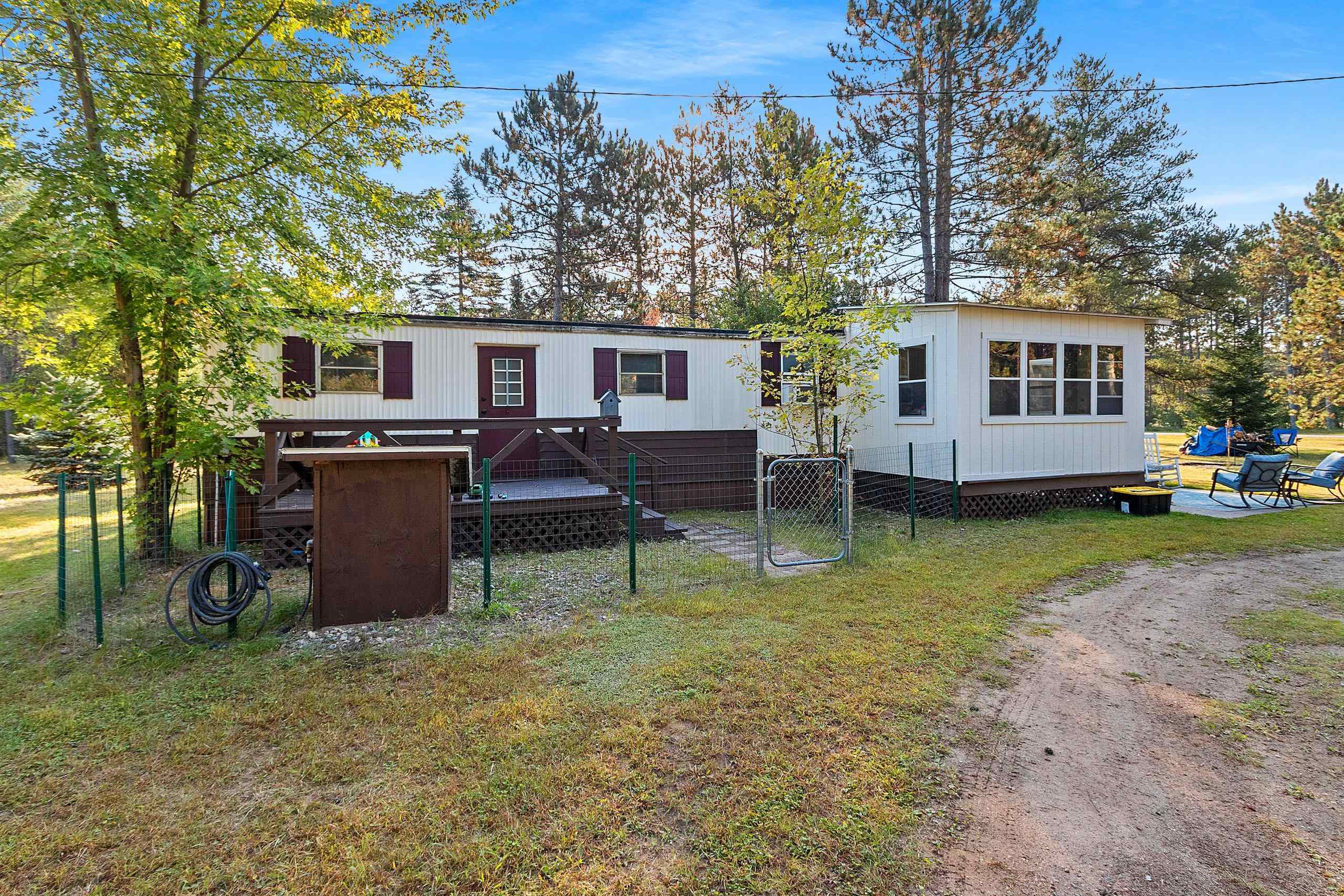 Beautifully updated 2 bedroom home in sought after area! Close to Twin Bridge, Peshtigo River & Johnson Falls, also snowmobile and ATV trails among many other attractions! Super cute mobile home on approx. 1.16 acres. Very well maintained, light & bright interior. Enter through the large mudroom, continue to the spacious living room, kitchen boasts plenty of cabinets, full bath includes newer washer/dryer combo, plus 2 bedrooms. Outside you will find an inviting patio area and fire pit for entertaining, brand new 10x12 storage shed included along with a 3 car garage and plenty of room to roam. Small fenced area off backdoor great for your pet! Perfect to make into your next home or vacation get away. Rubber roof redone 2022 per seller. Appliances included.