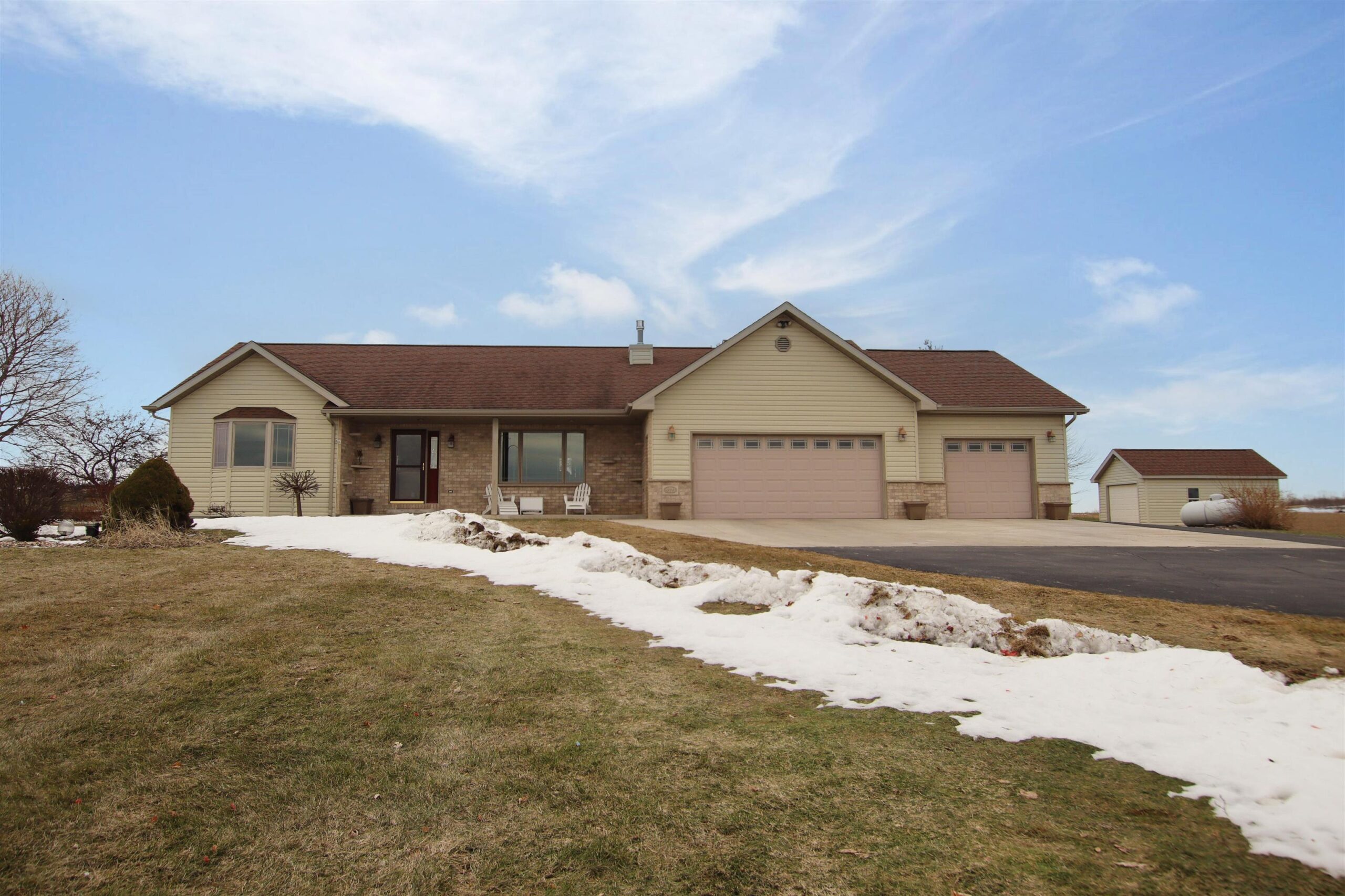 Cute ranch home located in the heart of the Holyland on a beautiful 1 acre country lot! This home has tons to offer featuring 3 beds 2.5 baths and a large three car garage. If the garage wasn’t enough storage for you the full basement with access from the garage and storage shed that matches the home is sure to be. Open concept with a large master suite and porch to take in the country views. Schedule your showing today!