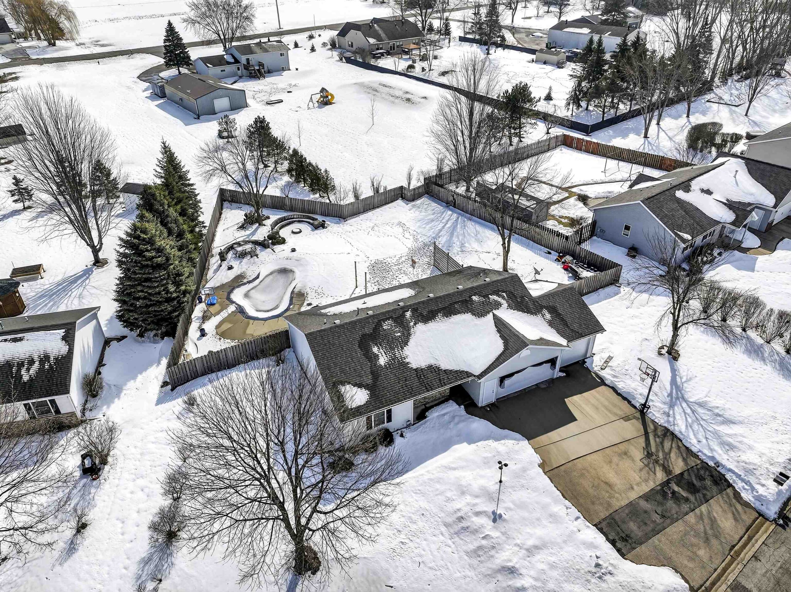 This beautifully maintained ranch offers the perfect balance of space, function, & relaxation. Step inside to a bright, open main level where natural light fills the warm & inviting living spaces. The versatile LL expands your living space —with a rec room & flex space that can adapt to your lifestyle's needs. Outside, the home truly shines! The fully fenced backyard with in-ground pool creates your own personal oasis for summer fun, relaxation, & entertaining. Whether you're hosting gatherings or enjoying a quiet evening, this outdoor space is designed to impress. A spacious 3-car garage provides convenience & flexibility. With solid construction, thoughtful updates, & inviting living spaces, this home offers the perfect setting to create lasting memories. LL has unfinished ceilings.