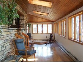 UNIQUE CUSTOM BUILT HOME WITH FRANK LLOYD WRIGHT FEELING! LAKE VIEWS IN ALL DIRECTIONS WITH LOADS OF GORGEOUS SOLID OAK WOOD FLOORS, CHILTON STONE WALLS AND CEDAR CEILINGS. THE WOODBURNING FIREPLACE FURNISHES HEAT IN THE VERY OPEN CONCEPT INTERIOR WHILE HOT WATER HEATING IS LOCATED THROUGHOUT FOR A VERY ENERGY EFFICIENT HOME. A VACATION DESTINATION!