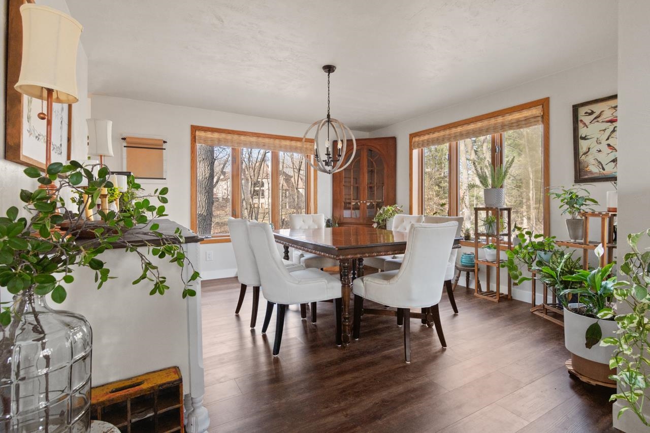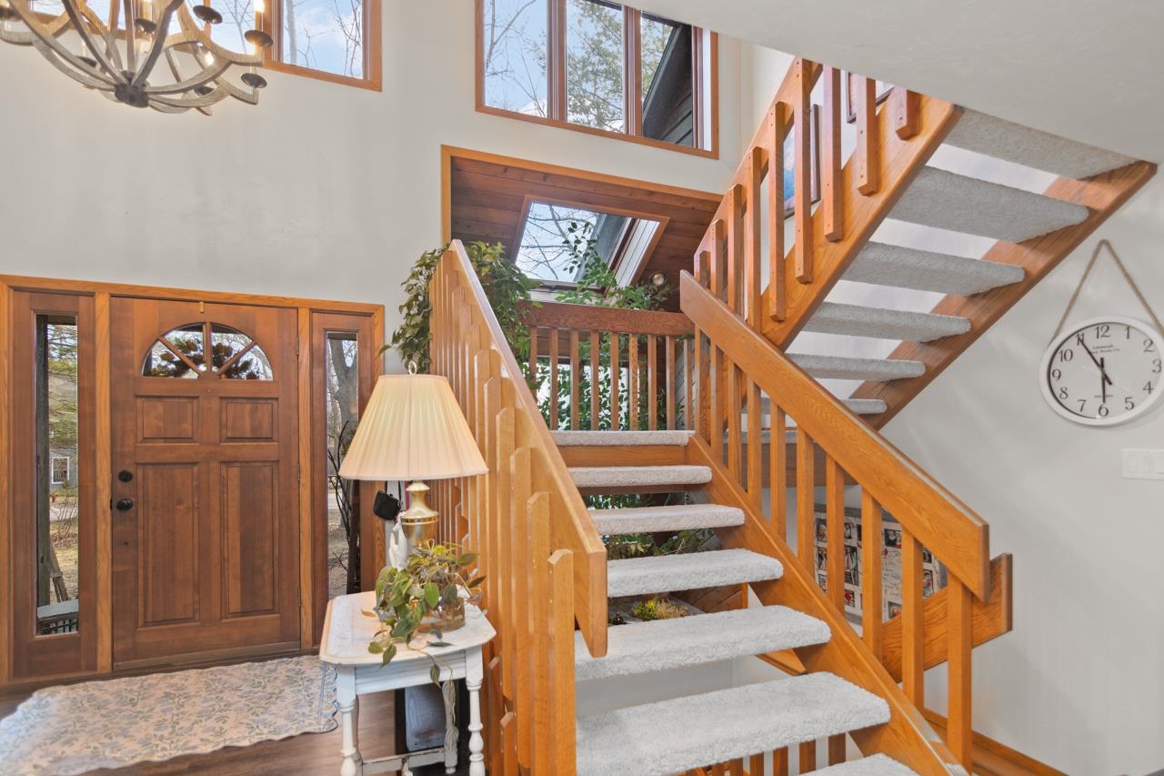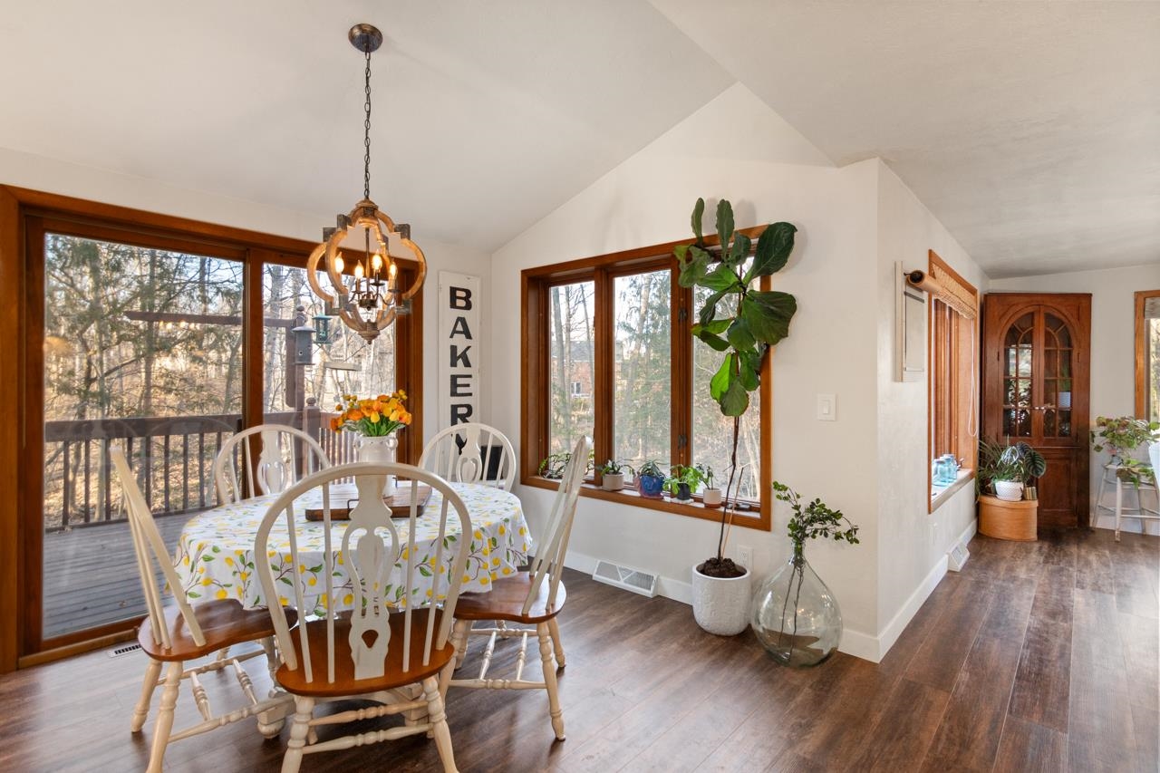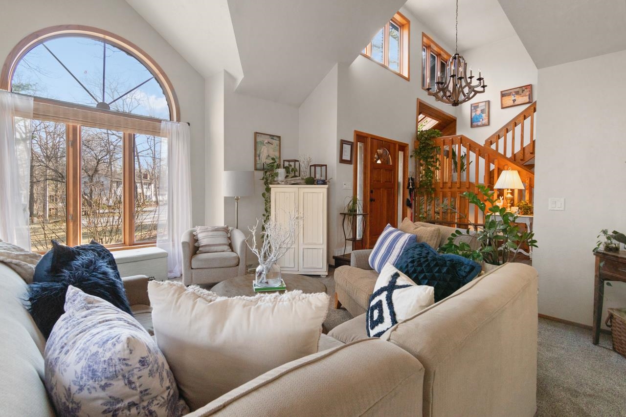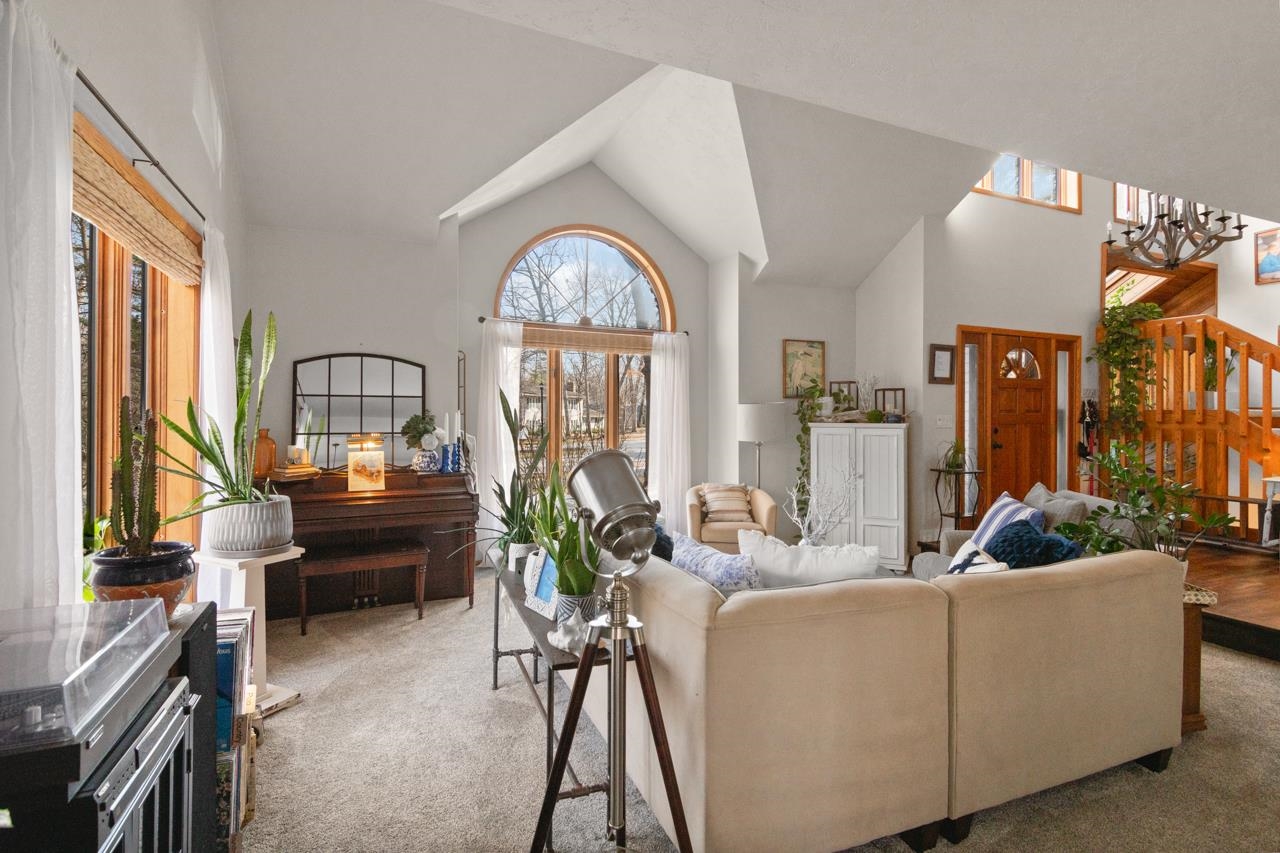Nestled on a serene wooded lot in the heart of Hobart, this 4 bed, 3 bath home is the perfect blend of privacy, comfort, and functionality. Great room with vaulted ceiling and formal dining perfect for entertaining. Warm those chilly nights in family room with a wood-burning fireplace. Kitchen features granite-topped island and generous storage. Luxurious primary suite is a true retreat, featuring dual walk-in closets, sitting area, and spa-like bath with quartz vanity, soaking tub, and tiled walk-in shower. Relax year-round in 4-season room w/ in-floor hot tub or on the expansive deck overlooking peaceful forest views. 1st fl. laundry for convenience. Finished basement with area for possible 5th bedroom. Don’t miss your chance to own this impressive home situated on a quiet cul-de-sac!