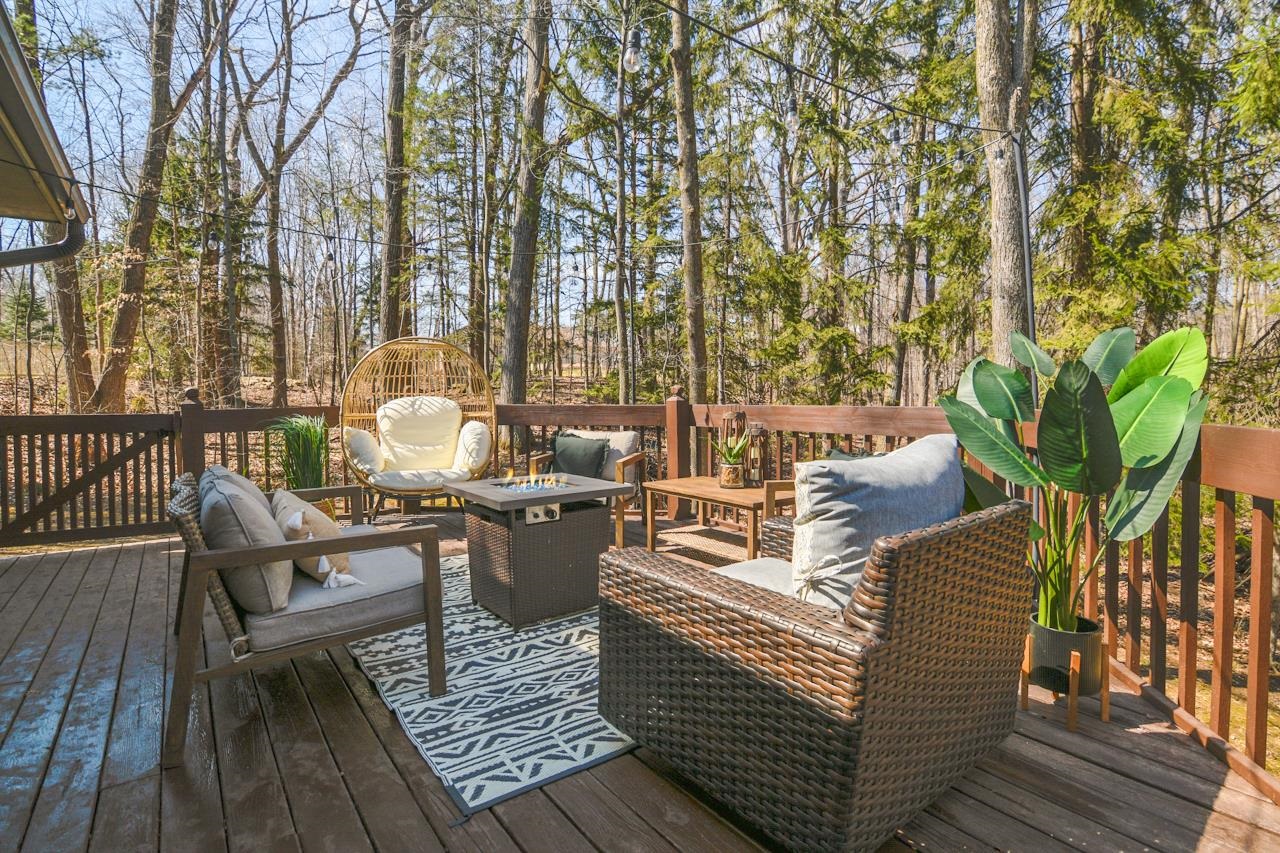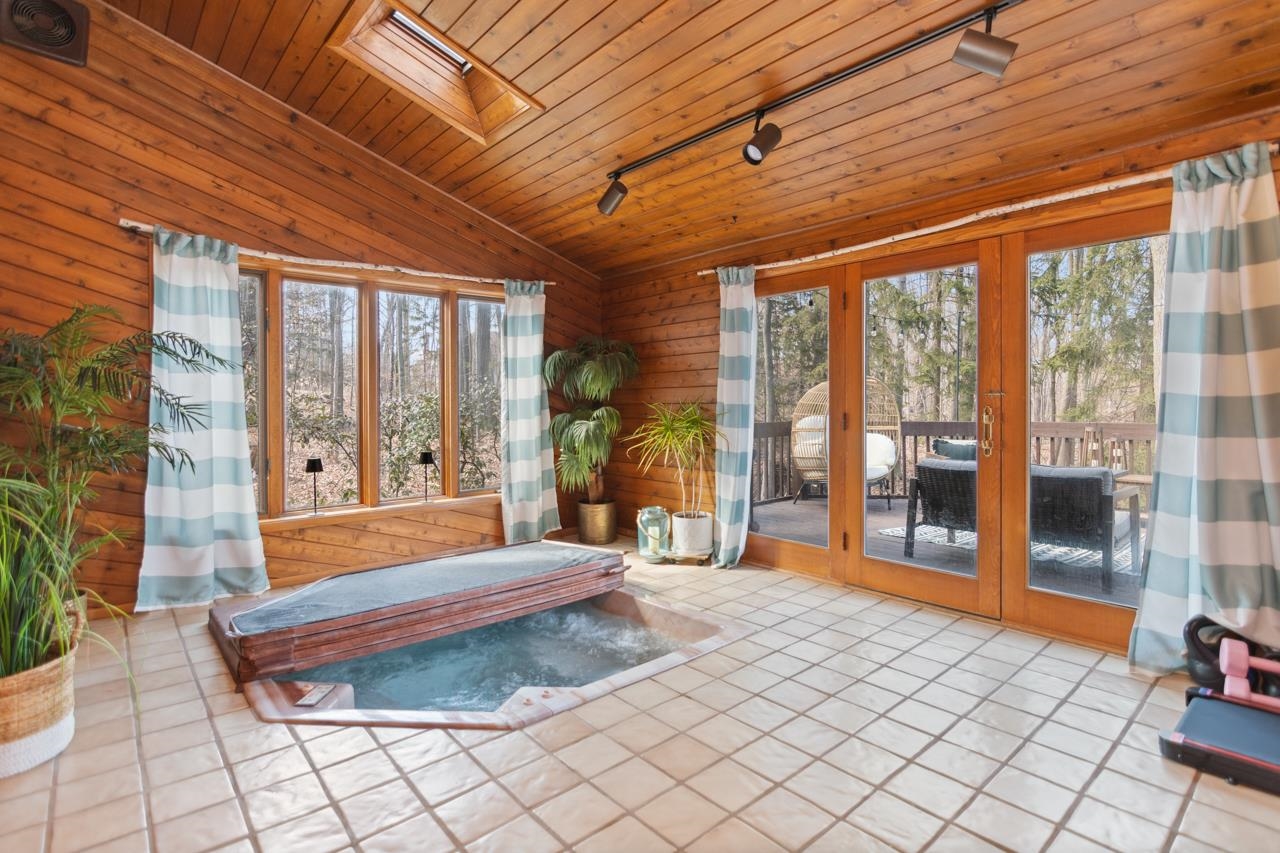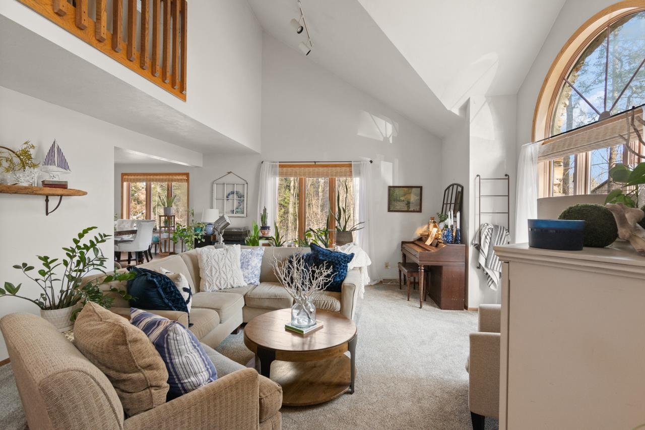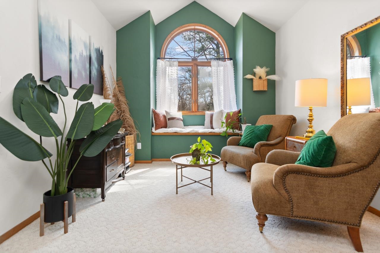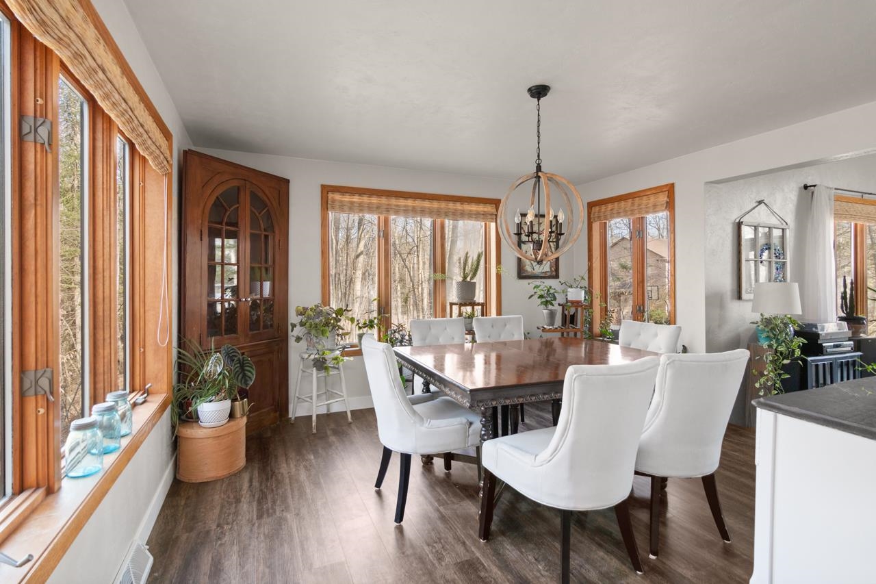 Nestled on a serene wooded lot in the heart of Hobart, this 4 bed, 3 bath home is the perfect blend of privacy, comfort, and functionality. Great room with vaulted ceiling and formal dining perfect for entertaining. Warm those chilly nights in family room with a wood-burning fireplace. Kitchen features granite-topped island and generous storage. Luxurious primary suite is a true retreat, featuring dual walk-in closets, sitting area, and spa-like bath with quartz vanity, soaking tub, and tiled walk-in shower. Relax year-round in 4-season room w/ in-floor hot tub or on the expansive deck overlooking peaceful forest views. 1st fl. laundry for convenience. Finished basement with area for possible 5th bedroom. Don’t miss your chance to own this impressive home situated on a quiet cul-de-sac!
