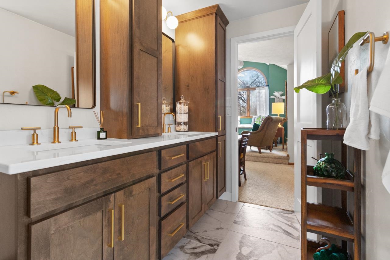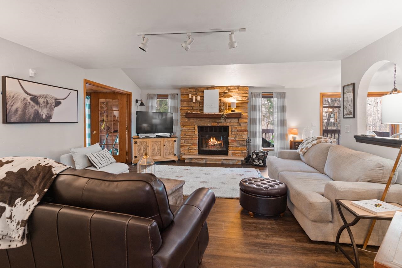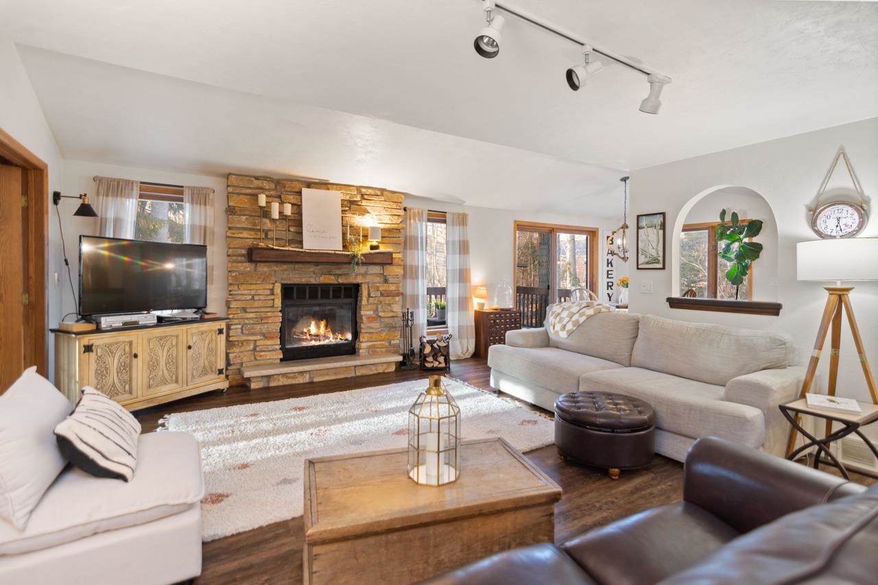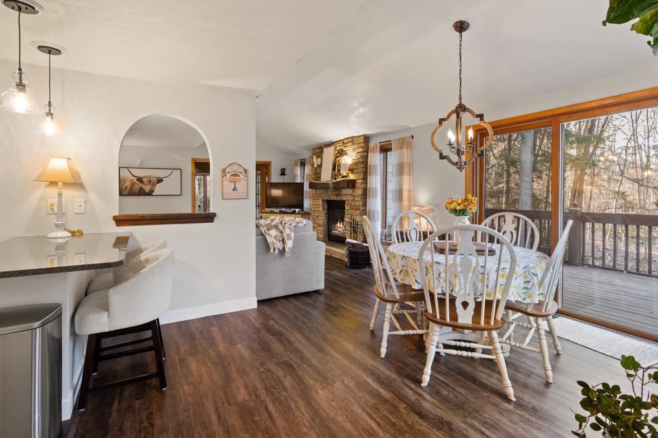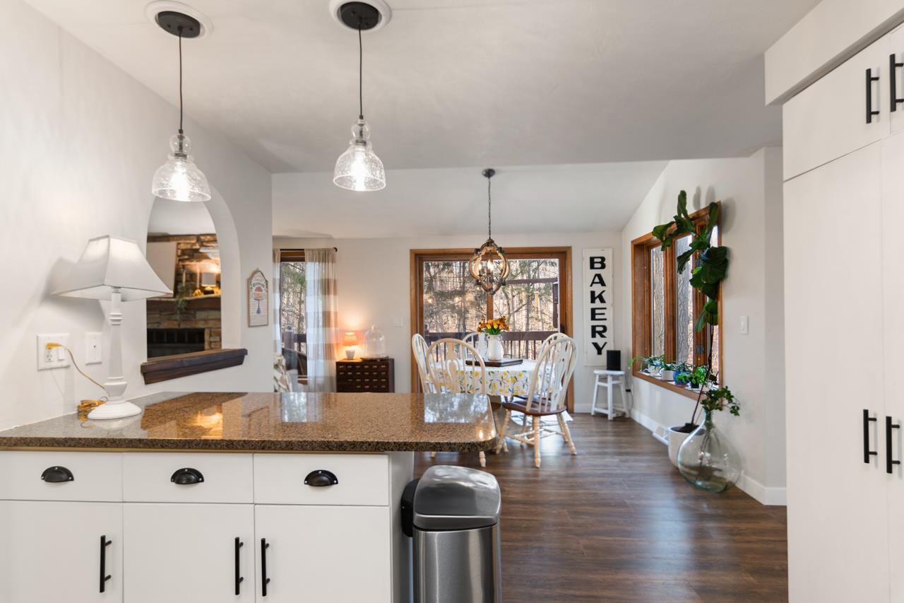 Nestled on a serene wooded lot in the heart of Hobart, this 4 bed, 3 bath home is the perfect blend of privacy, comfort, and functionality. Great room with vaulted ceiling and formal dining perfect for entertaining. Warm those chilly nights in family room with a wood-burning fireplace. Kitchen features granite-topped island and generous storage. Luxurious primary suite is a true retreat, featuring dual walk-in closets, sitting area, and spa-like bath with quartz vanity, soaking tub, and tiled walk-in shower. Relax year-round in 4-season room w/ in-floor hot tub or on the expansive deck overlooking peaceful forest views. 1st fl. laundry for convenience. Finished basement with area for possible 5th bedroom. Don’t miss your chance to own this impressive home situated on a quiet cul-de-sac!
