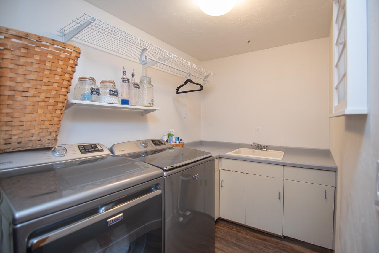 Fridge, washer/dryer, TV Mount, white bedrm chandelier, grg fridge, bsmt freezer, wall shelf living rm, curtain rods in bedrms, 2 bidet toilet toppers