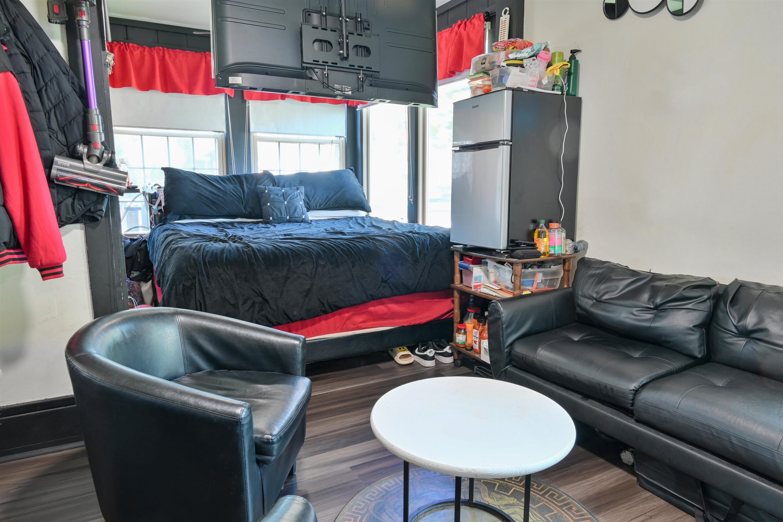 fridge, stove, dishwasher (unhooked), microwave, washer, dryer, accessibility elevator, ring doorbell, basketball hoop, living room a/c unit