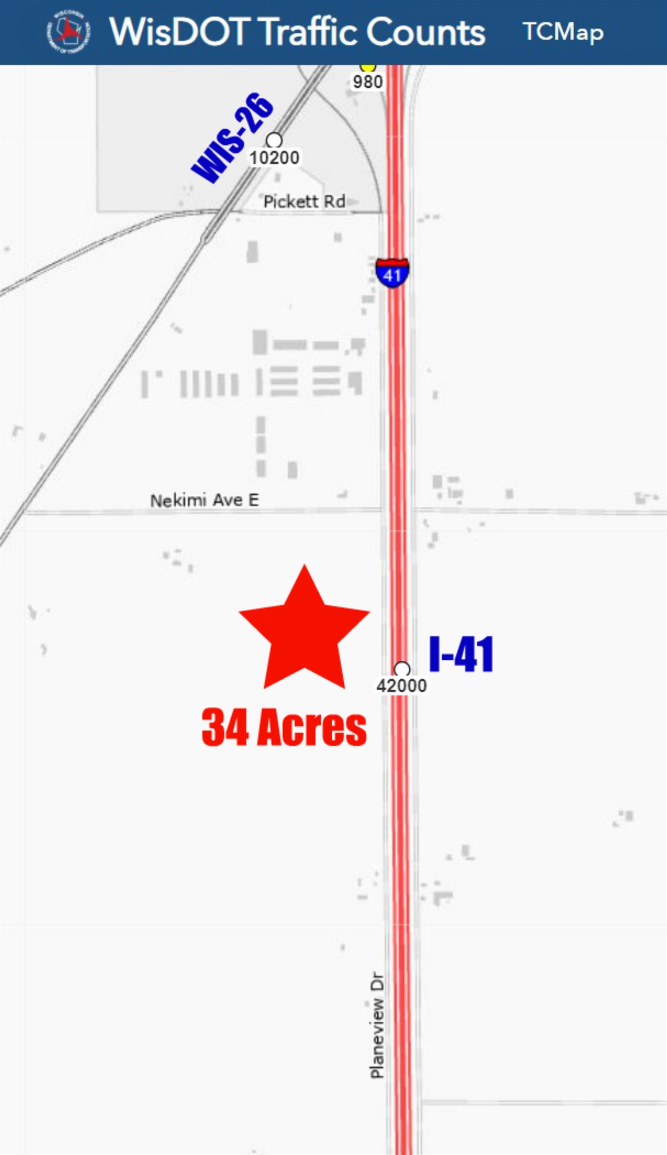 PRIME INTERSTATE FRONTAGE ~ HIGH TRAFFIC & VISIBILITY! 34+ Acres along I-41 ~ Over 40,000 Vehicles Per Day! 1/2 Mile from WIS-26 ~ Additional 10,000 Vehicles Per Day! Strategically located on I-41 with direct routes to Milwaukee, Madison, and Green Bay! Zoned A2 and B-3 – General Business District, allowing a wide range of commercial uses! 34.16 Acres (Two Parcels (22.6 Ac & 11.5 Ac) with potential for an additional 20 Acres available. This property offers Premier Visibility and Access along I-41 in Oshkosh - at the heart of the Fox Valley. The site is ideally located about 85 miles north of Milwaukee, 65 miles Northeast of Madison, 50 miles south of Green Bay, within a short drive of Appleton and Fond du Lac, providing convenient reach to the state’s key population and business centers.