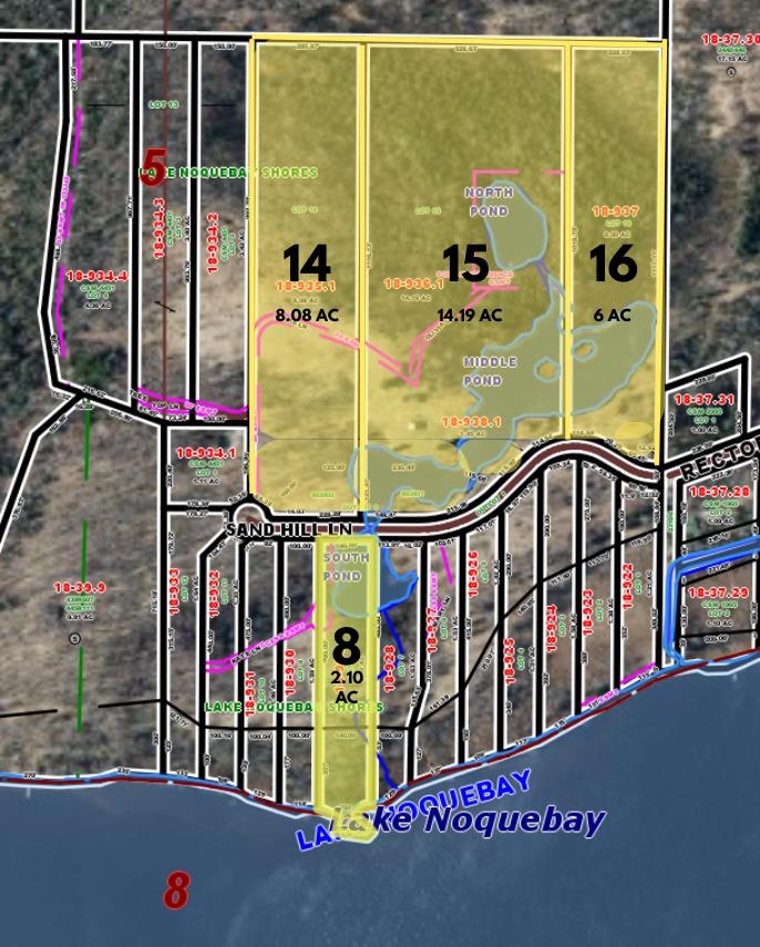 Now 30 acres with 350’ of frontage on full-rec Lake Noquebay! This 4-lot package (Lots 8, 14, 15, 16) features lake frontage, multiple buildable sites, woods, open land, and three scenic ponds. Lot 8 includes boardwalk and lake frontage. Lot 14 has generous open land and woods. Lot 15 offers a gazebo, bridge, and hilltop views. Lot 16 adds 6 acres. A rare opportunity for a multi-home compound or private getaway on one of NE Wisconsin’s sought-after recreational lakes. Shoreland zoning applies on Lot 8.