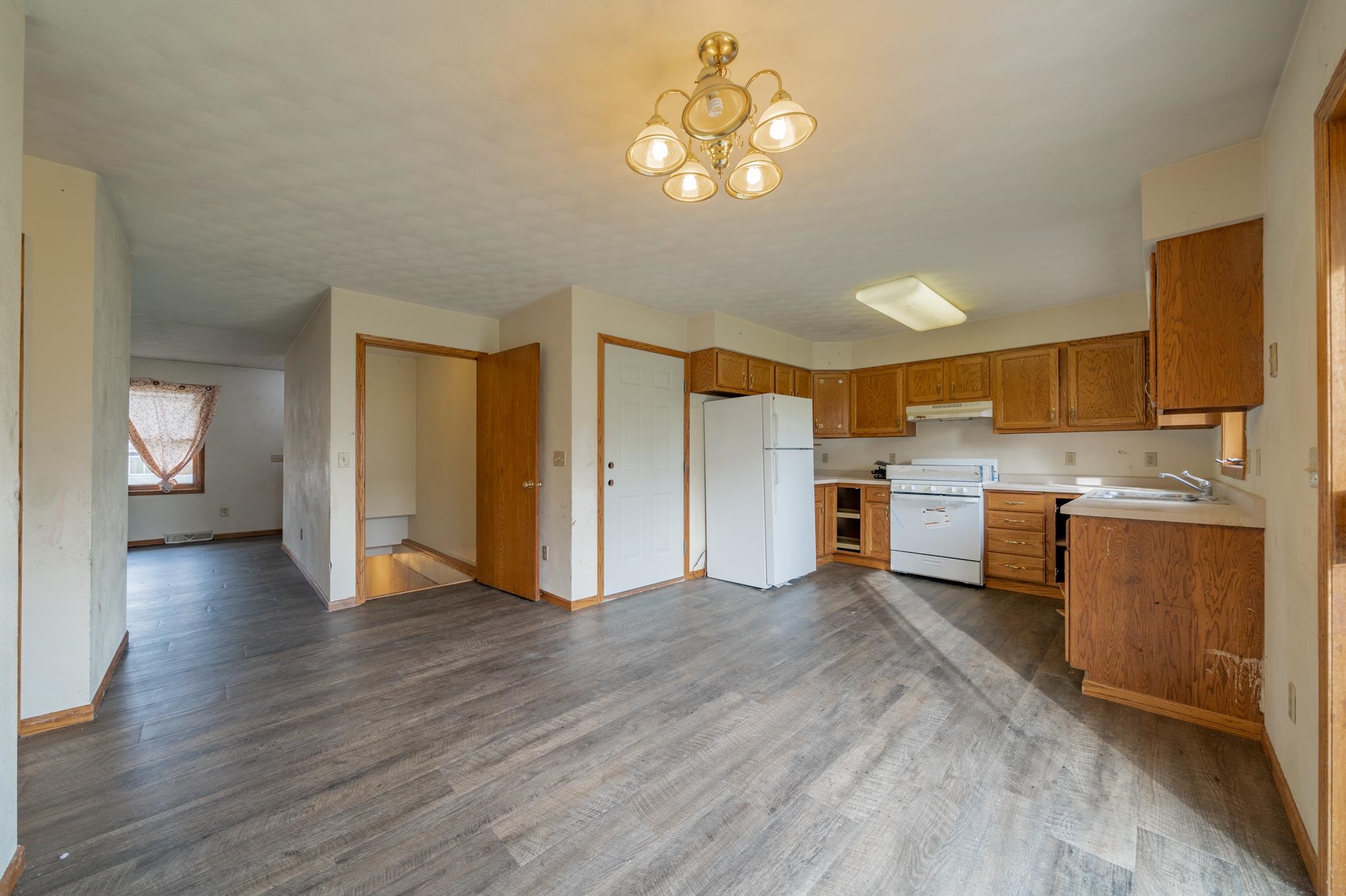 Great opportunity to Owner Occupy or Invest in Real Estate! Bring your finishing touches to this 1 story duplex. Both units offer 2 bedrooms, 1 full bath, 1st floor laundry, kitchen, dining and living room with patio door access to a large backyard. LL is a blank slate with many opportunities for storage or add. finished square footage. New LVP and carpeting in both units many doors have been replace and are ready for finishing. Grab your paint and give this duplex a fresh new look today! Call today to schedule your private tour this will not last long!