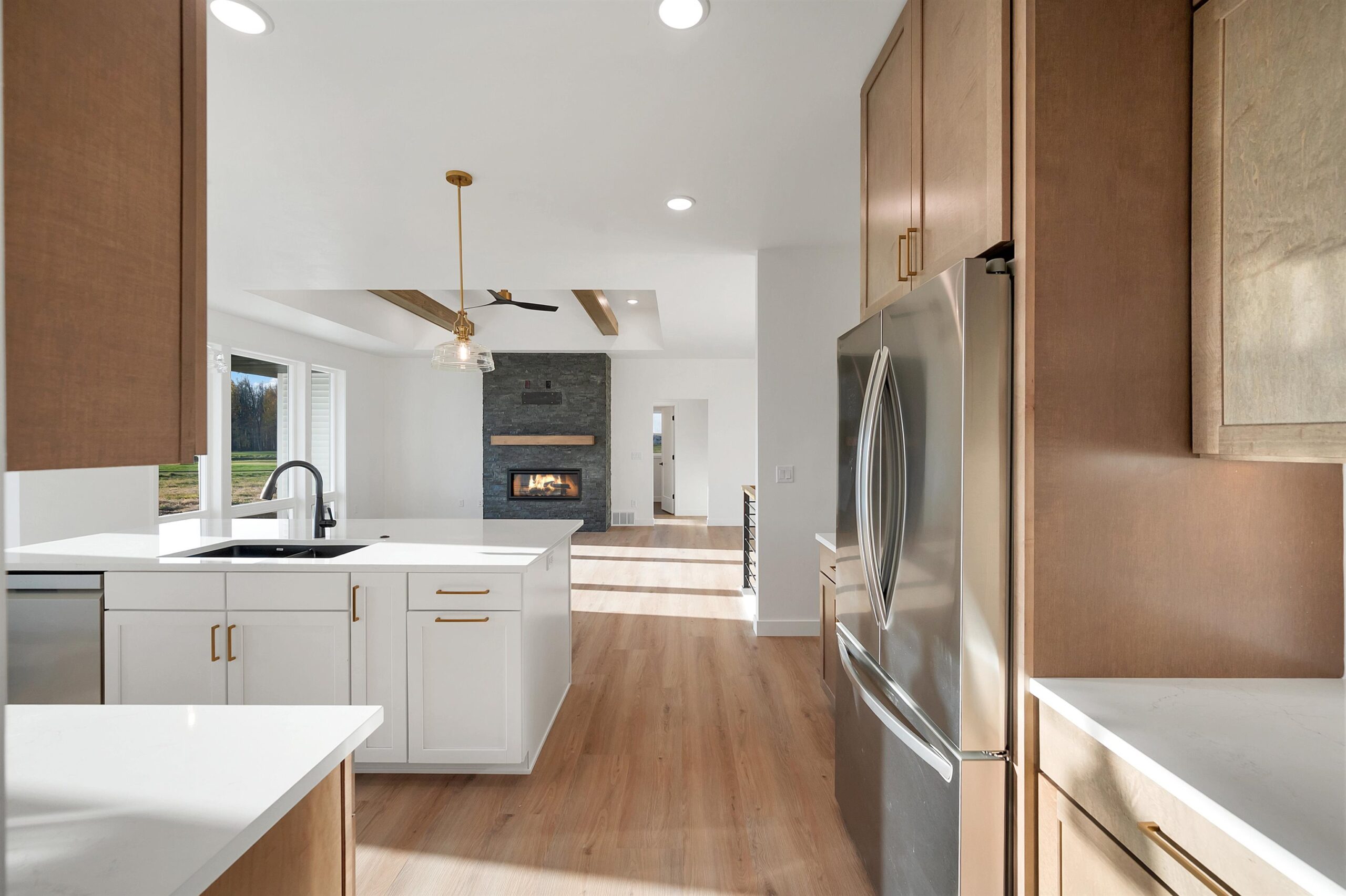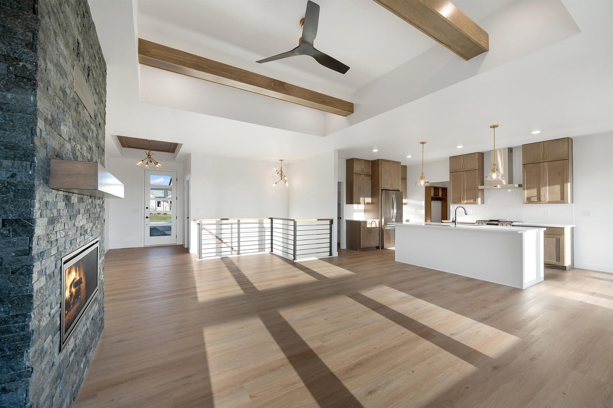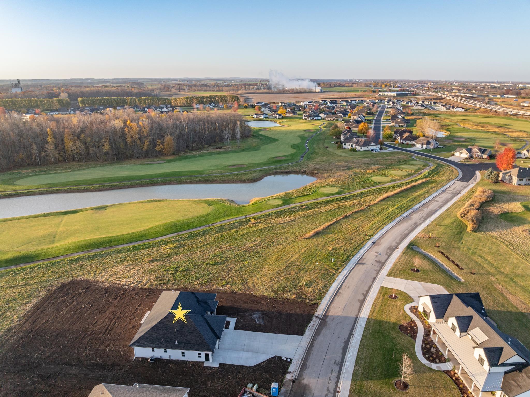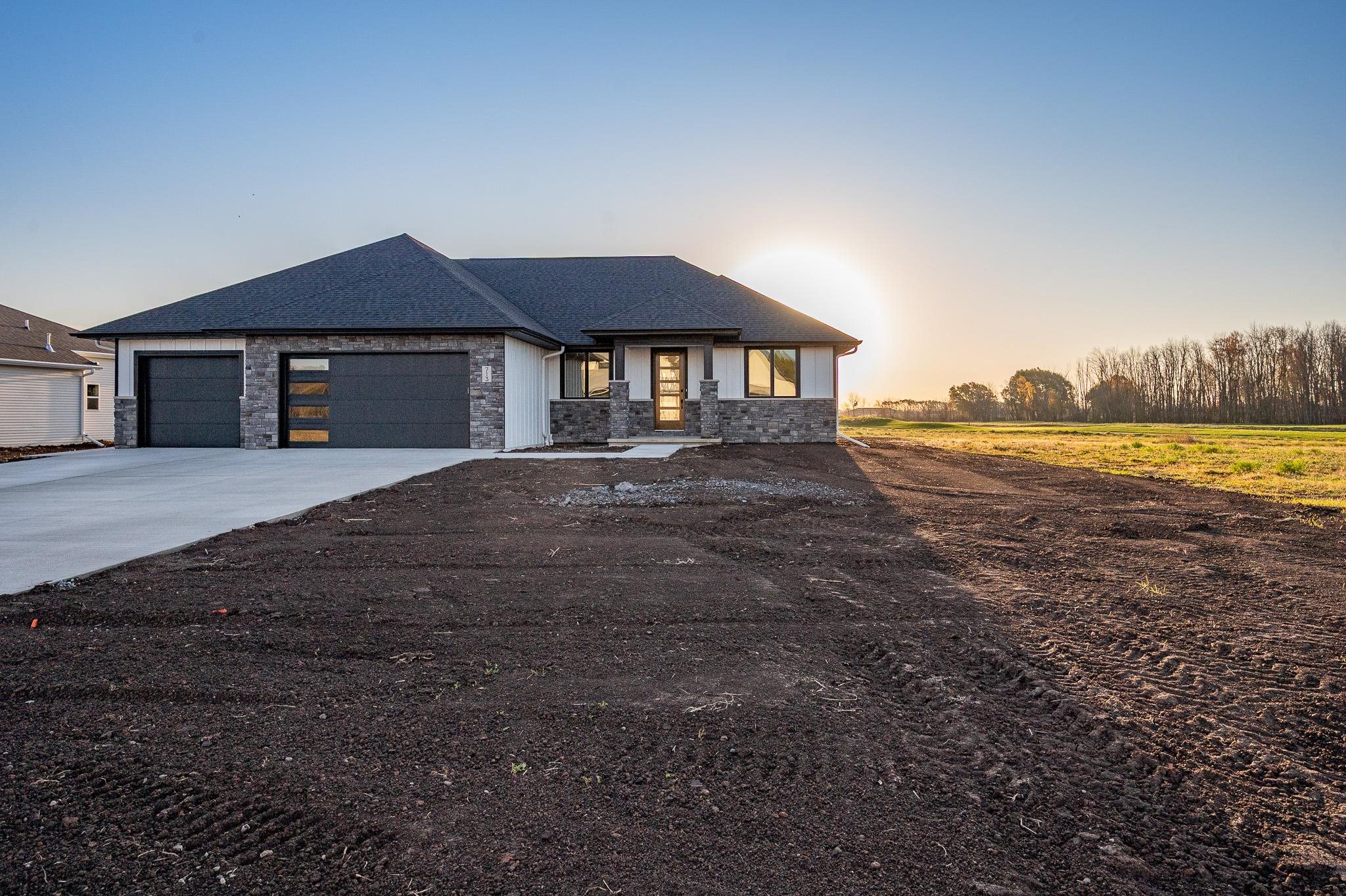 Beautiful, new home located in the convenient location of Wrightstown, on the greens of Royal St. Pats Golf Course. The bright, open floor plan creates a welcoming atmosphere, highlighted by a stunning floor-to-ceiling fireplace that serves as a focal point for gatherings and relaxation. The kitchen, featuring a large 4x8 kitchen island, is perfect for meal prep and casual dining. It includes ample pantry space for all your storage needs and showcases luxurious quartz countertops that combine style and functionality. Enjoy the privacy and comfort of a master suite that boasts a spacious walk-in closet and a bathroom designed for ultimate relaxation, featuring a tiled shower with dual shower heads.