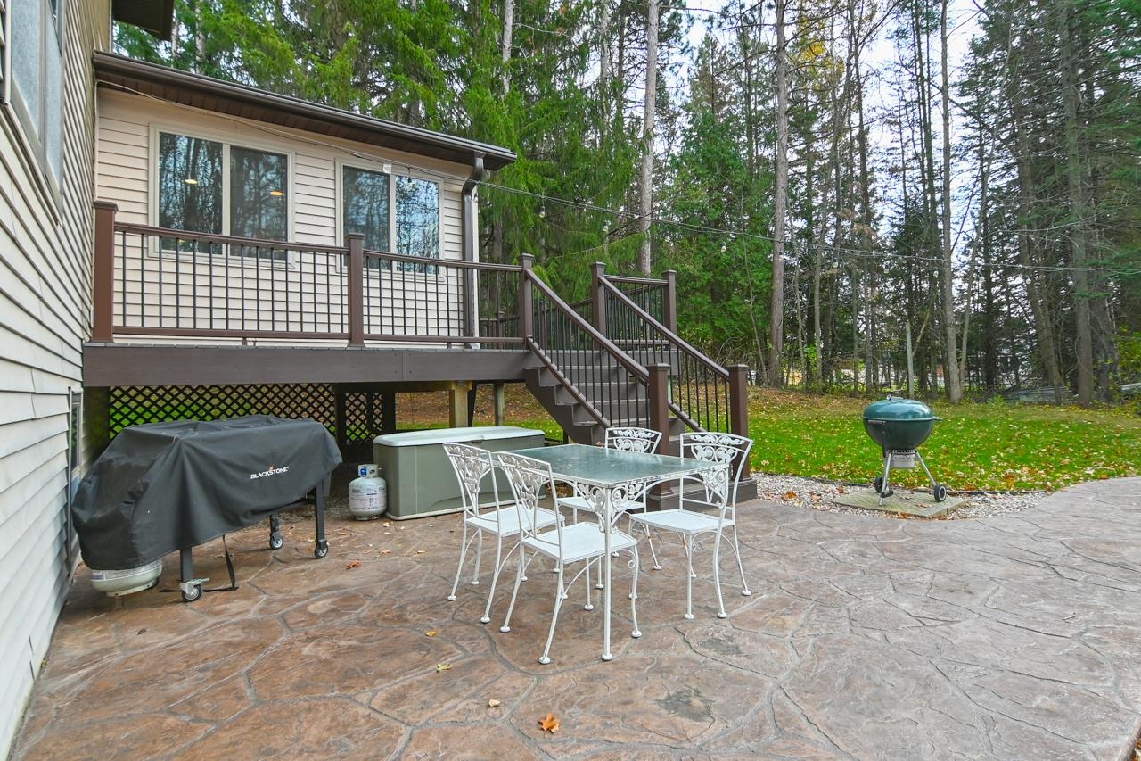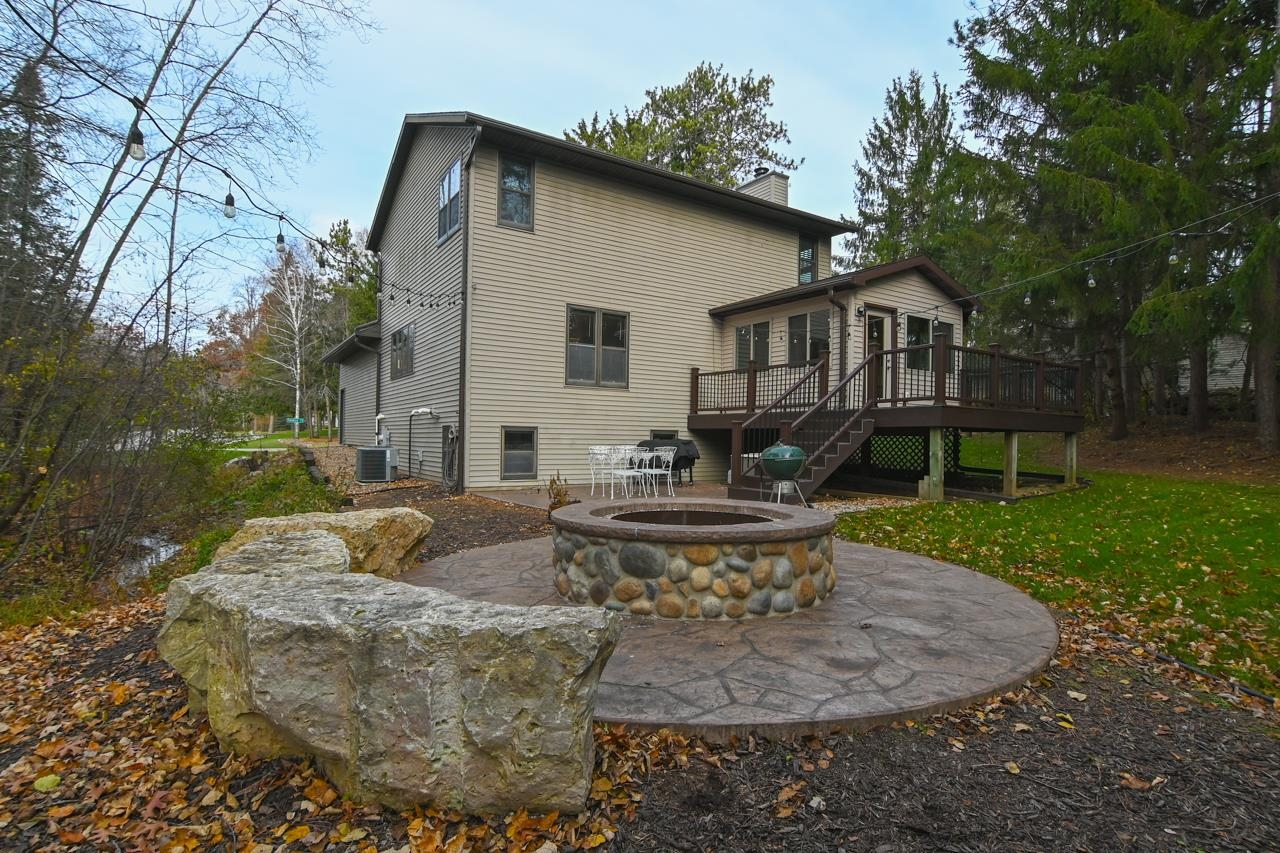 Fantastic location for this 3 bedroom, 2.5-bath house in Suamico! Located on a cul-de-sac, this home offers privacy with its trees and then offers convenient access to Vickery Village and the HWY. You will find beautiful hardwood floors throughout the main level. There is a wonderful sun room off the living room. The kitchen comes with all the appliances and has a separate dining area. All 3 bedrooms are upstairs, including the primary suite with en-suite and spacious closet. The lower level with egress windows offers additional finished space with a family/rec room. Outside you'll find a stamped concrete patio with built-in fire pit and a storage shed. Great home in the Howard-Suamico school district!