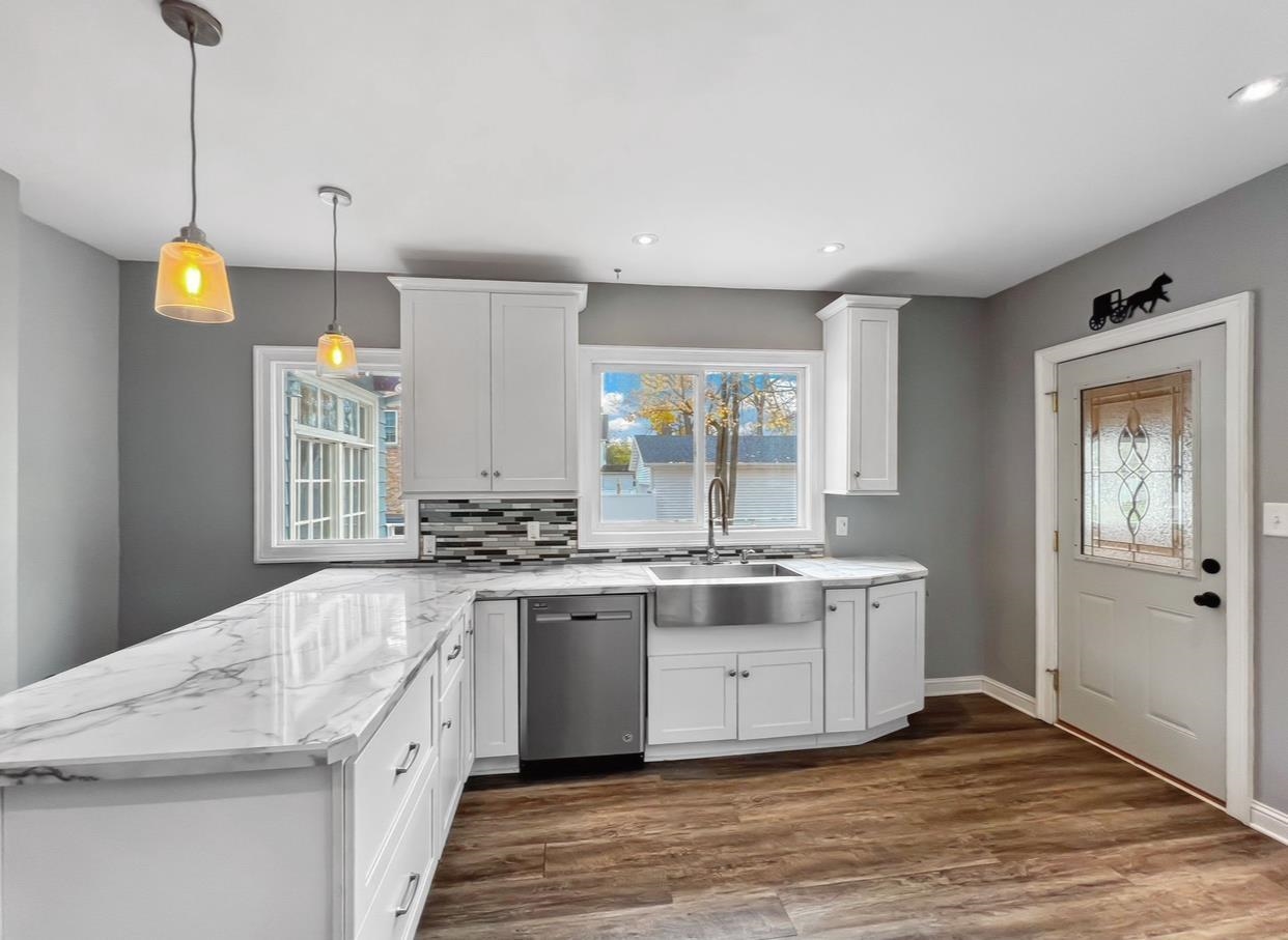 3+Bedroom, 2.5 Bathroom Victorian home nestled on .63 of an acre easily mistaken for a park. The original carriage house is now a 3 car garage with the upstairs space just waiting to be transformed! SO many new things in this old home: Roof 2023(warranty until 2028), Furnace 2021, Water Heater 2021, Vinyl easy-clean windows, modern kitchen and baths too! The modern kitchen has white cabinets with soft-close drawers, stainless steel apron sink & appliances, LVP flooring, & a peninsula w/stool seating. The original butler pantry flows effortlessly from the kitchen into the formal dining; centered at the hub of the house with a beautiful coffered ceiling & wood burning fireplace. Beautiful Sunroom that leads out to the deck! VA and FHA buyers can assume the sellers $243,000 loan at 3%!!!!