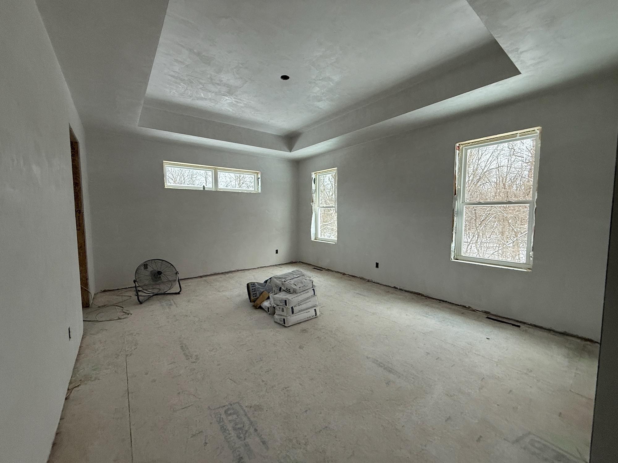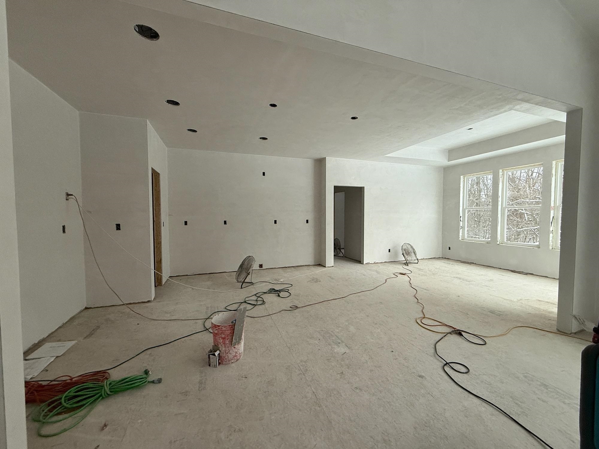 Kitchen appliances, concrete driveway to future sidewalk