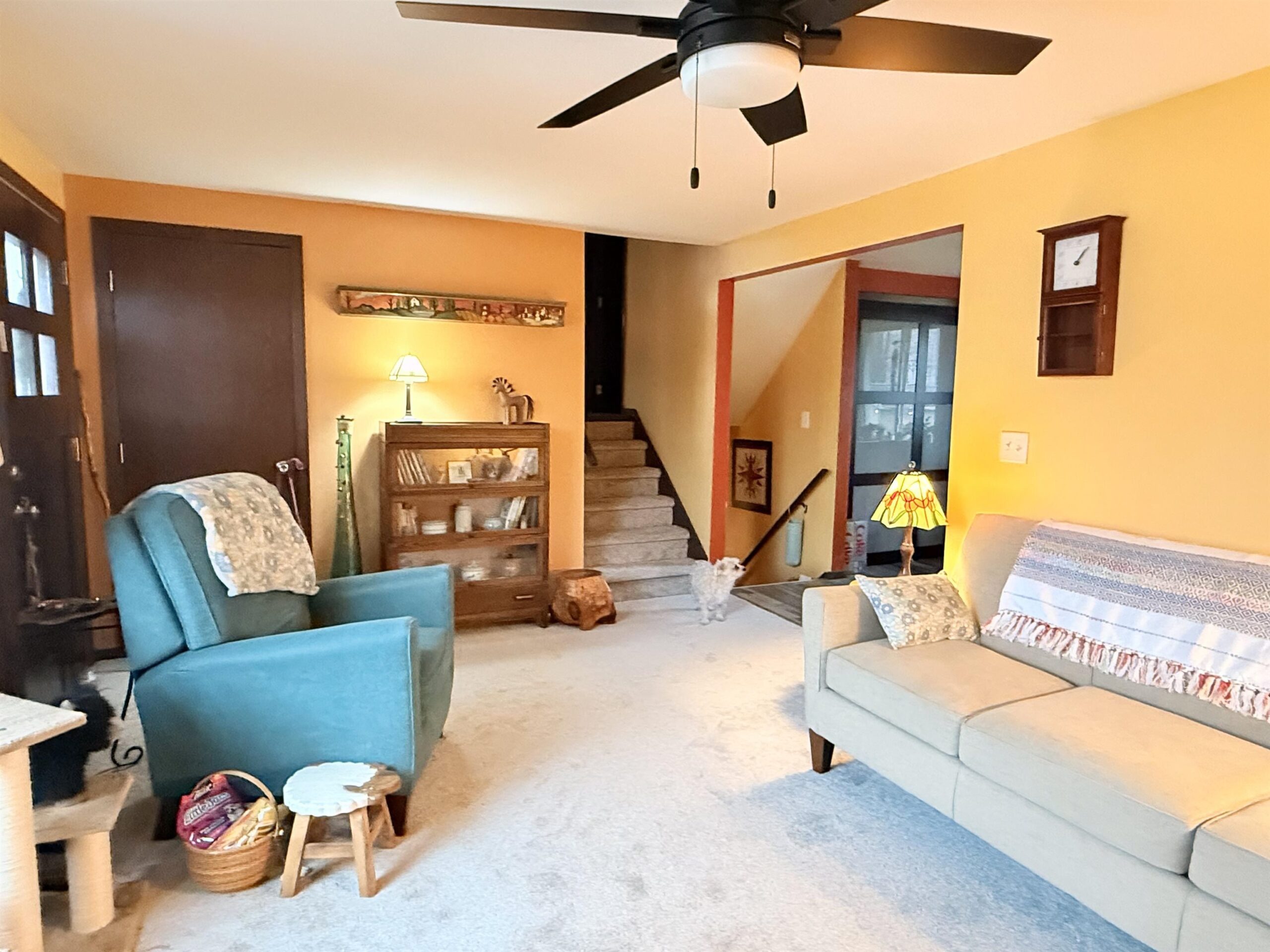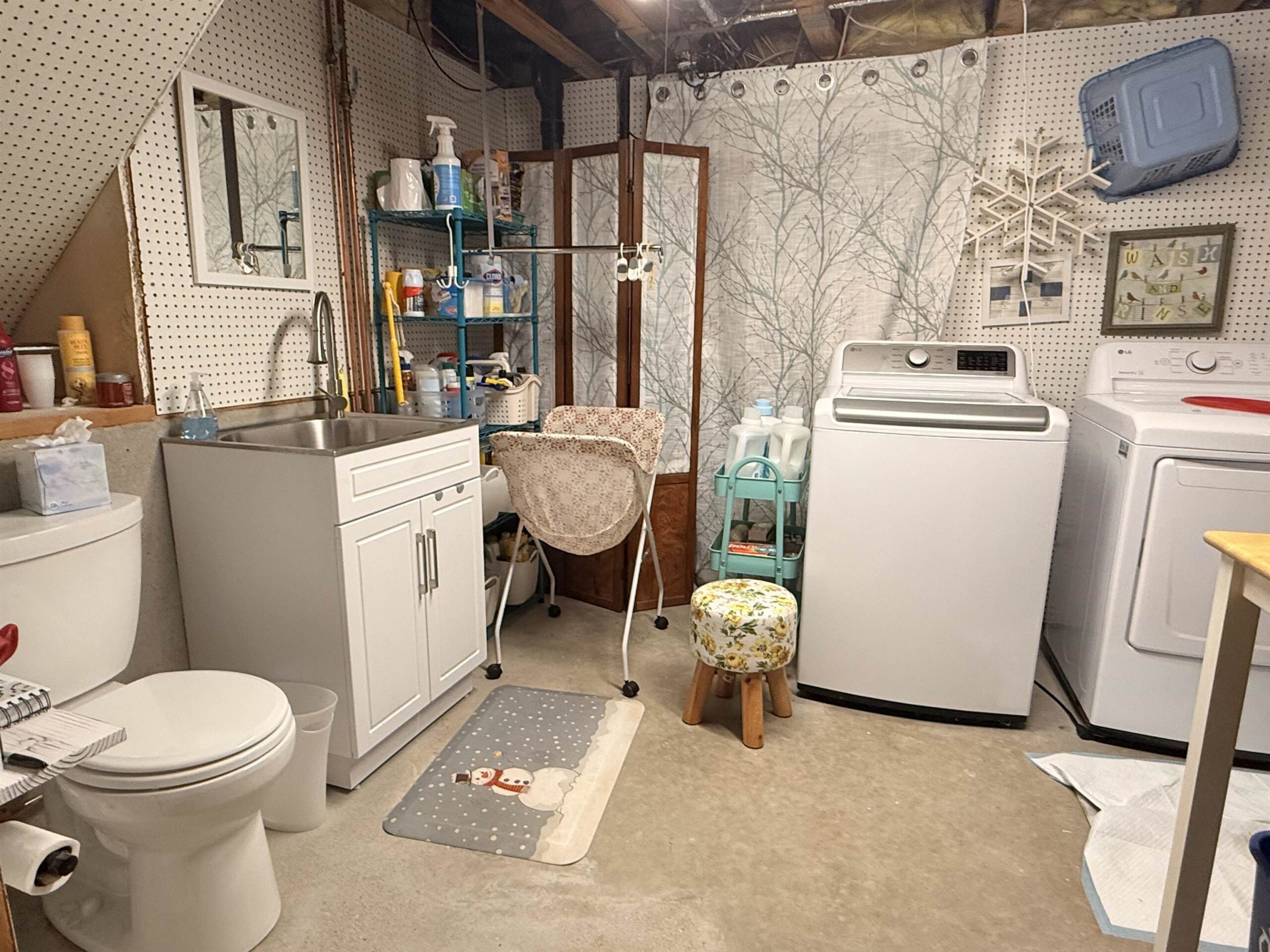 deck umbrella, trifold screen & curtain in LL behind w/d, LL shelving units, LL fridge, bird feeders/hooks/hangars, seller's personal property
