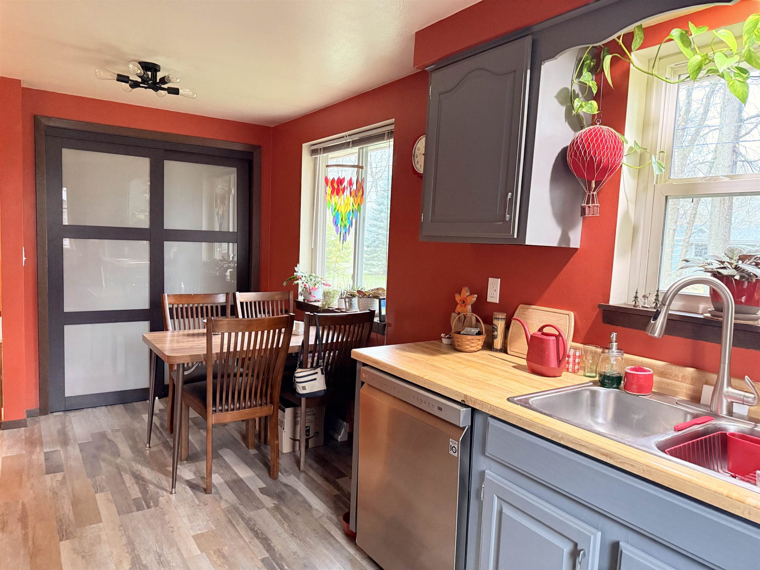 Welcome home! Enter into the cozy living room that leads into eat-in kitchen with large pantry and new LG appliance package (side-by-side fridge, smart stove w/microwave above, and DW). Up a short staircase are 2 bedrooms and an up-graded full bathroom. Down from the kitchen is a spacious room with 5 windows--an excellent TV room, office, or additional bedroom. A few more steps down is a laundry room w/LG washer & dryer, an additional toilet and sink, and room for storage. Large deck abuts house and garage, excellent space for grilling and/or entertaining. A 30-Amp outlet for camper or other large machinery hook up is also on that side of the house. Yard has newly planted trees, wildflowers. Close to schools, shopping, and downtown.