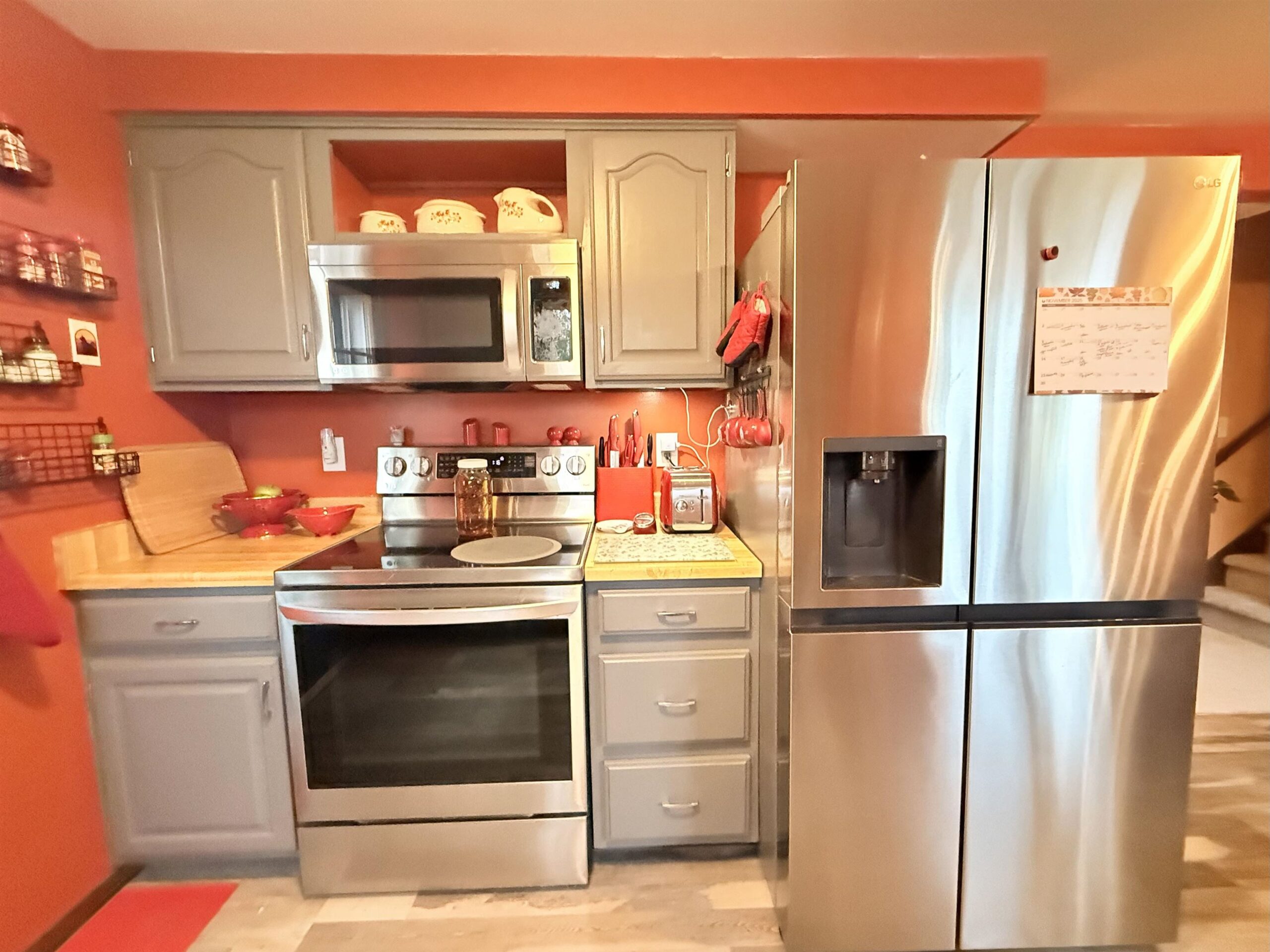 Refrigerator, stove, microwave, DW, washer, dryer, deck grilling gazebo frame, flex fencing in backyard, lights in trees, LL workbench, LL fridge