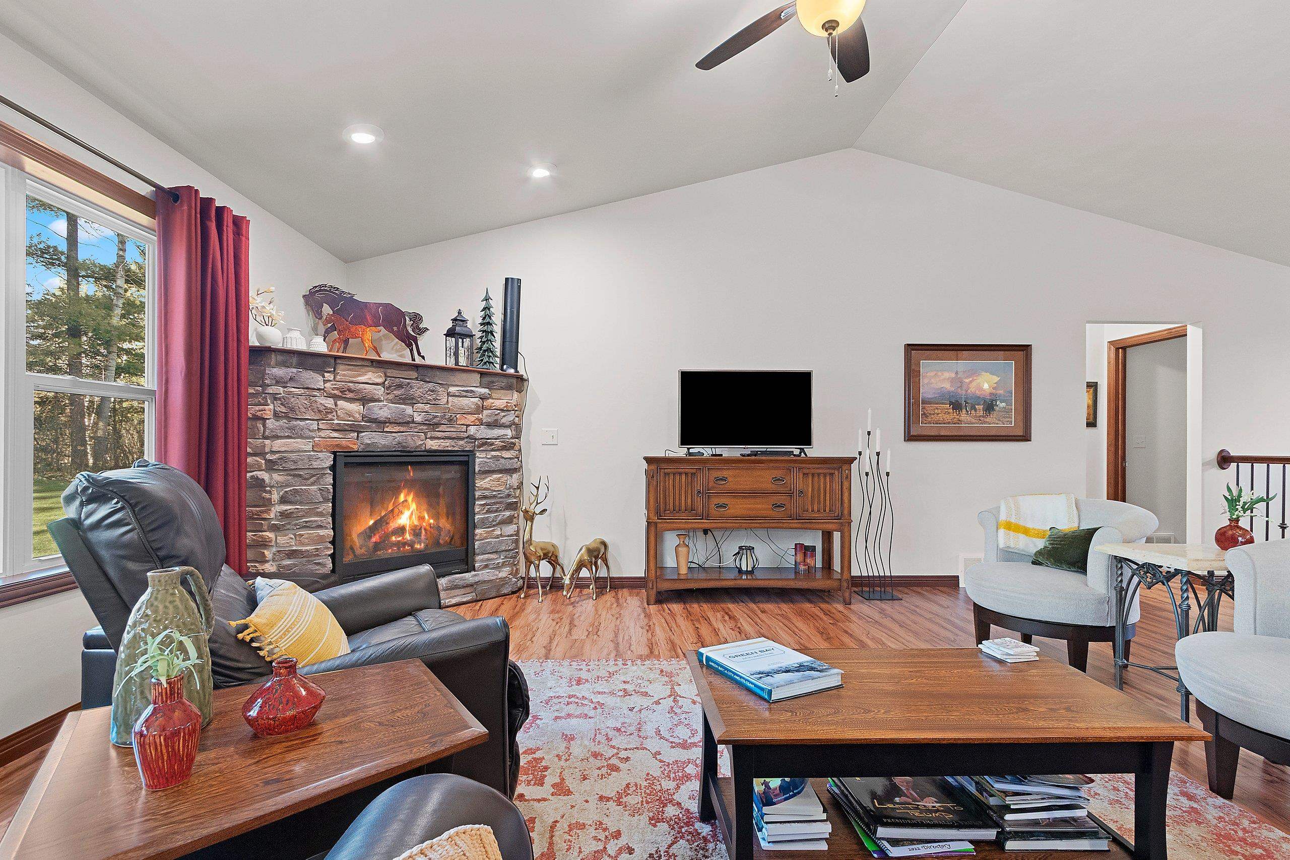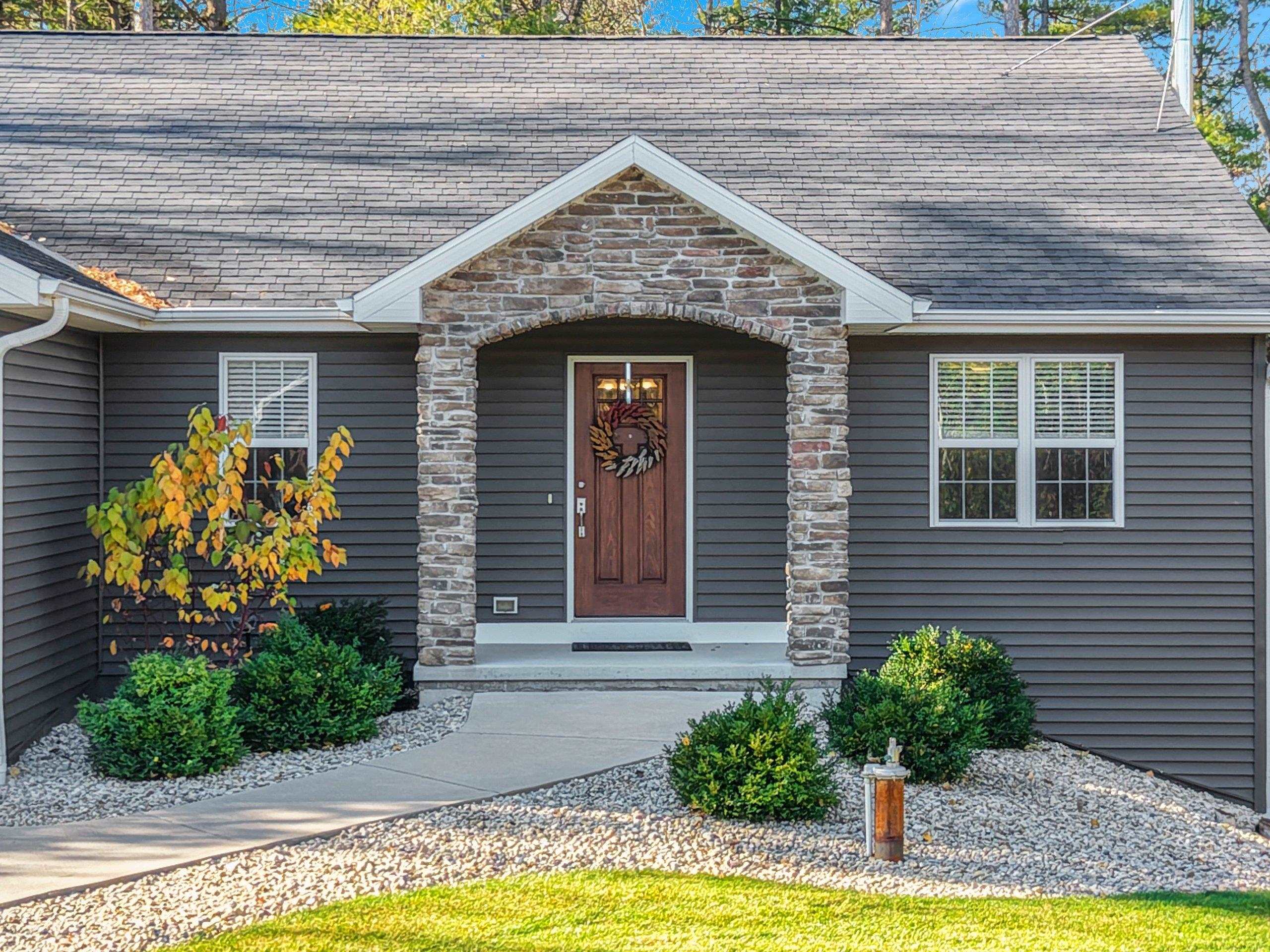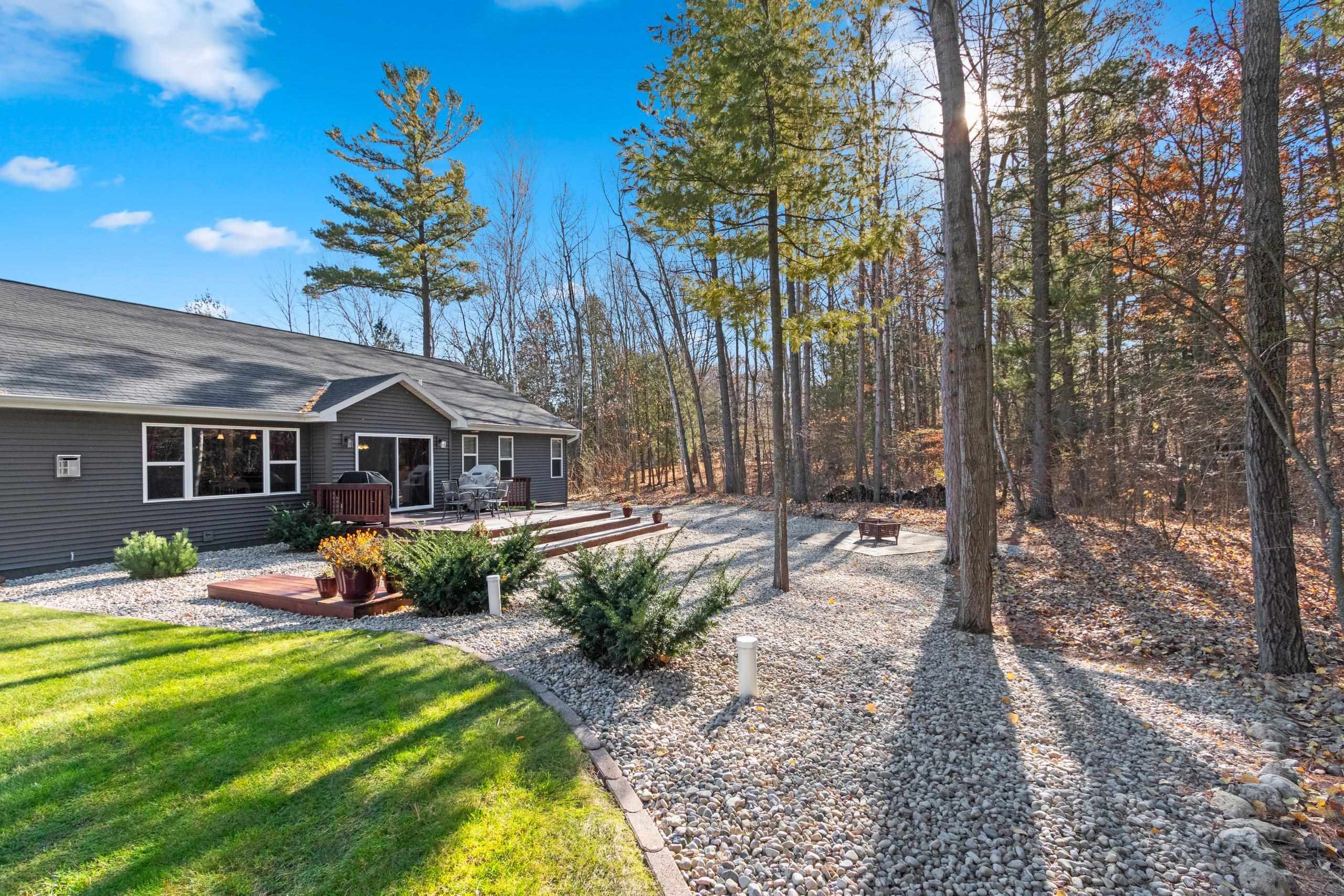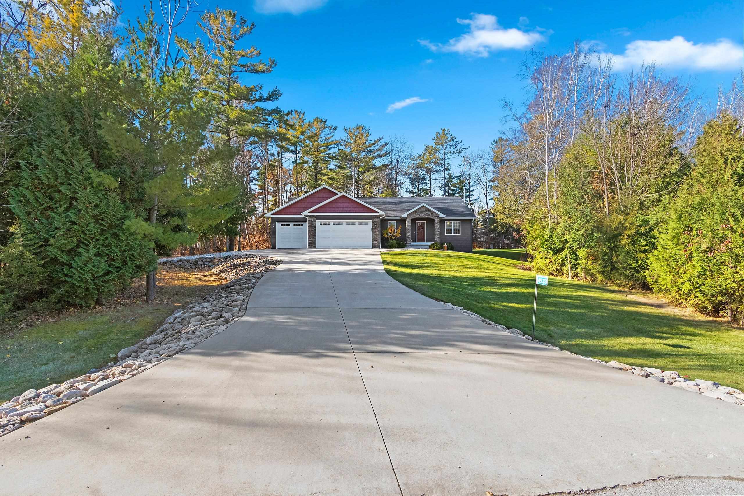 Secluded, wooded Oasis! Split-bdrm ranch offering the tranquility of a wooded estate. Custom construction started '18, completed '19. It offers a blend of modern design, privacy & natural beauty. Stone & vinyl ext. w/cedar look accent, stone columns & arch. Spacious foyer/open staircase w/wood handrails & metal spindles. Open concept w/cathedral ceilings, stone gas log FP, 9 ft. windows, dinette w/9 ft. patio door to deck. Abundance of knotty alder cabinets, kitchen appl inc, quartz counter tops, sub-way tile, island w/snack counter. 1st fl laun. Cabinet space. Primary suite-tray ceiling, primary bath, 2 sinks, cabinet, shower, walk-in closet. 2 bdrms, full bath. LL w/windows & rough-in for bath. 3+gar, deck, wooded backyard! Seller requires 48 hours to respond to an offer.