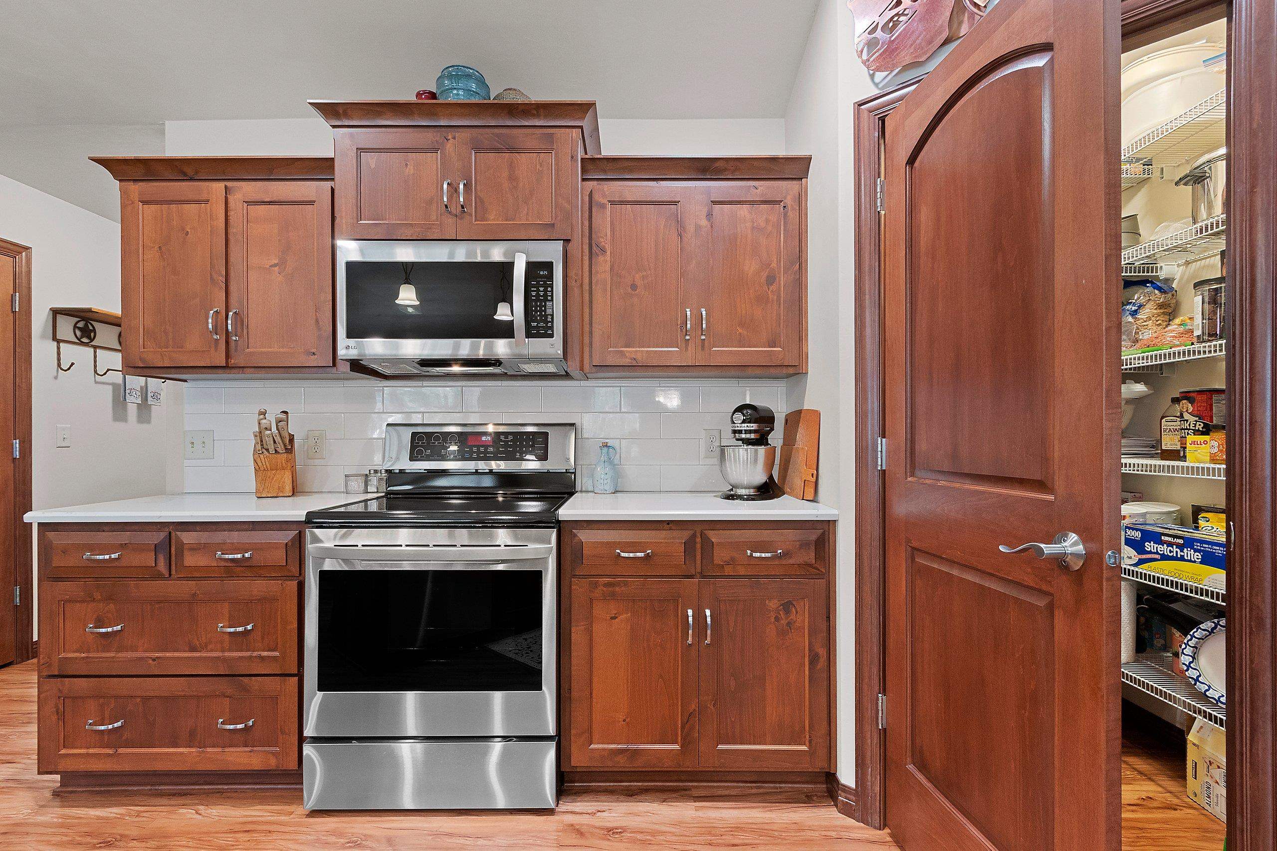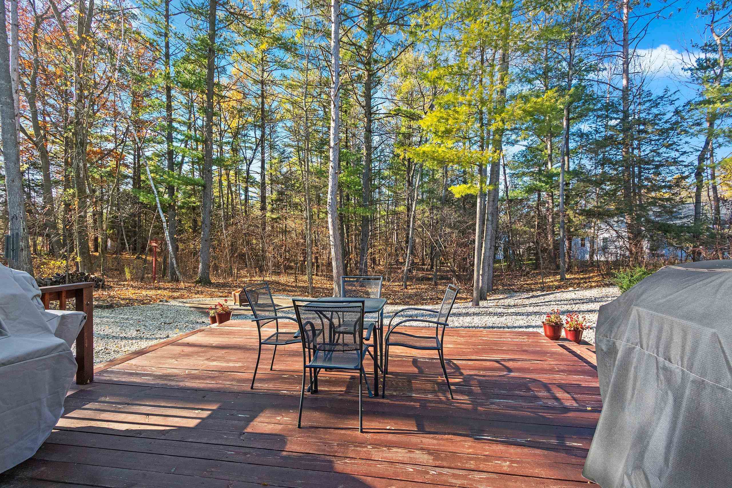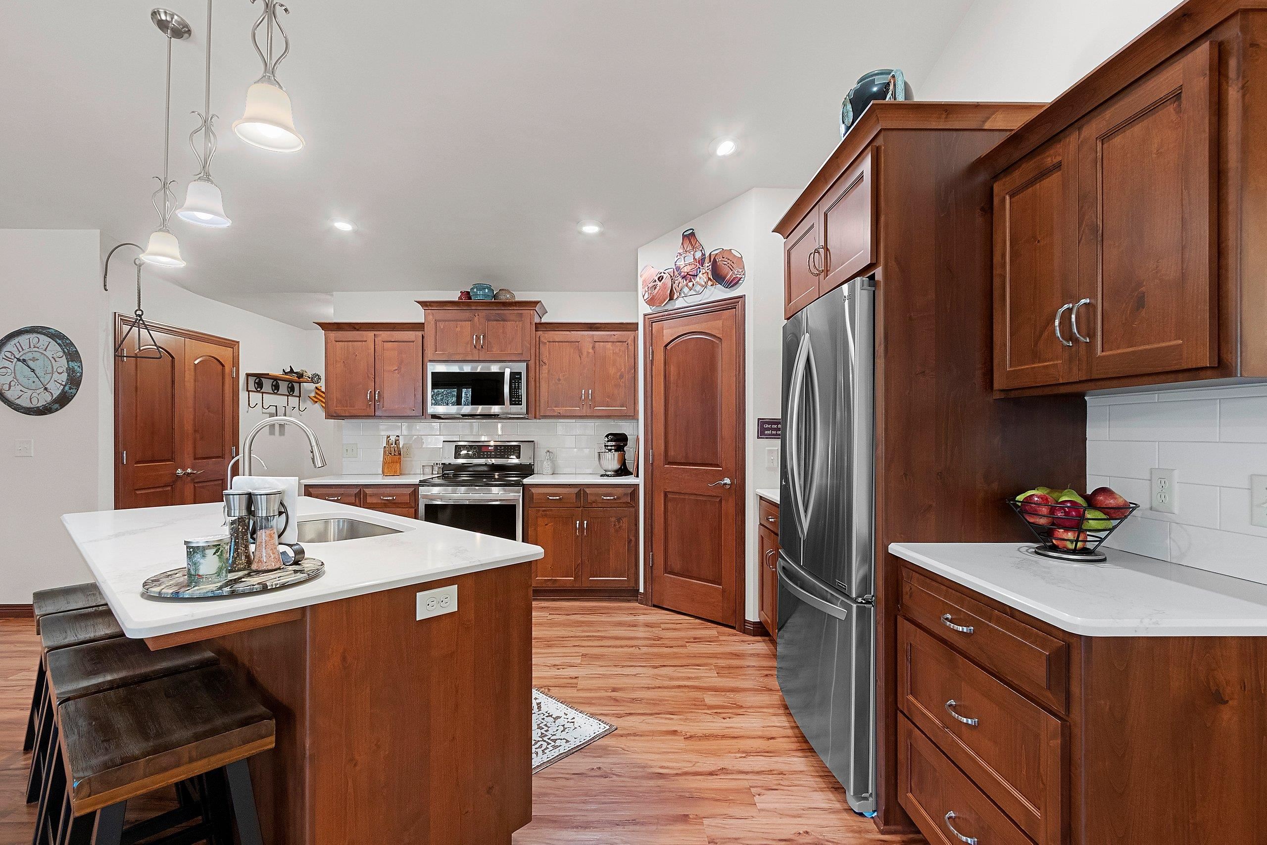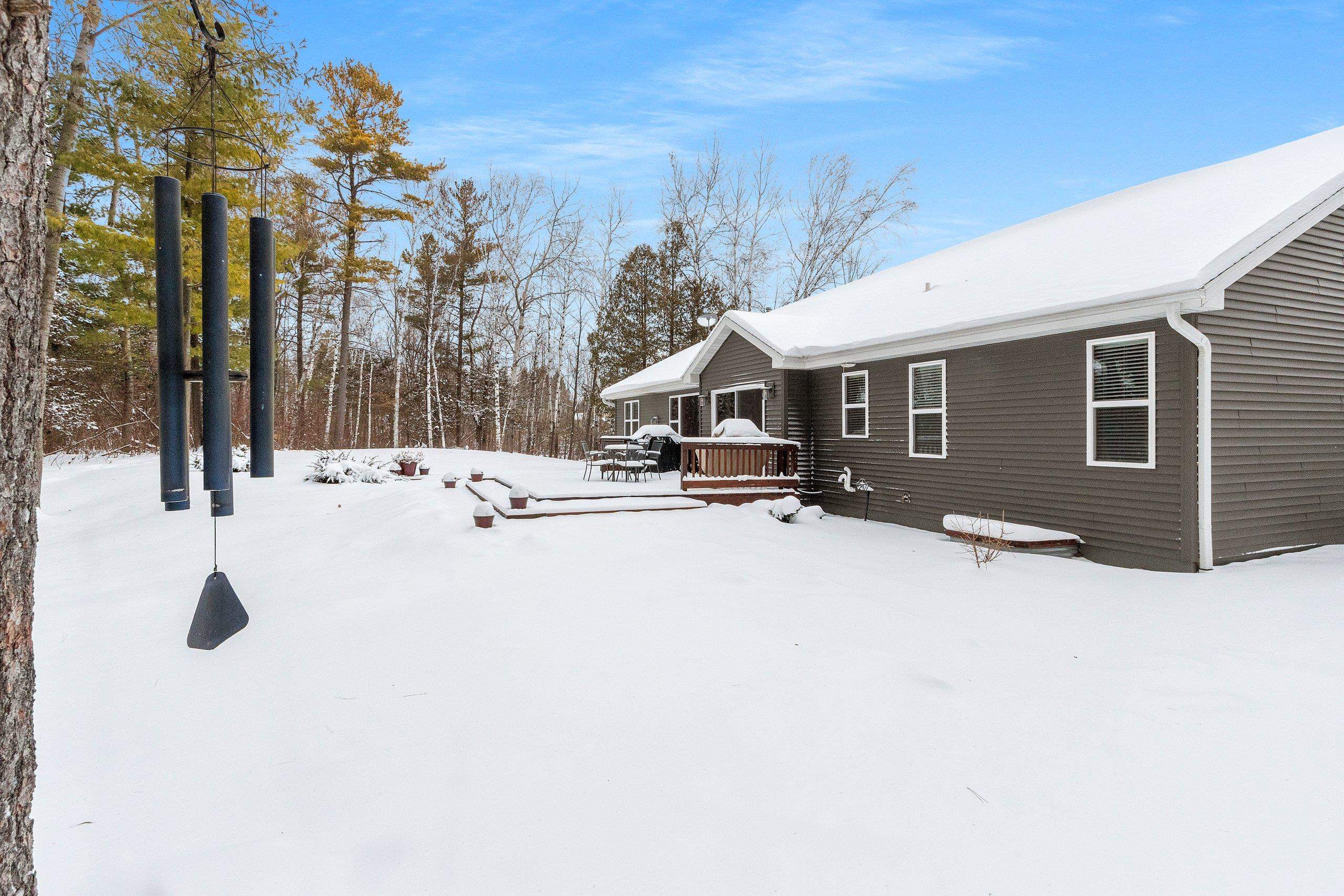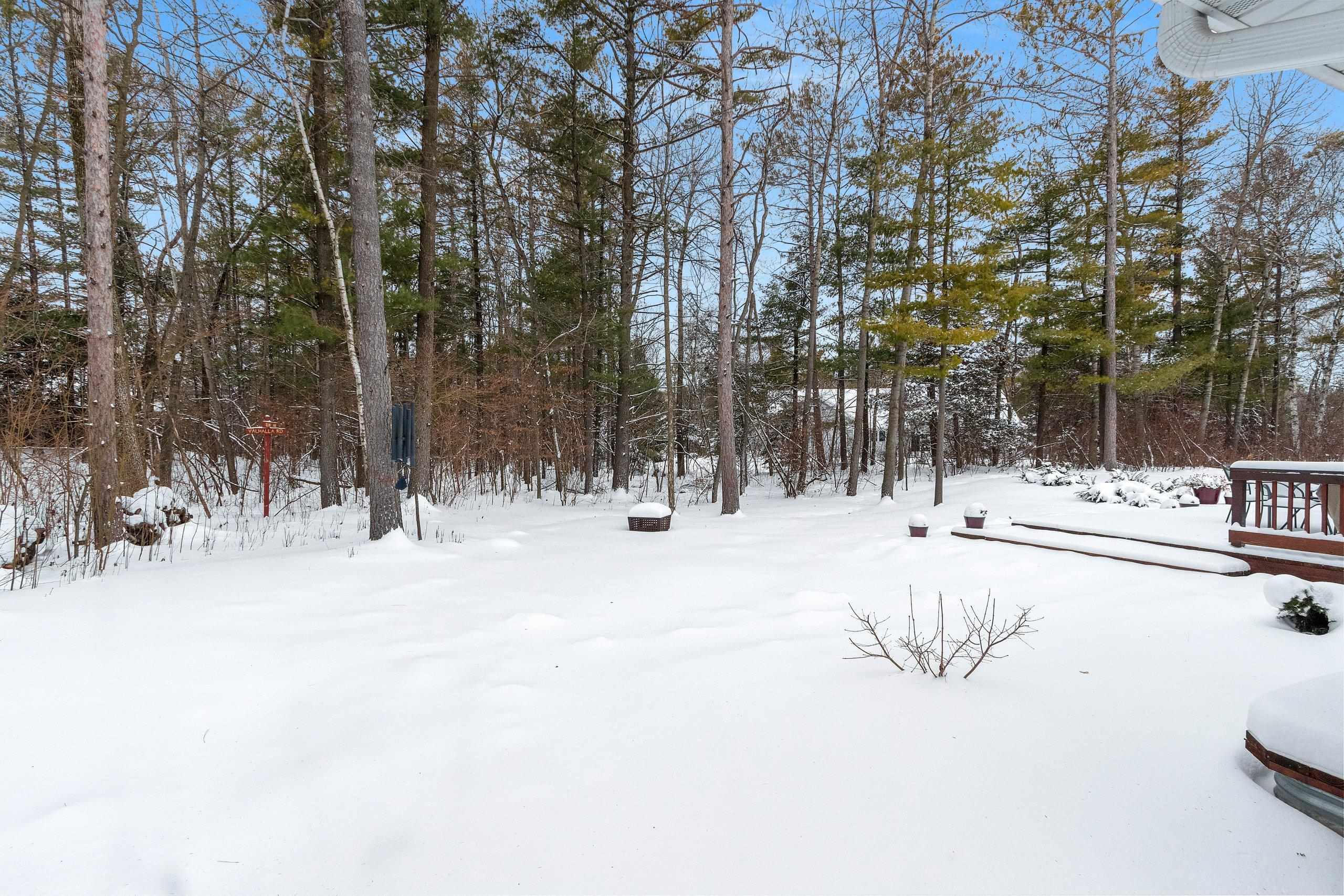 Secluded, wooded Oasis! Split-bdrm ranch offering the tranquility of a wooded estate. Custom construction started '18, completed '19. It offers a blend of modern design, privacy & natural beauty. Stone & vinyl ext. w/cedar look accent, stone columns & arch. Spacious foyer/open staircase w/wood handrails & metal spindles. Open concept w/cathedral ceilings, stone gas log FP, 9 ft. windows, dinette w/9 ft. patio door to deck. Abundance of knotty alder cabinets, kitchen appl inc, quartz counter tops, sub-way tile, island w/snack counter. 1st fl laun. Cabinet space. Primary suite-tray ceiling, primary bath, 2 sinks, cabinet, shower, walk-in closet. 2 bdrms, full bath. LL w/windows & rough-in for bath. 3+gar, deck, wooded backyard! Seller requires 48 hours to respond to an offer.