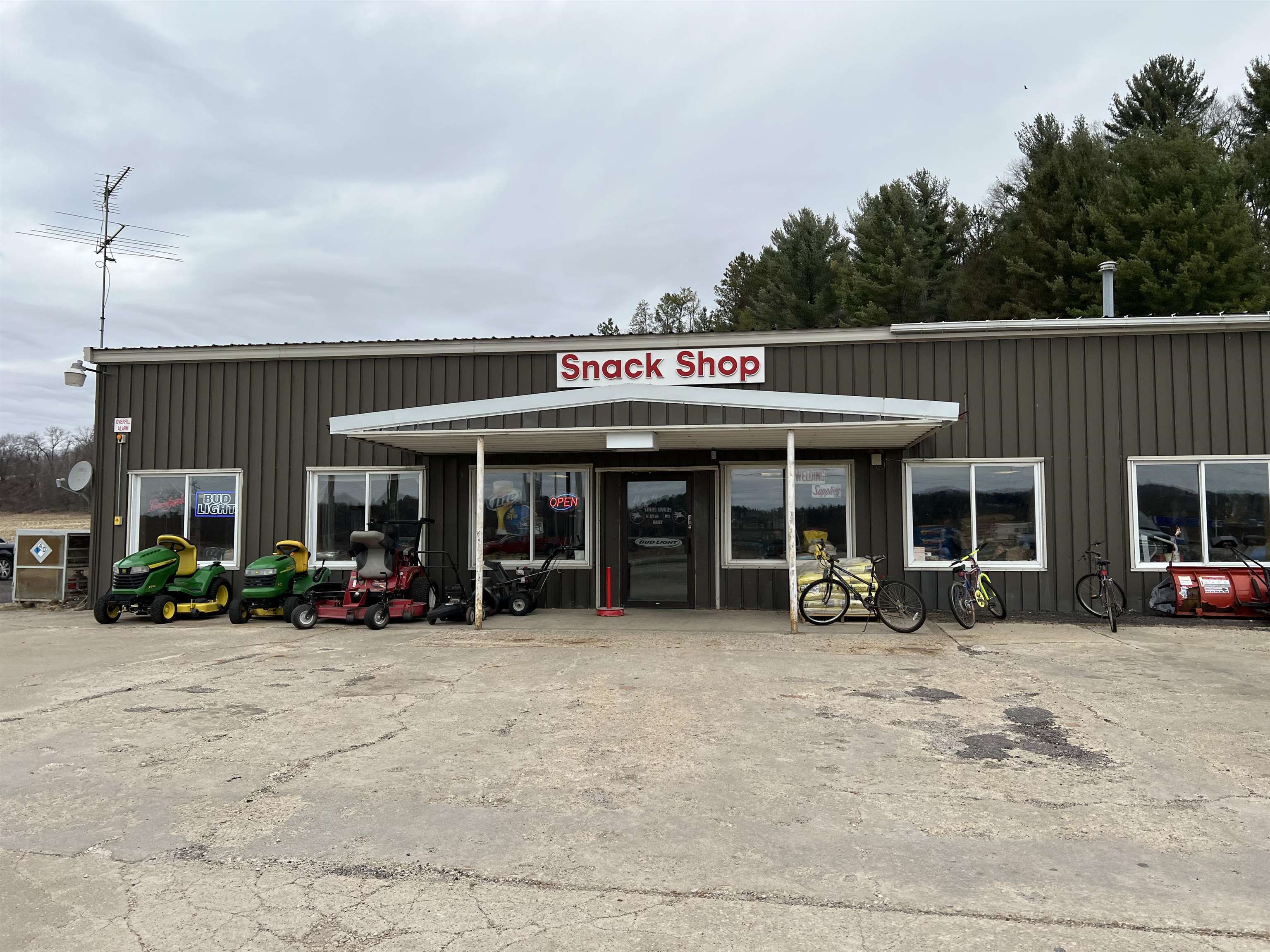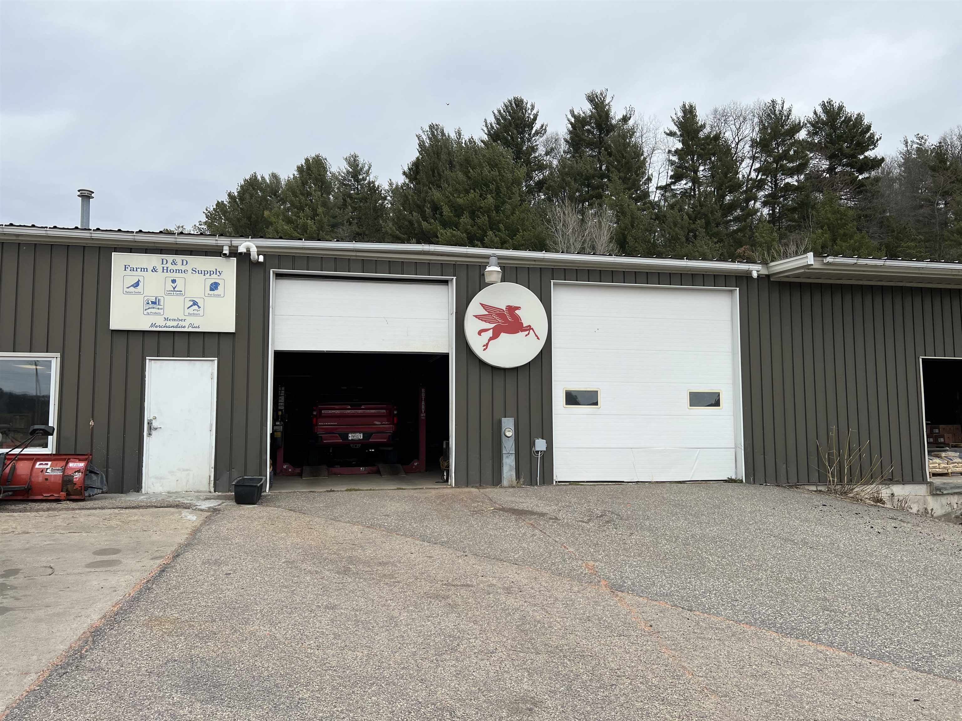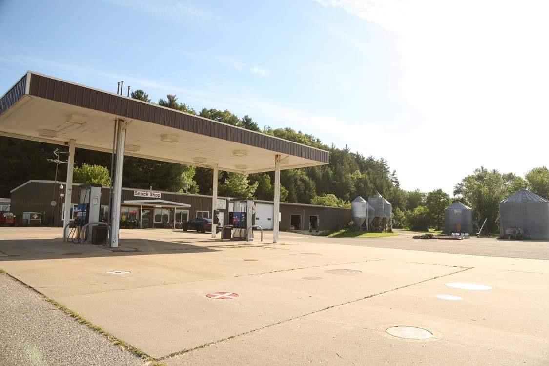 An exciting venture awaits for you to own this gas station/convenience & farm supply store w/ a mobile home on site. Over 13,000 sq ft building with many services offered, of that is over 5,000 sq ft of store space with coolers/freezers. Gas tanks consist of one double insulated fiberglass 12,000 gal. tank and 2 - 8,000 gal. tanks. Point of sale system has been updated recently. Heated warehouse/storage has a vehicle lift, 2 loading docks with 12 ft doors & more. If that wasn't enough, a machine shed (approx. 30x60) is included on the property with a single mobile home that is on shared well & septic with the store. All of this on nearly 3 acres, subject to final survey. Opportunity knocks, don't let this one go unanswered. Additional 9 acres +/- and residence also available for purchase.