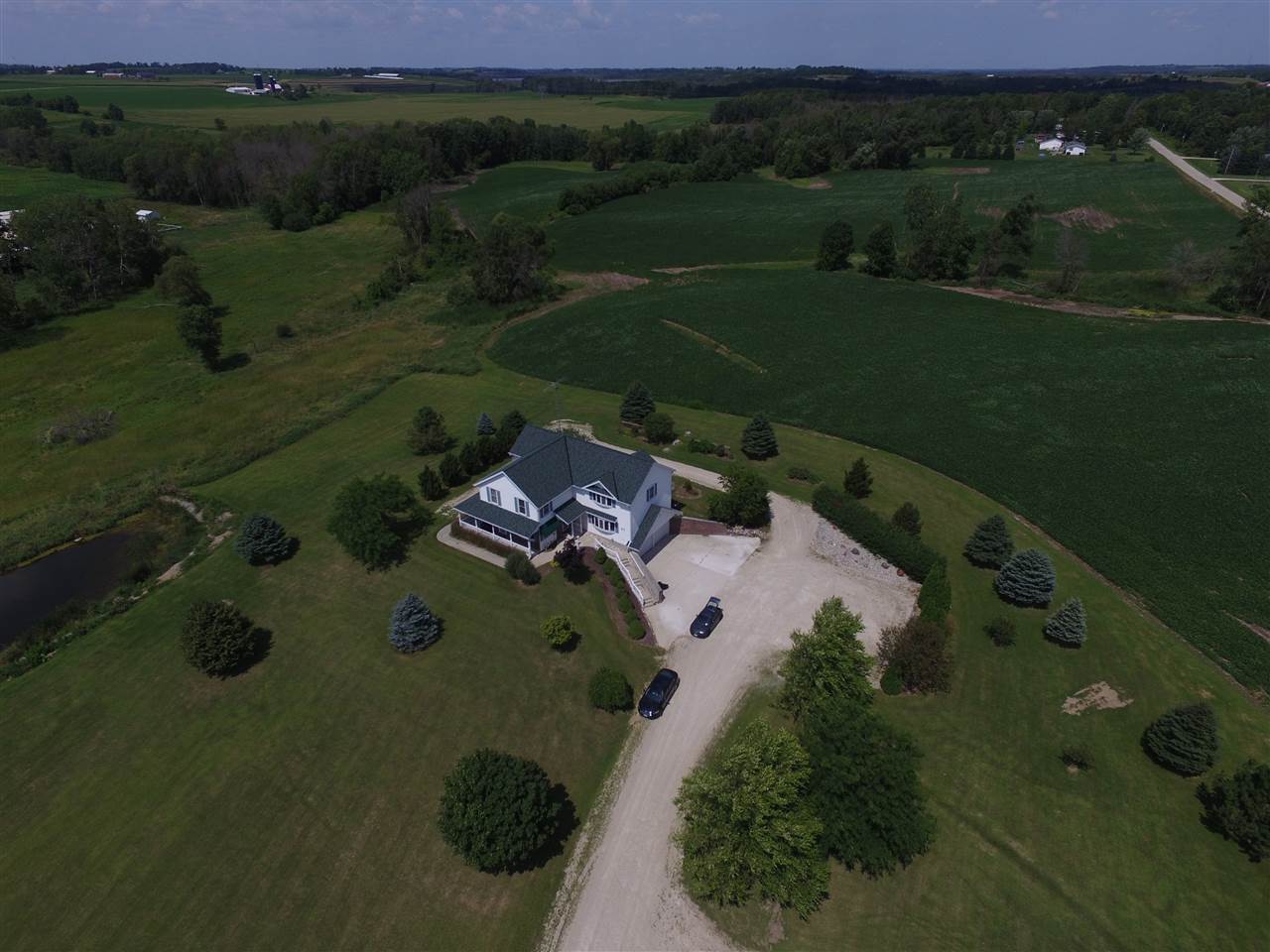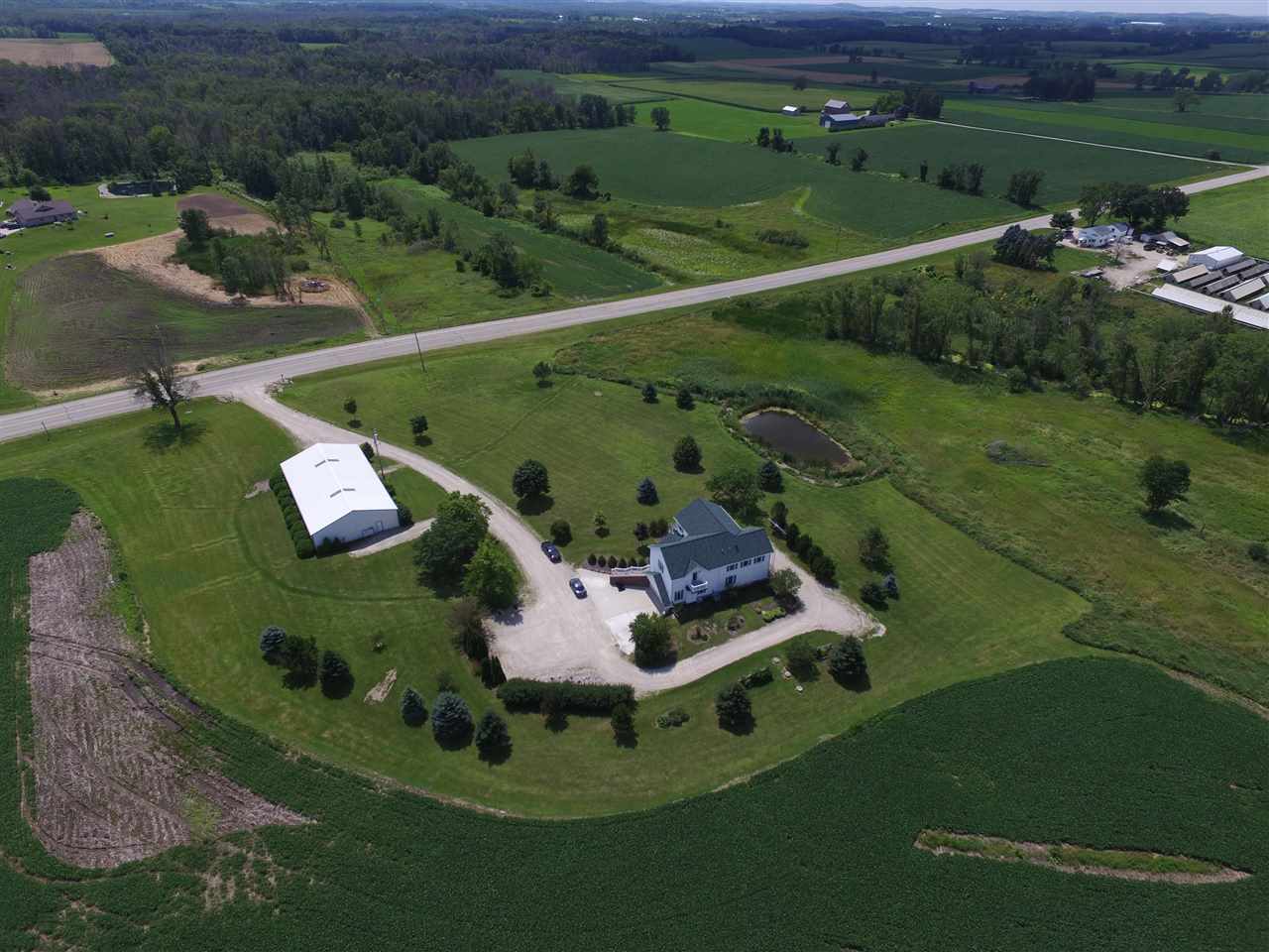 Elegant 3,300 sq.ft. 4 BR 2 1/2 bath 2 story on 6.9 acres of land near the Kettle Moraine Forest. Has great room w/wet bar, master BR w/balcony and Jaccuzi tub, numerous upgrades, plus a 45 x 90 outbuilding. Up to an additional 45 acres available!