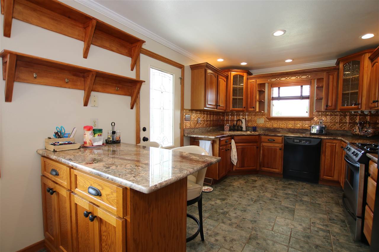 Refrigerator, dishwasher, microwave, range, 3 bar refrigerators, washer and dryer in basement, water softener, window treatments