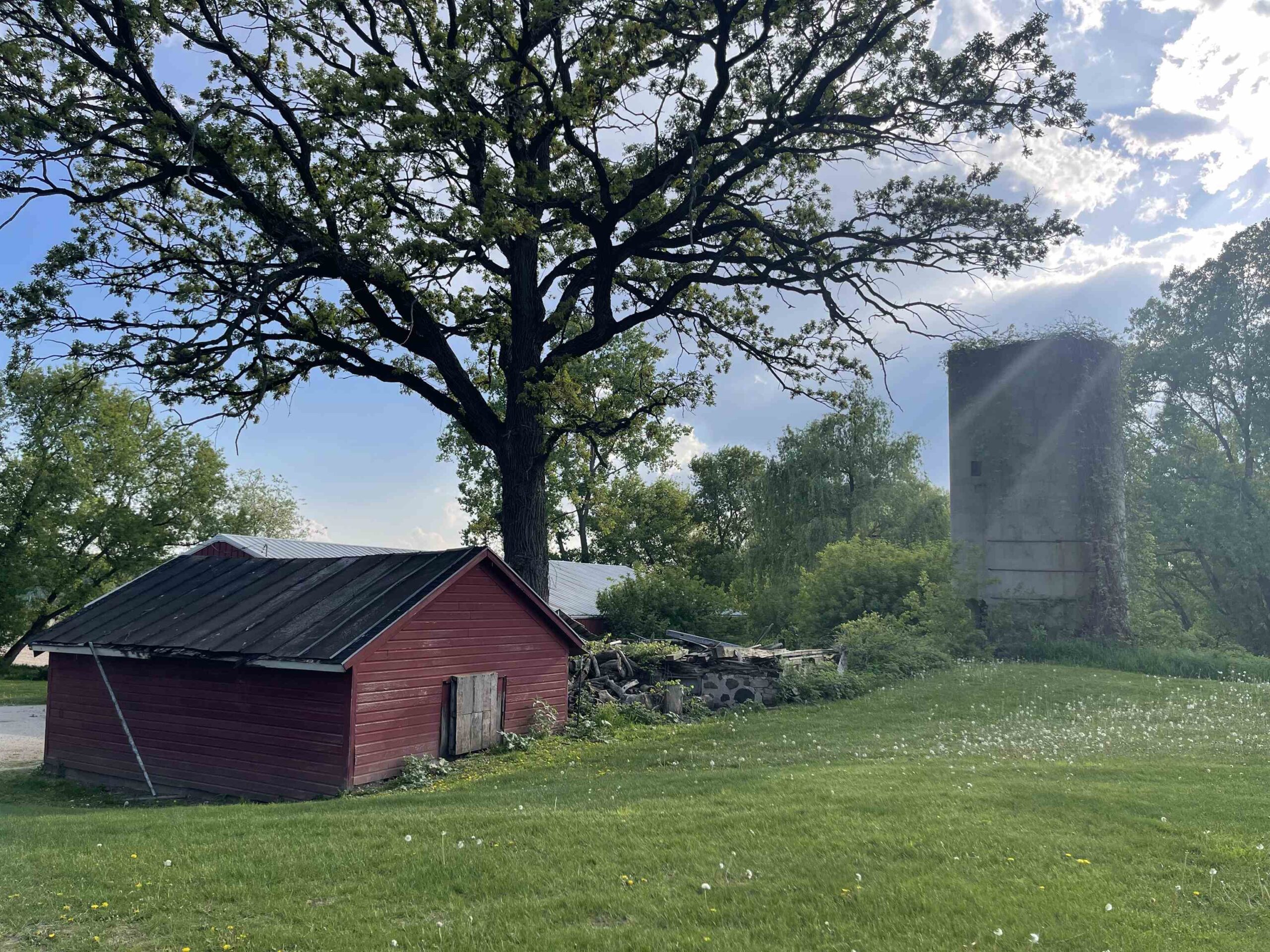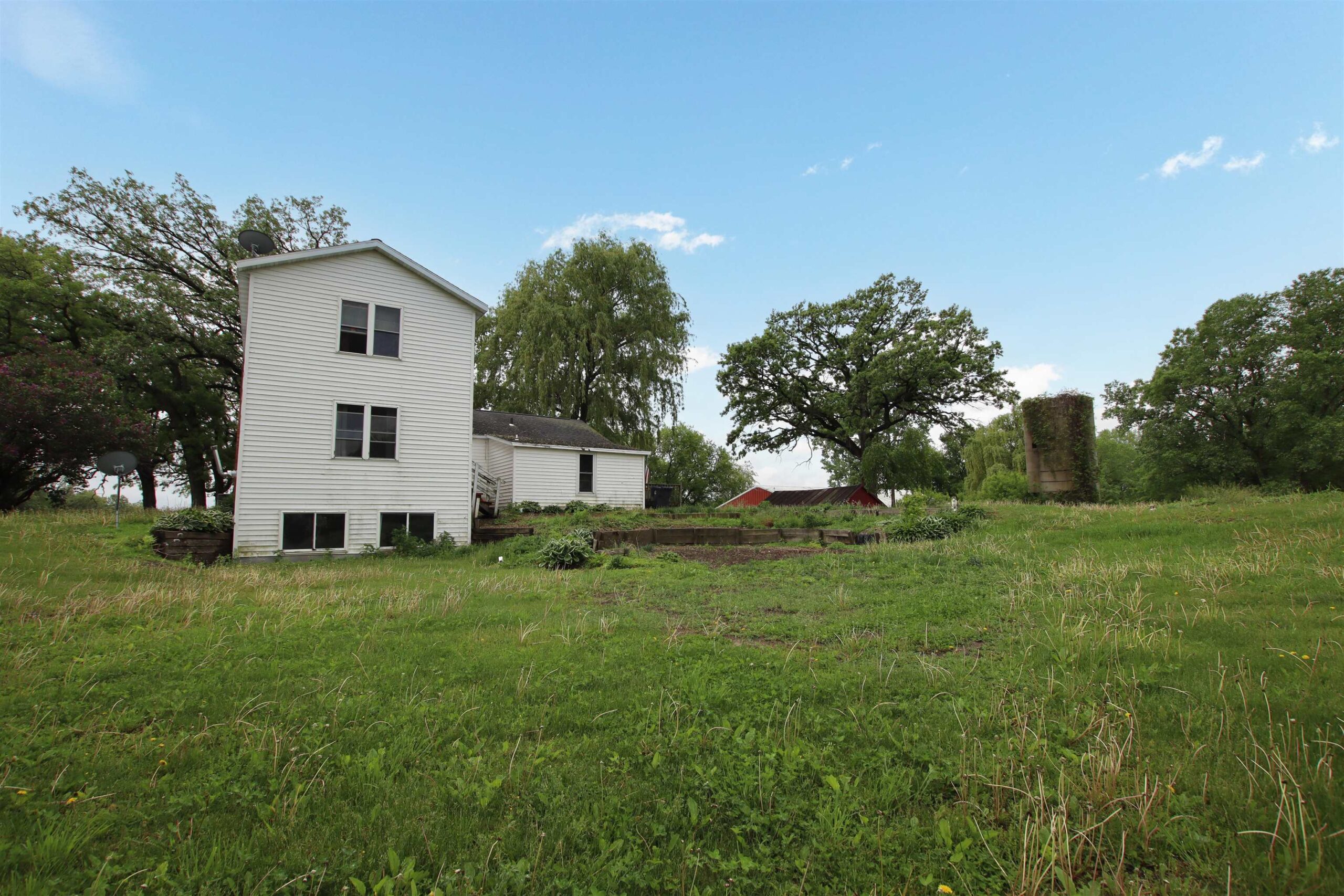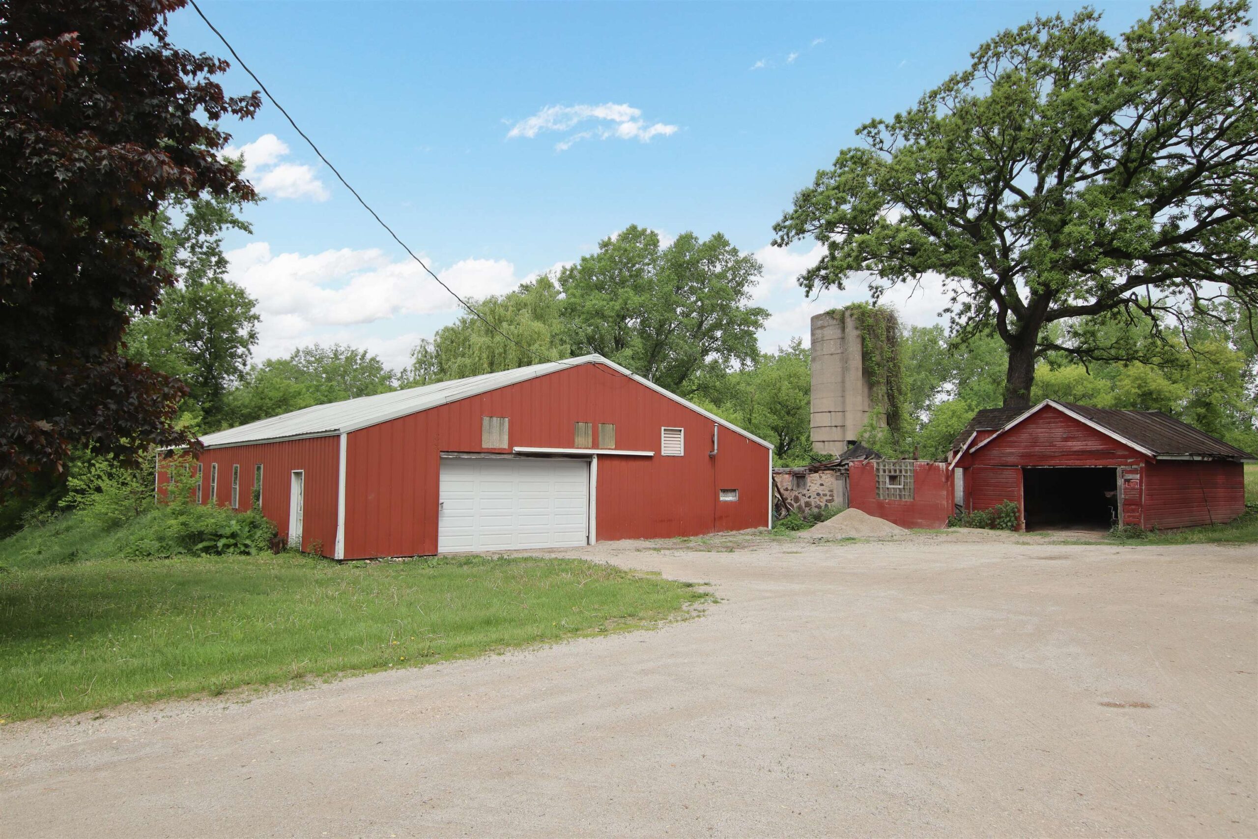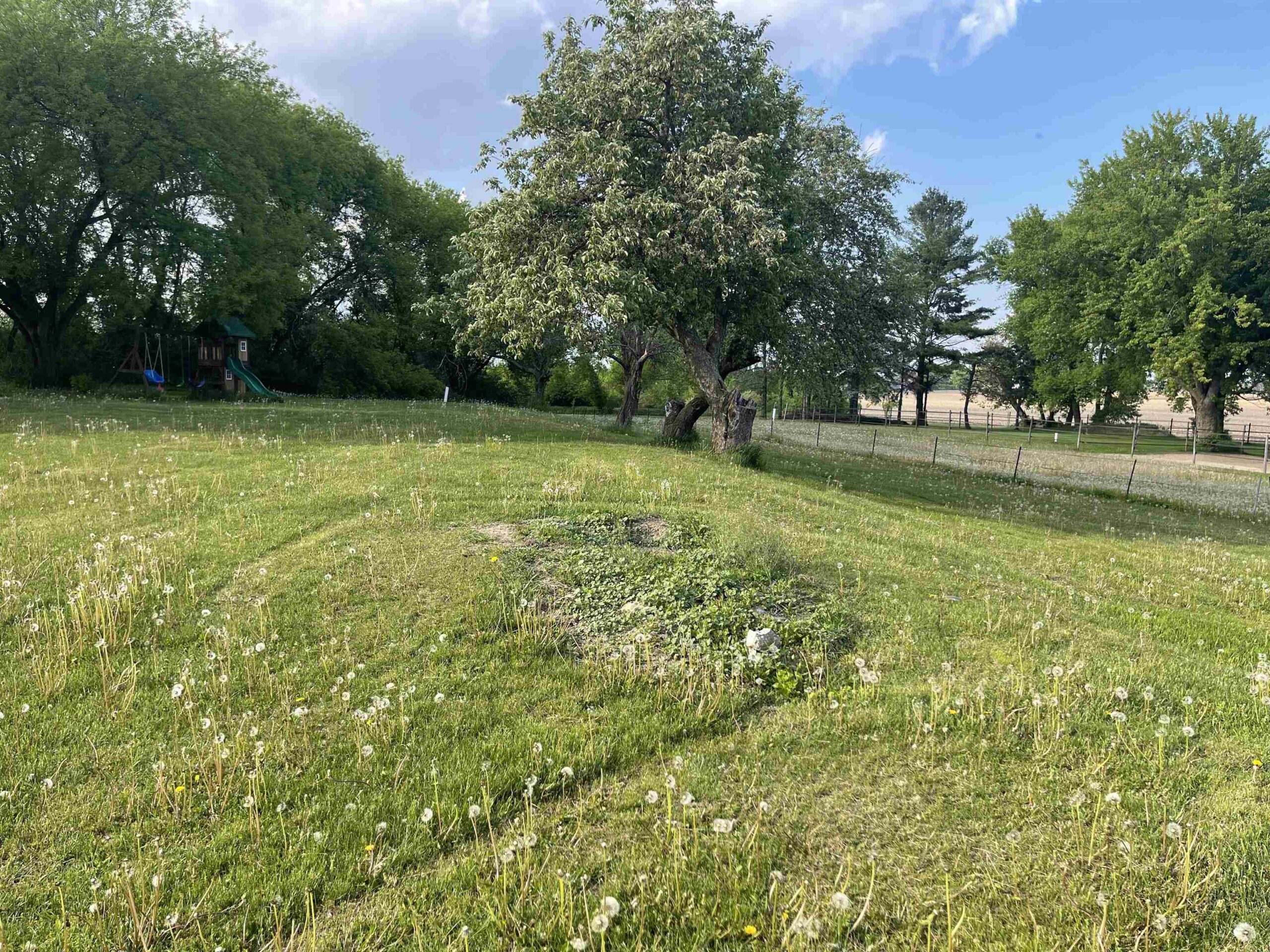 chest freezer and tall freezer in bsmt, new wood swingset, John Deere tractor in pole bldg