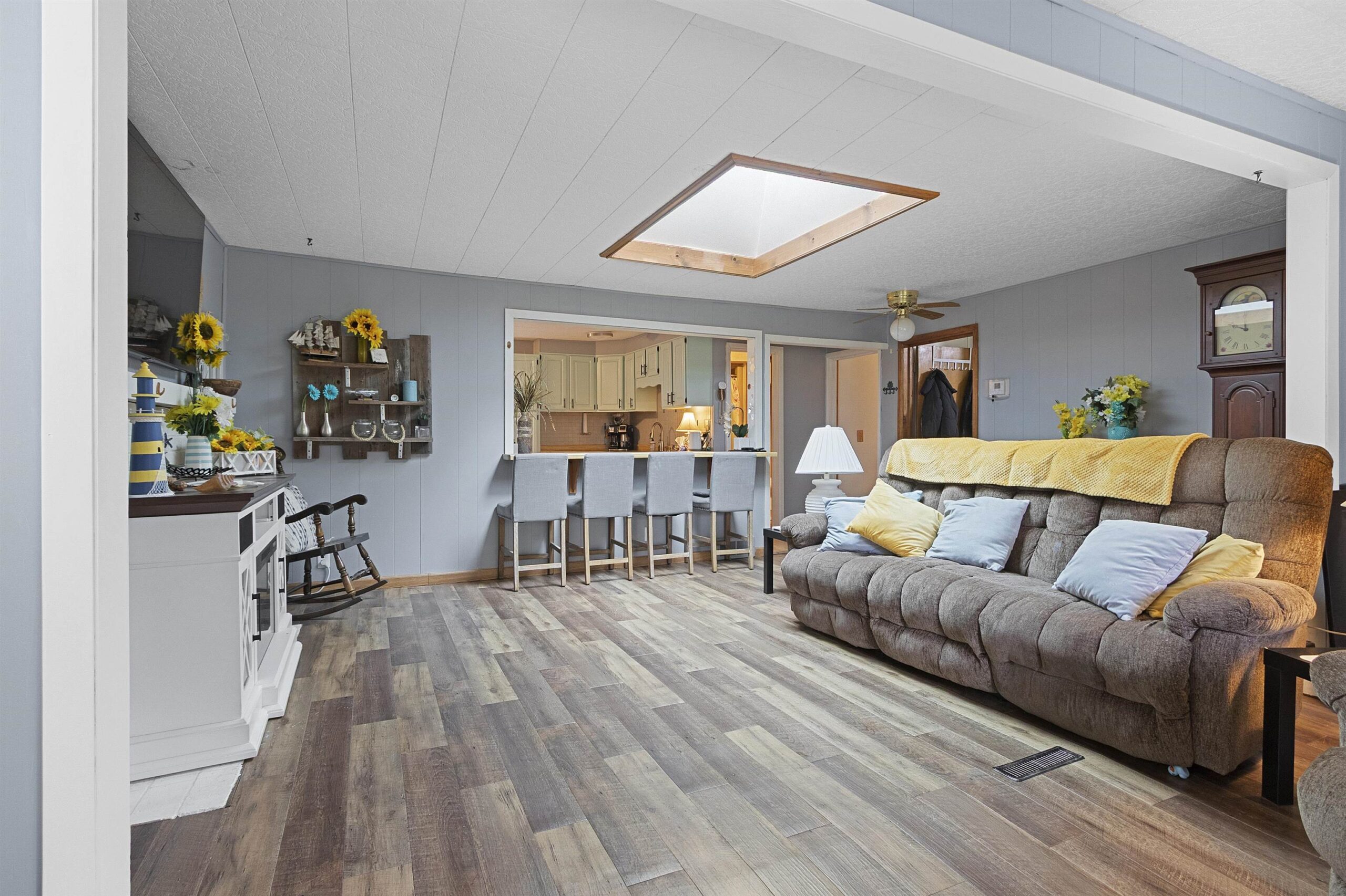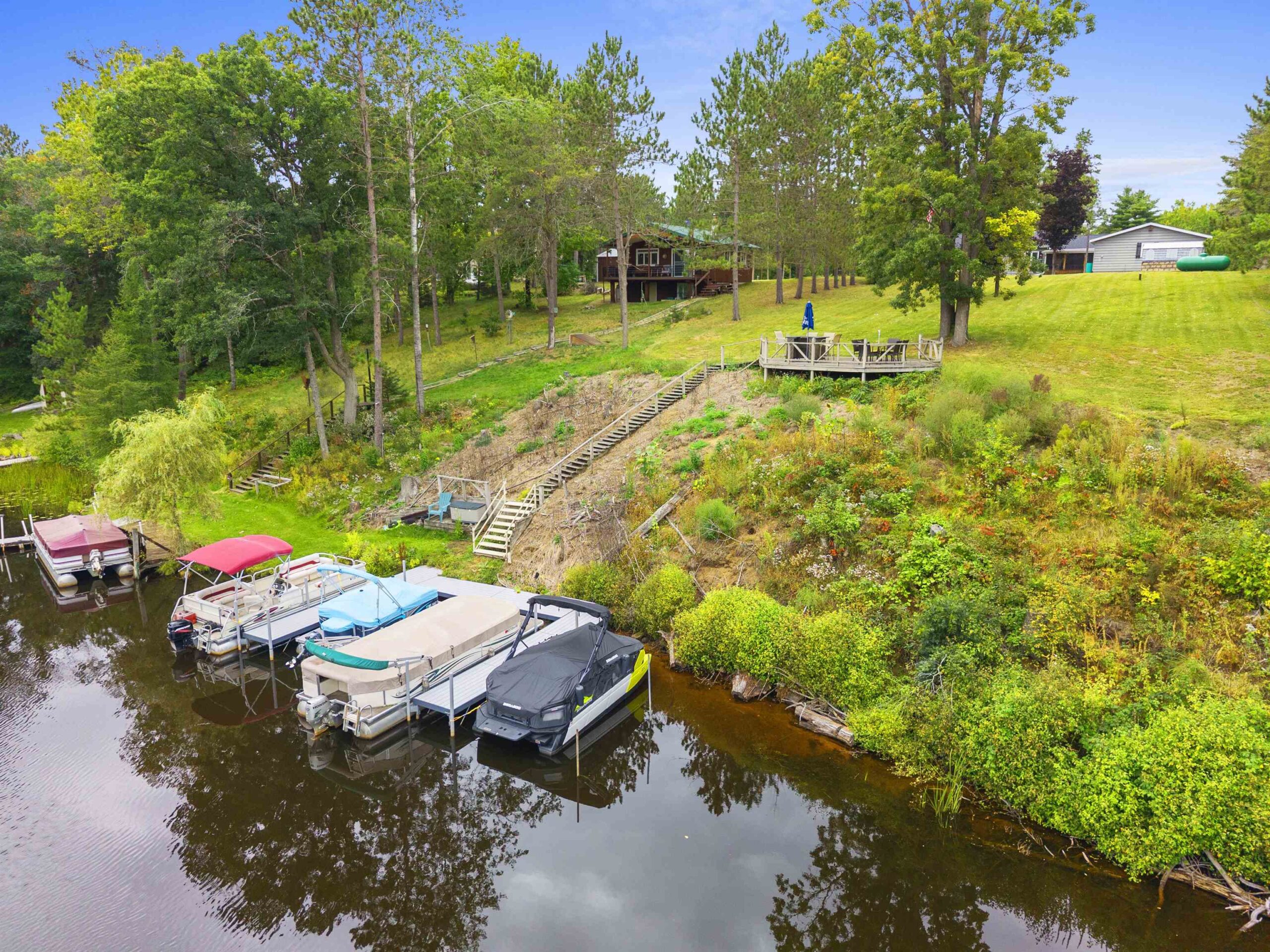 Venture North to: W12235 Eagle Road! This 3 bedroom, 2 bath home sits on a .90-acre lot with 100’ of waterfront on the Peshtigo River, offering access to High Falls Flowage. Enjoy stunning water views from the deck or screened-in porch, while inside a huge skylight brightens the living area with natural light and a cozy wood-burning fireplace adds warmth and charm. Located in the heart of Stephenson, this property also offers income potential with dock rentals already in place and room to add more. A rare Northwoods find! Note: lower level bath ceiling is not finished