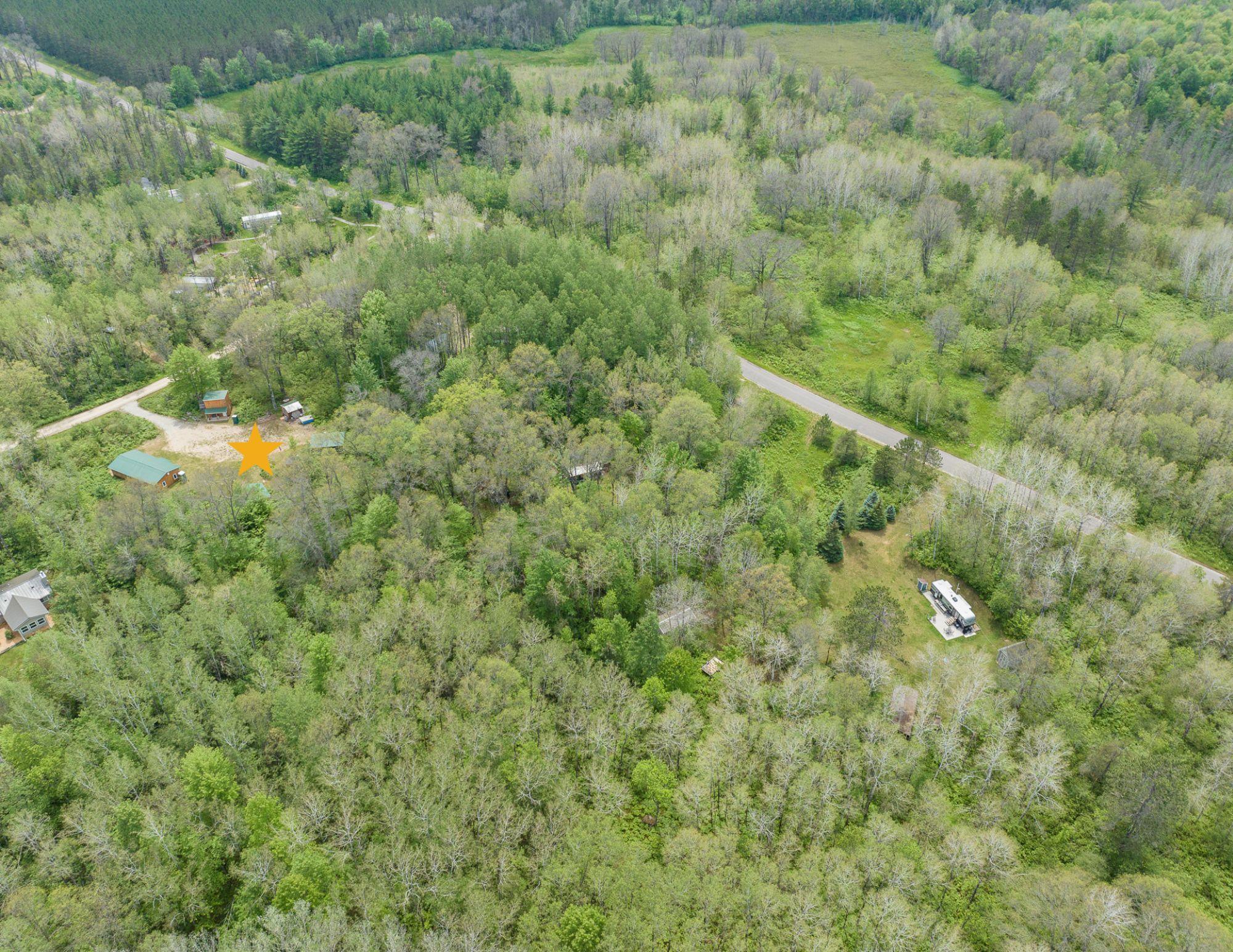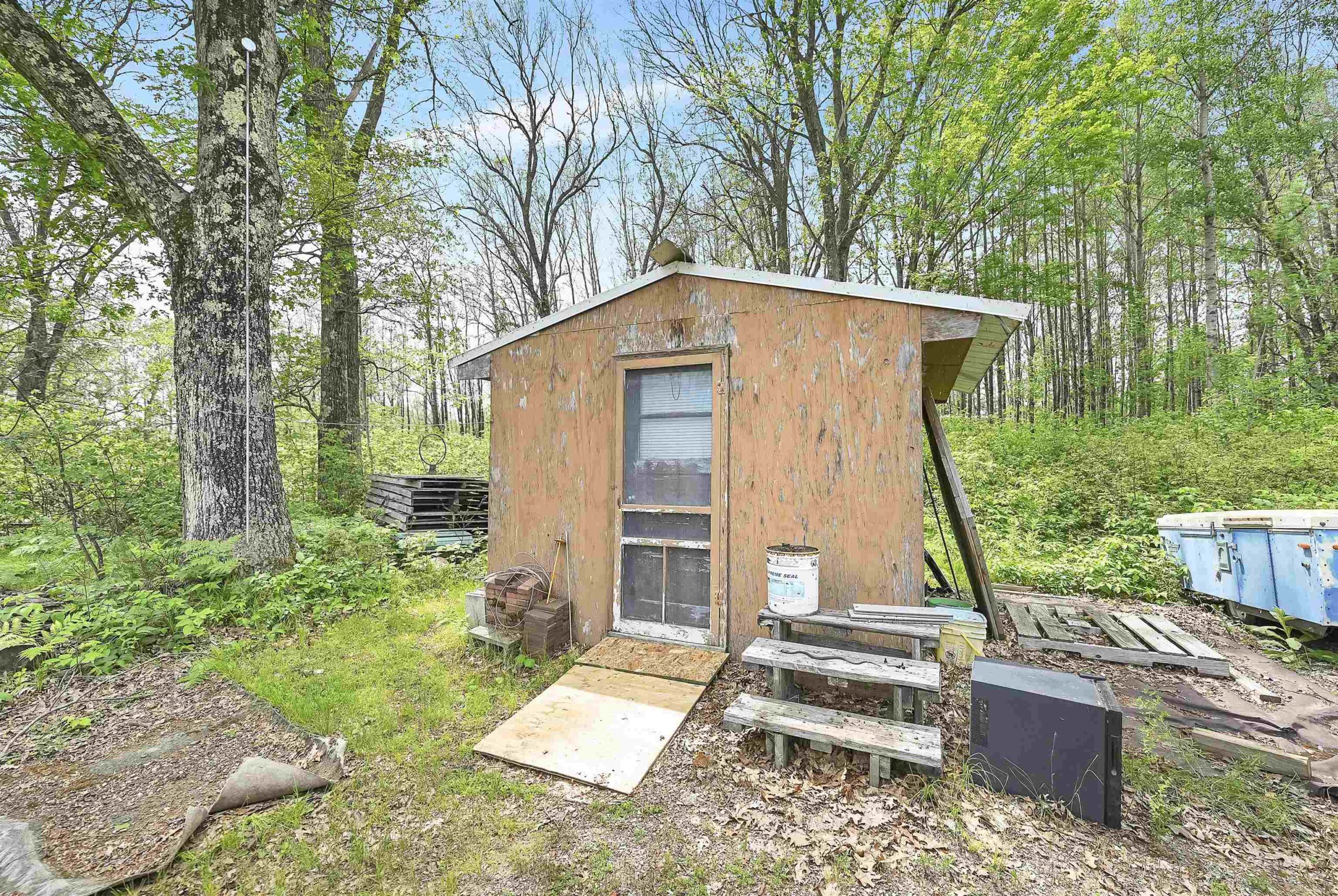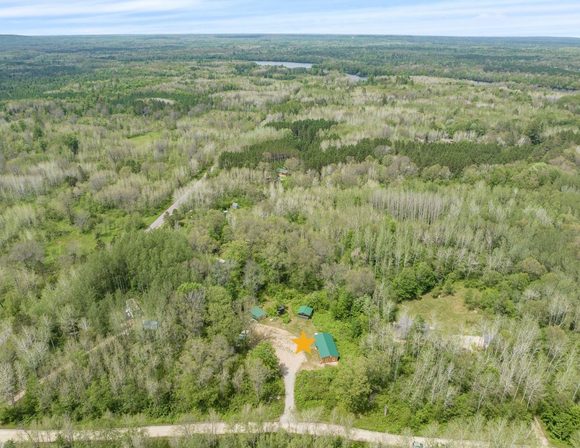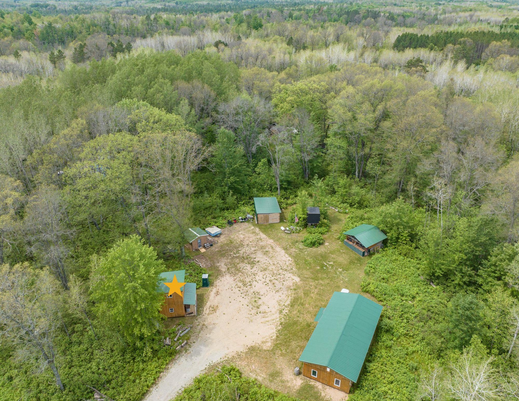 Beautiful 3.32 wooded acreage with so much to offer! Great location close to lakes and Governor Thompson State Park. Just an hour and a half from the Green Bay area! Property includes main cabin that is fully furnished, with a living room, kitchen, wood burning fireplace, and 4 spacious bedrooms. An additional bunk house is located on the property. Covered outdoor firepit area to enjoy rain or shine! Convenient storage shed and wood shed. Full electric service. Seller has estimates to install well/septic if buyers would like to discuss getting that prior to closing. This property is ideal for weekend get aways! Don't miss out on making this property yours!