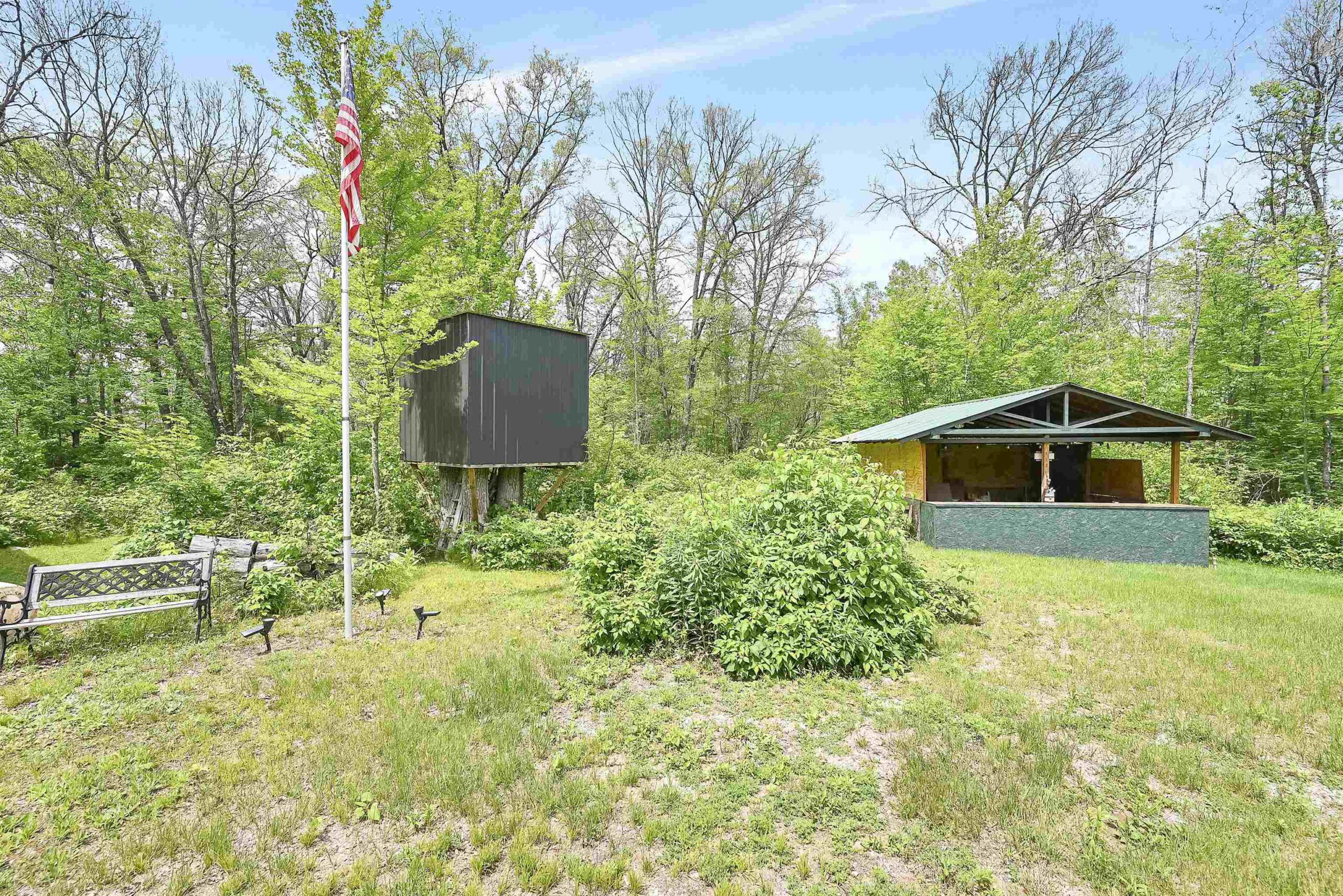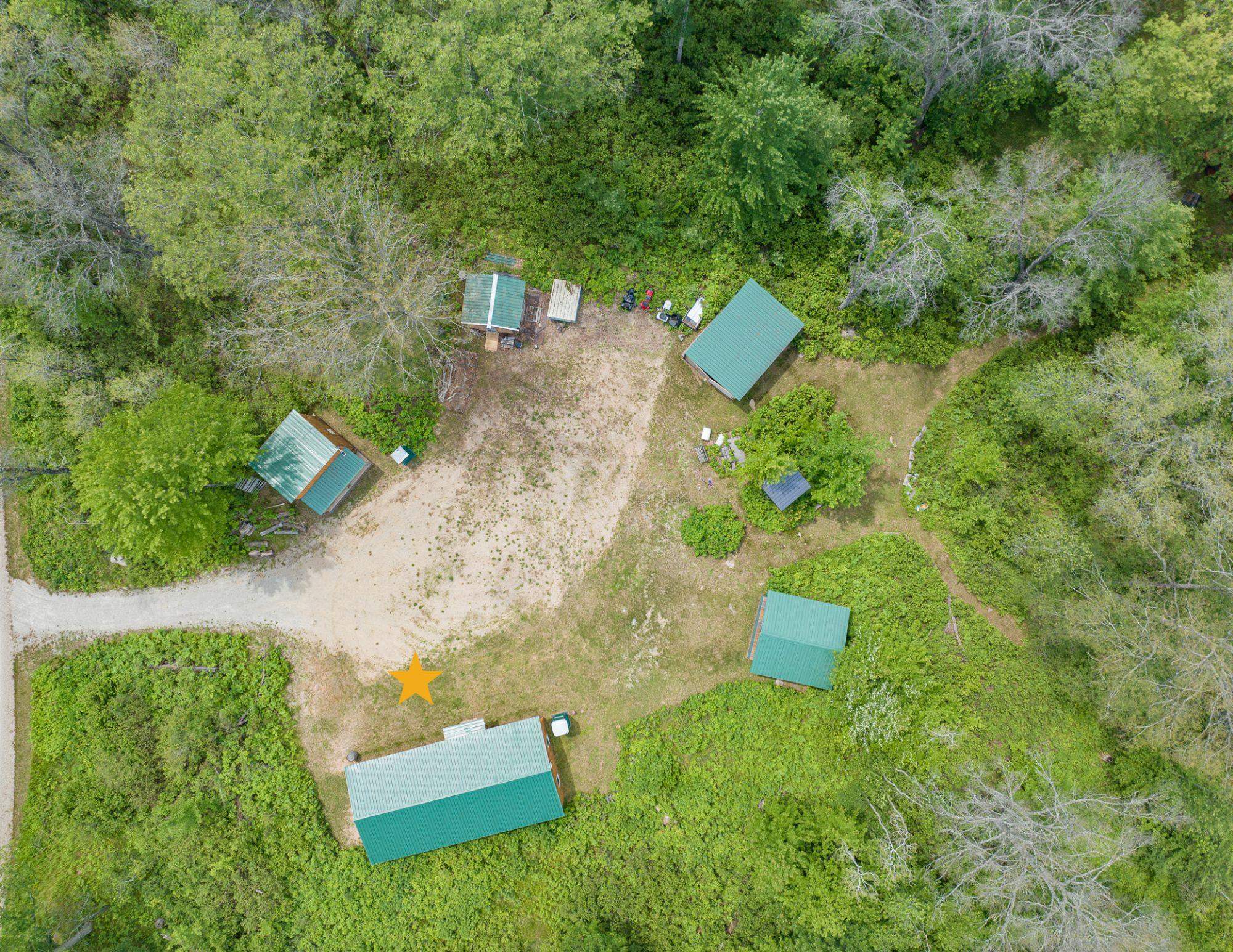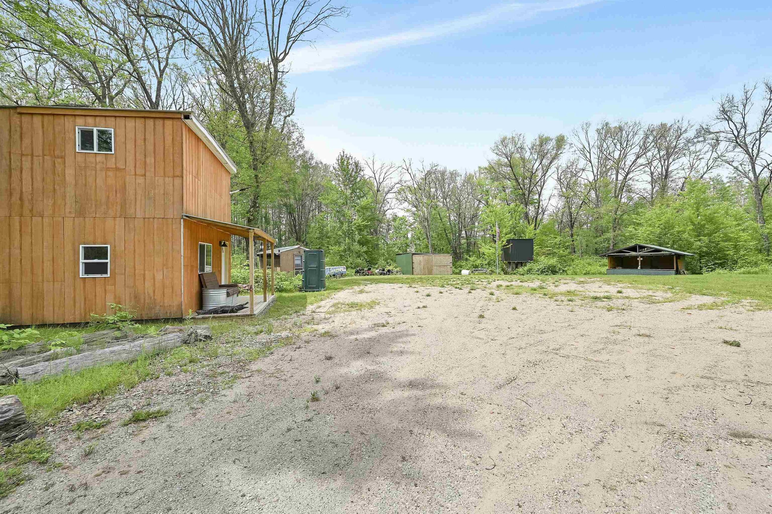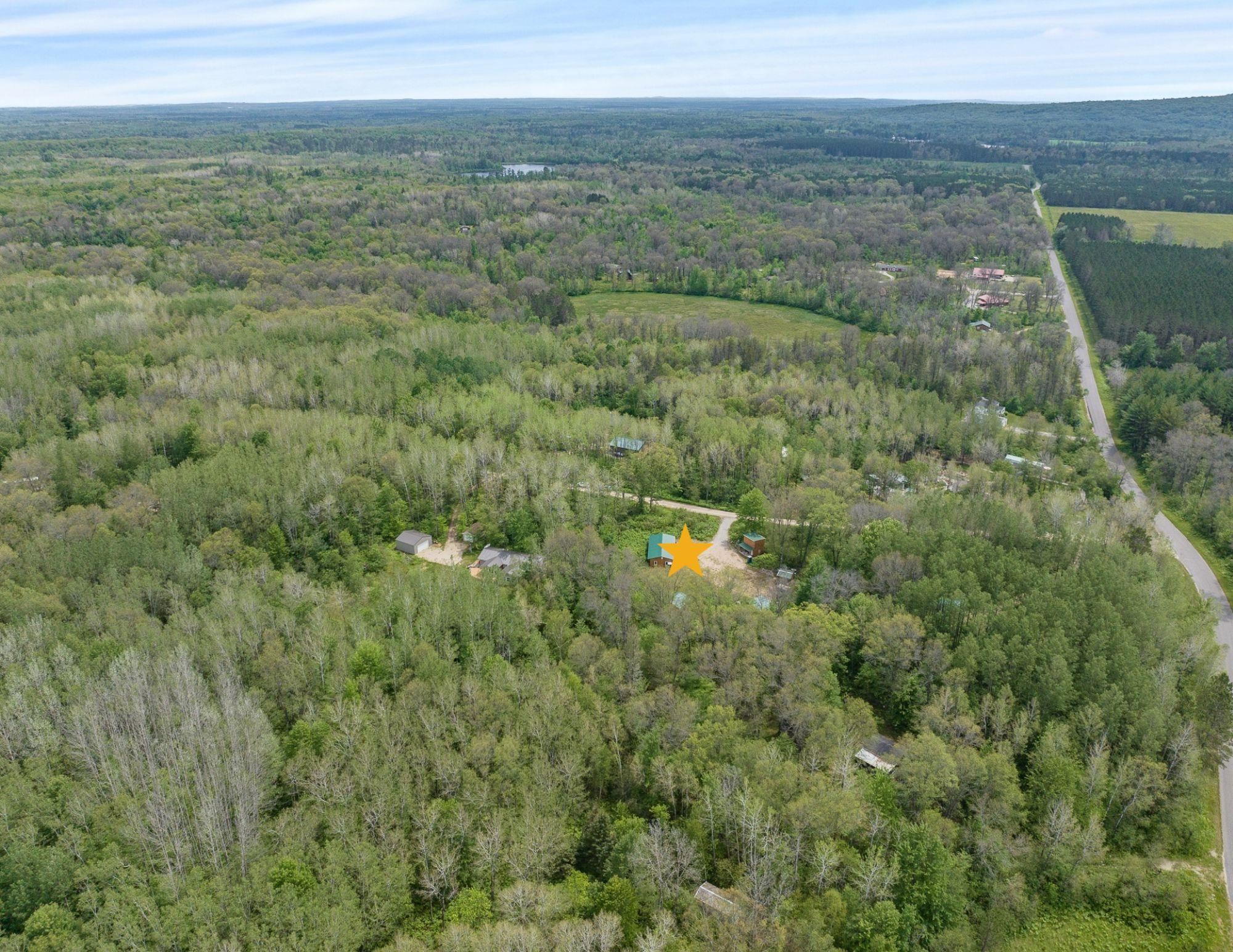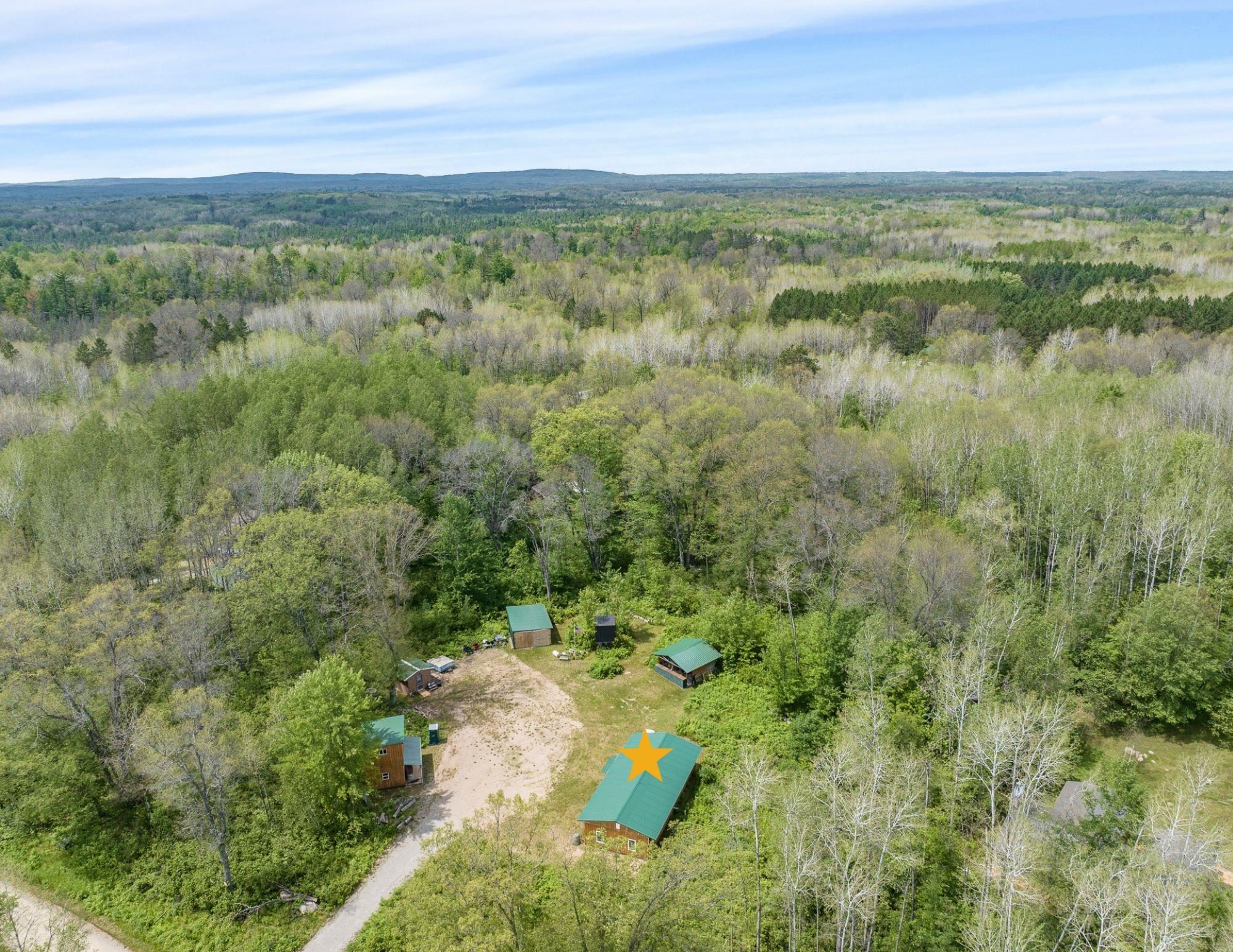 Beautiful 3.32 wooded acreage with so much to offer! Great location close to lakes and Governor Thompson State Park. Just an hour and a half from the Green Bay area! Property includes main cabin that is fully furnished, with a living room, kitchen, wood burning fireplace, and 4 spacious bedrooms. An additional bunk house is located on the property. Covered outdoor firepit area to enjoy rain or shine! Convenient storage shed and wood shed. Full electric service. Seller has estimates to install well/septic if buyers would like to discuss getting that prior to closing. This property is ideal for weekend get aways! Don't miss out on making this property yours!