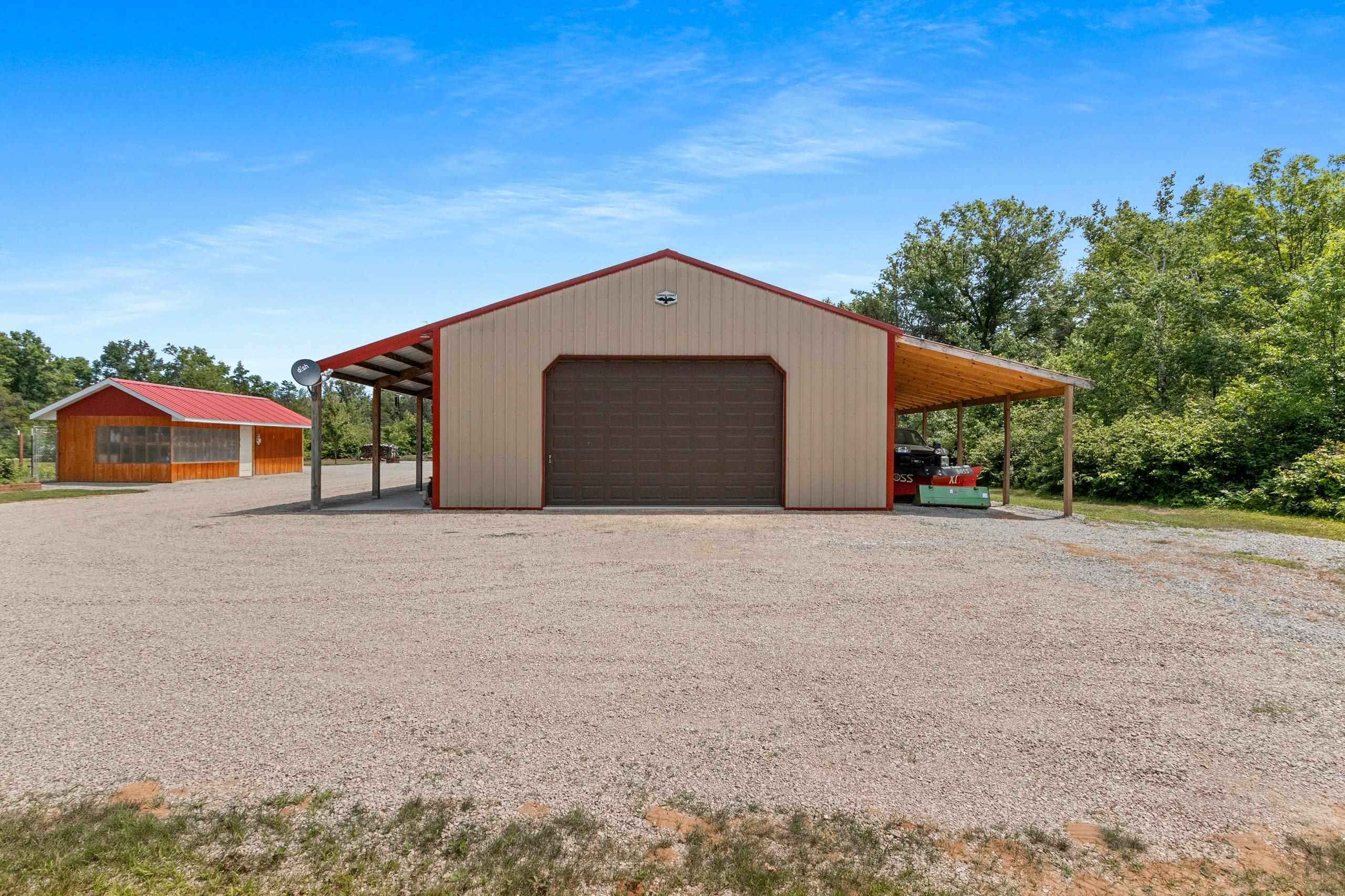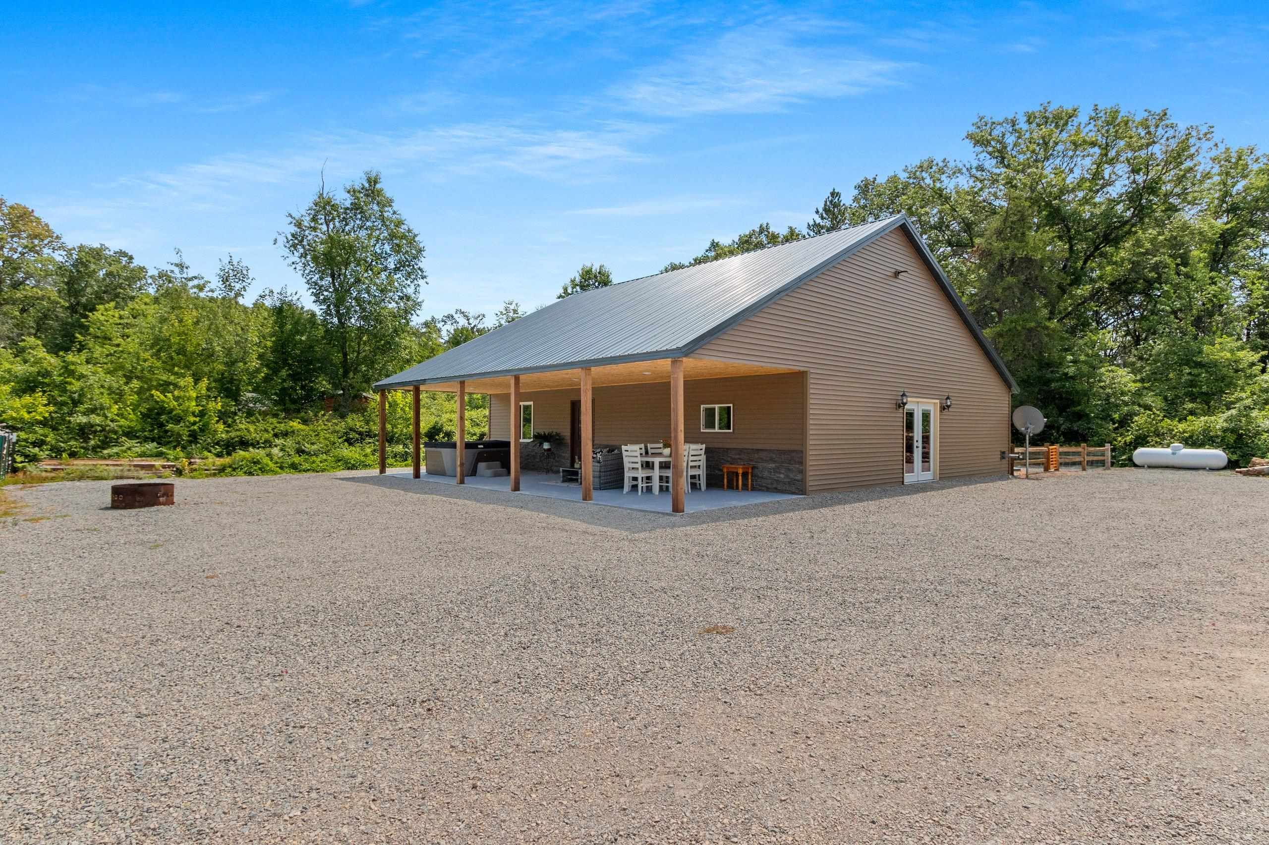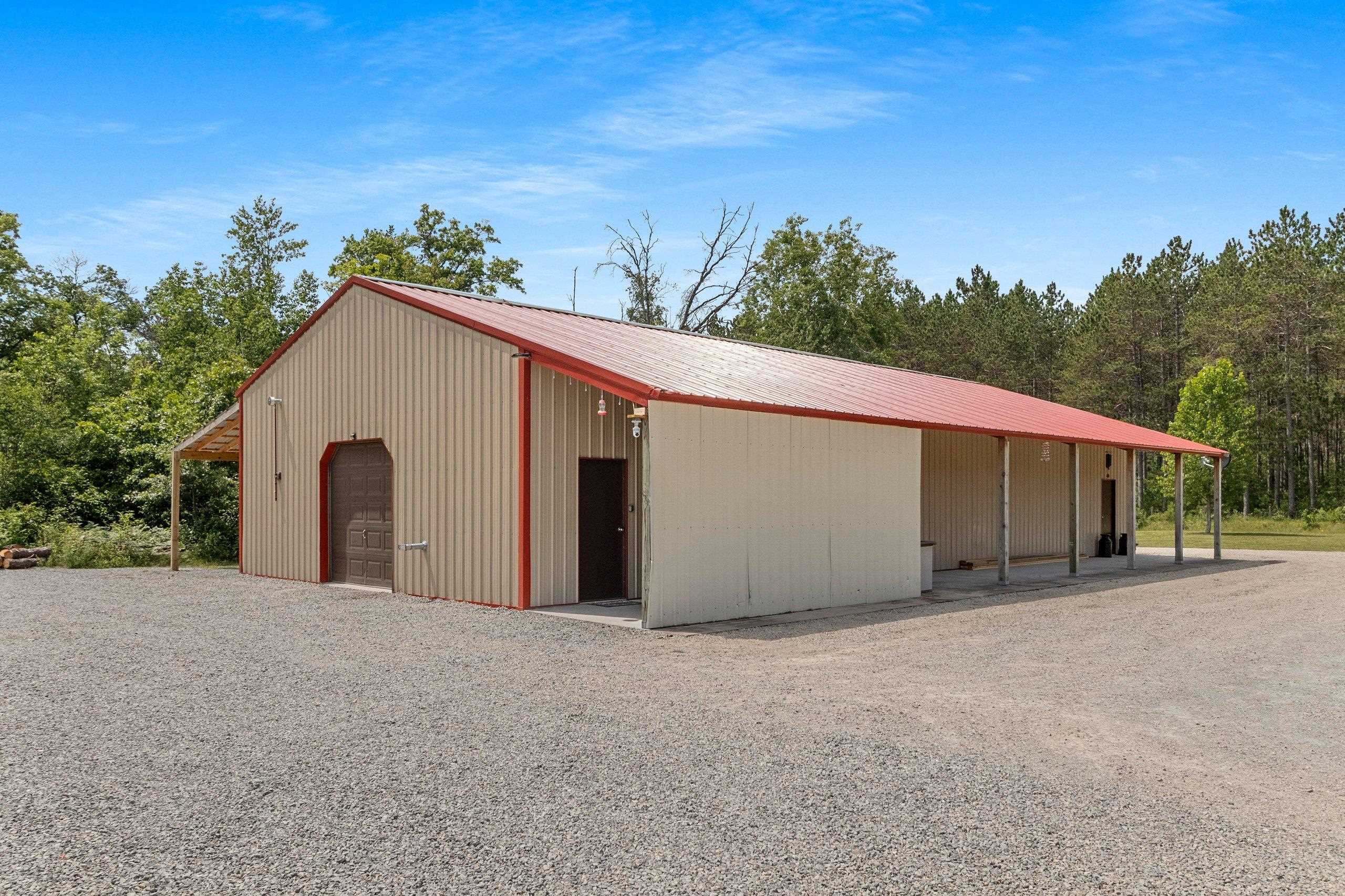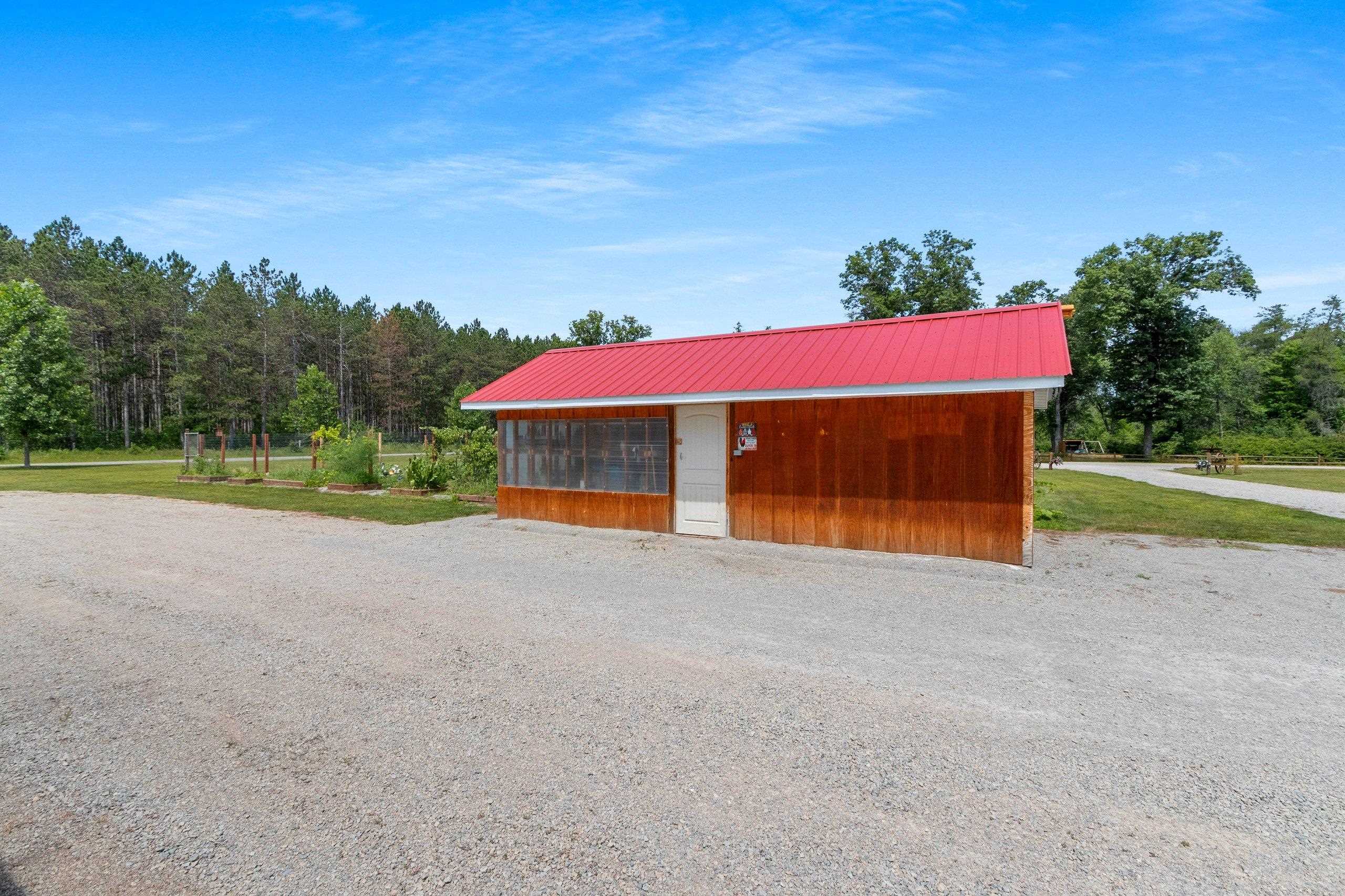Northwoods Retreat: Cozy & Functional ], This newly built charming 2-bed, 2-bath single-story home with in-floor heating. Large open floor plan from kitchen to living room. Fenced in yard along with a large covered porch for entertaining. Enjoy watching the wildlife from your covered porch. Multi-purpose outbuilding (garage, workshop, storage), and a unique chicken coop/greenhouse combo. Minutes from boat landings, UTV and snowmobile trails. Ideal for peaceful living and year-round adventure. Three wells on the property; house, workshop, Greenhouse/ Chicken coop. Flooring in the house is epoxy coated. Workshop/ Garage outbuilding along with the Greenhouse/ Chicken Coop all have their own wells