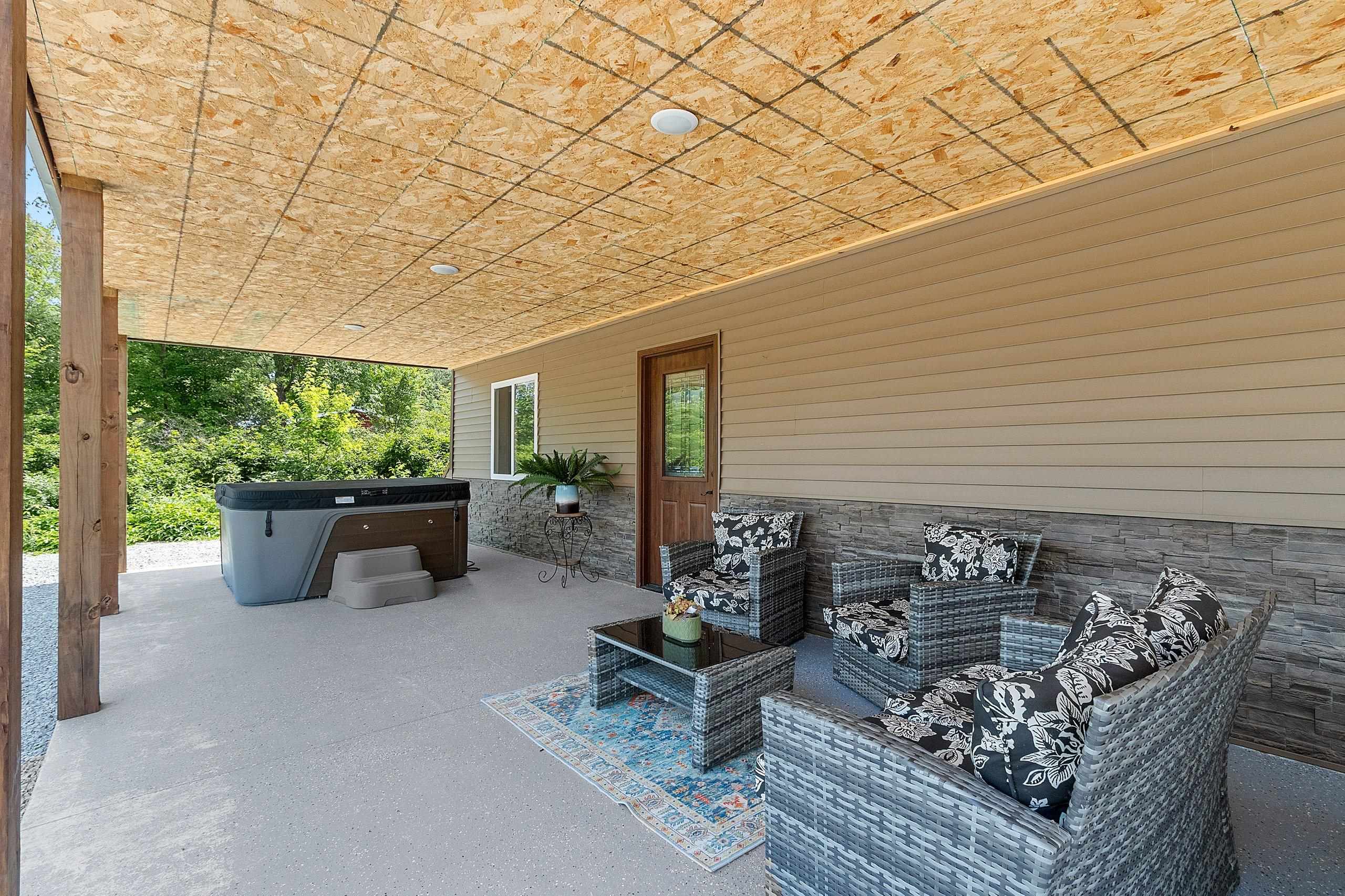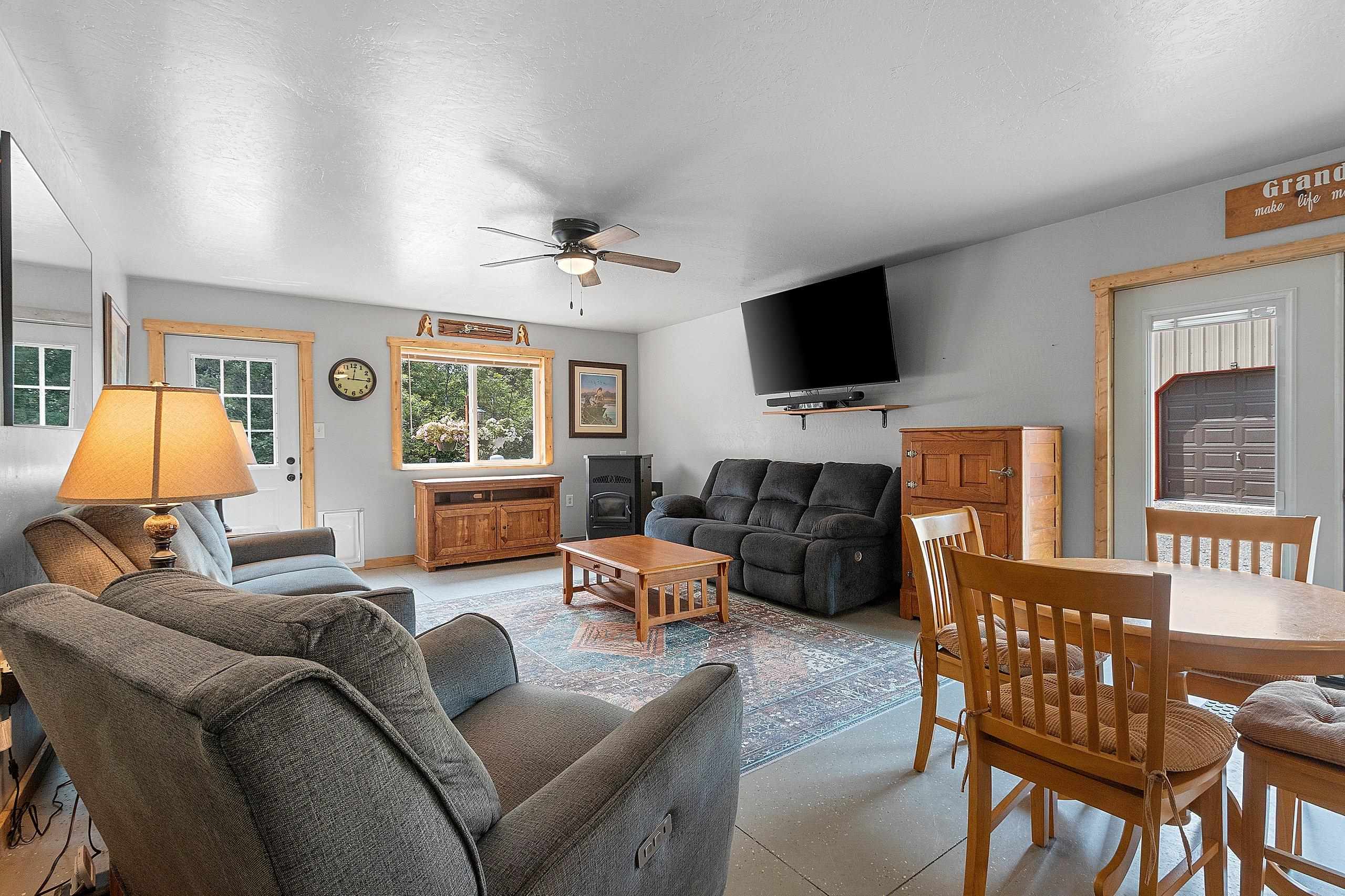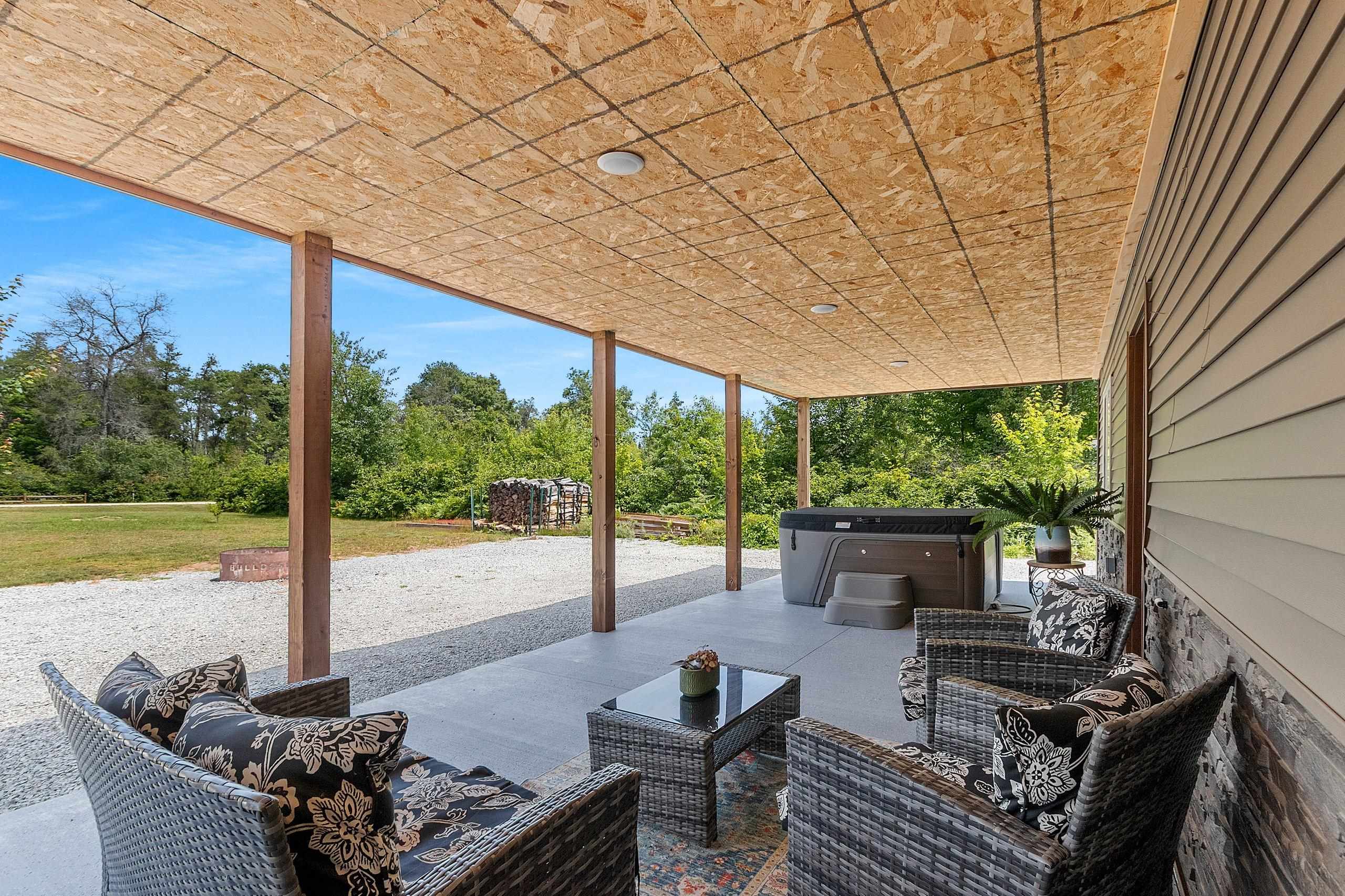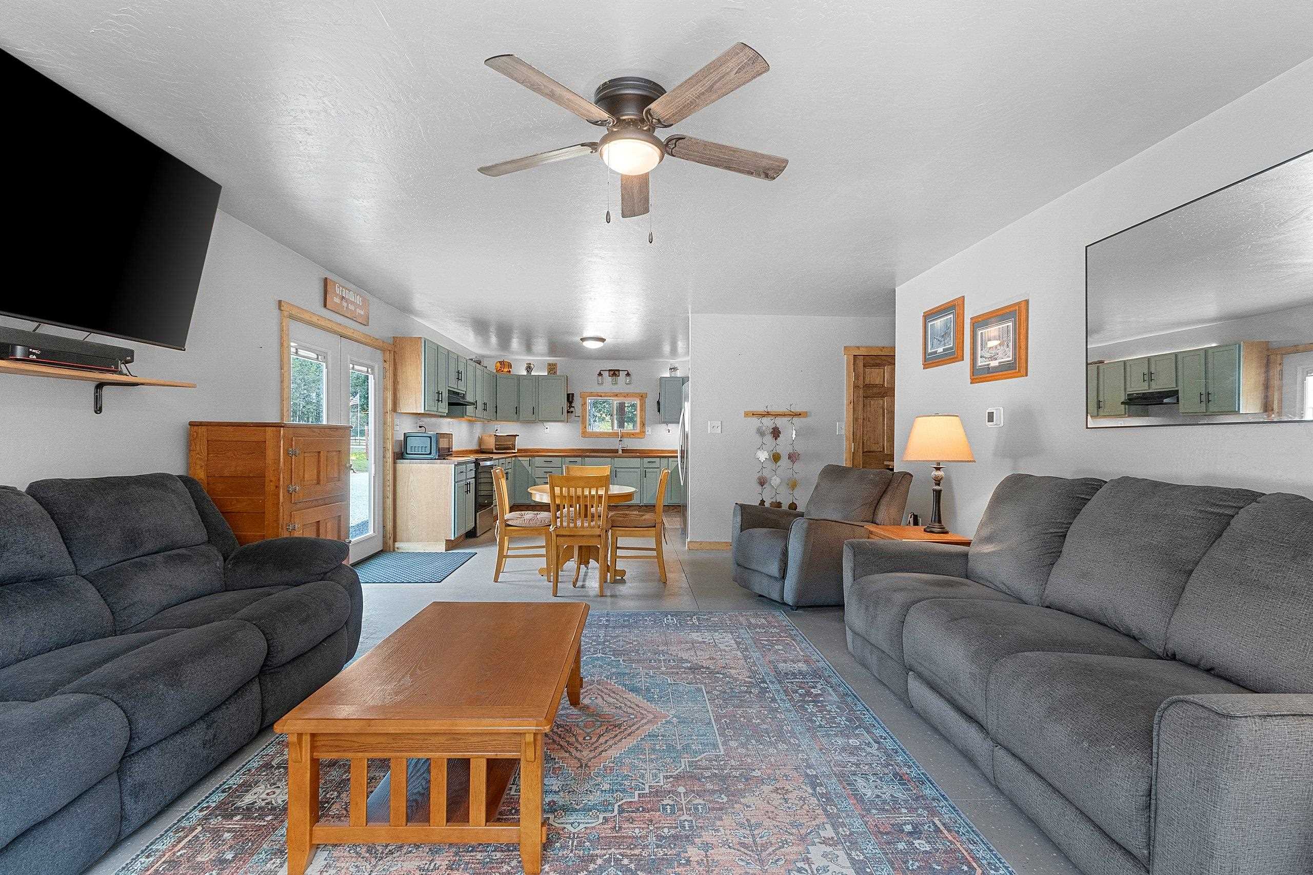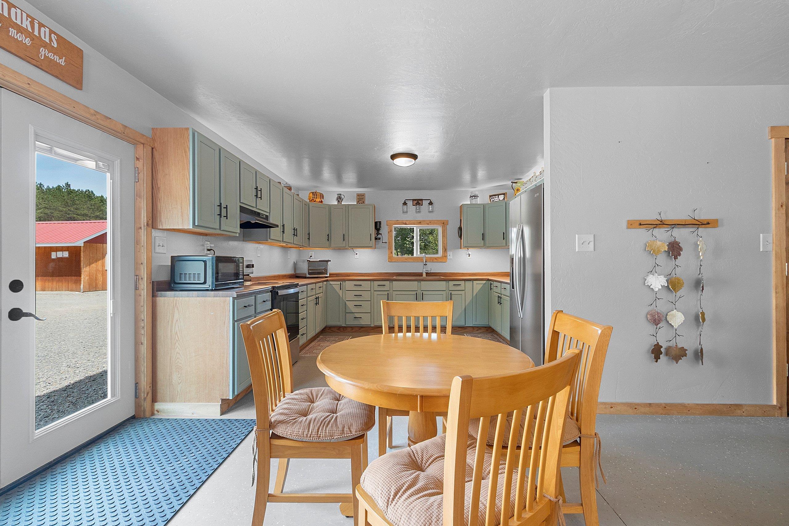 Northwoods Retreat: Cozy & Functional ], This newly built charming 2-bed, 2-bath single-story home with in-floor heating. Large open floor plan from kitchen to living room. Fenced in yard along with a large covered porch for entertaining. Enjoy watching the wildlife from your covered porch. Multi-purpose outbuilding (garage, workshop, storage), and a unique chicken coop/greenhouse combo. Minutes from boat landings, UTV and snowmobile trails. Ideal for peaceful living and year-round adventure. Three wells on the property; house, workshop, Greenhouse/ Chicken coop. Flooring in the house is epoxy coated. Workshop/ Garage outbuilding along with the Greenhouse/ Chicken Coop all have their own wells