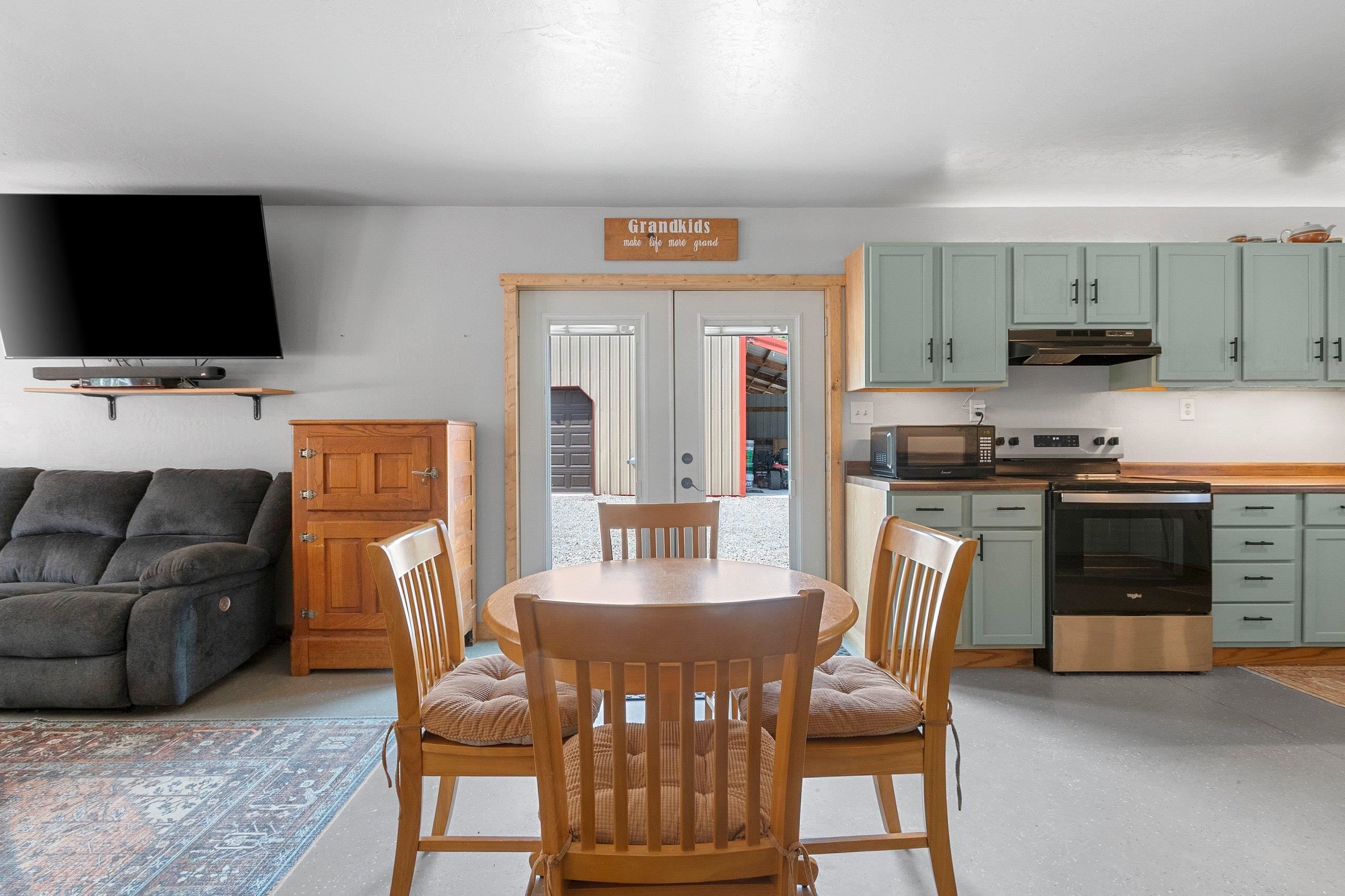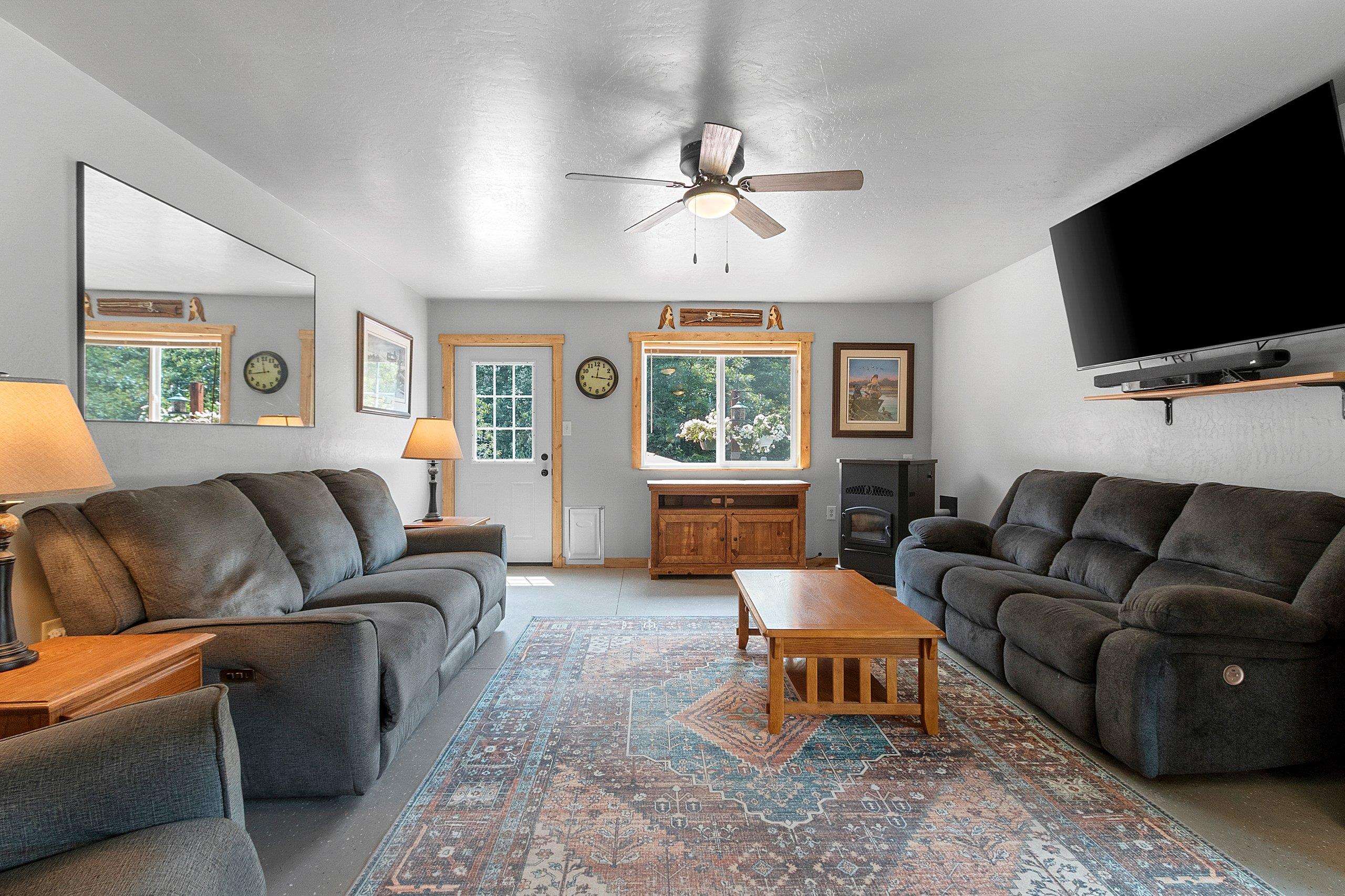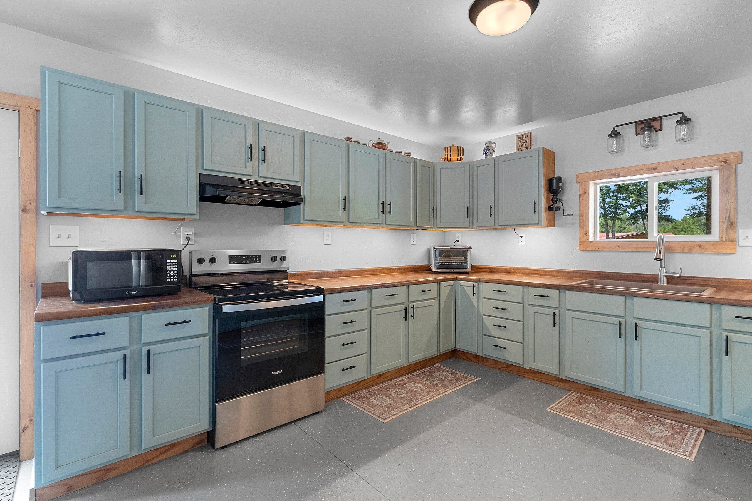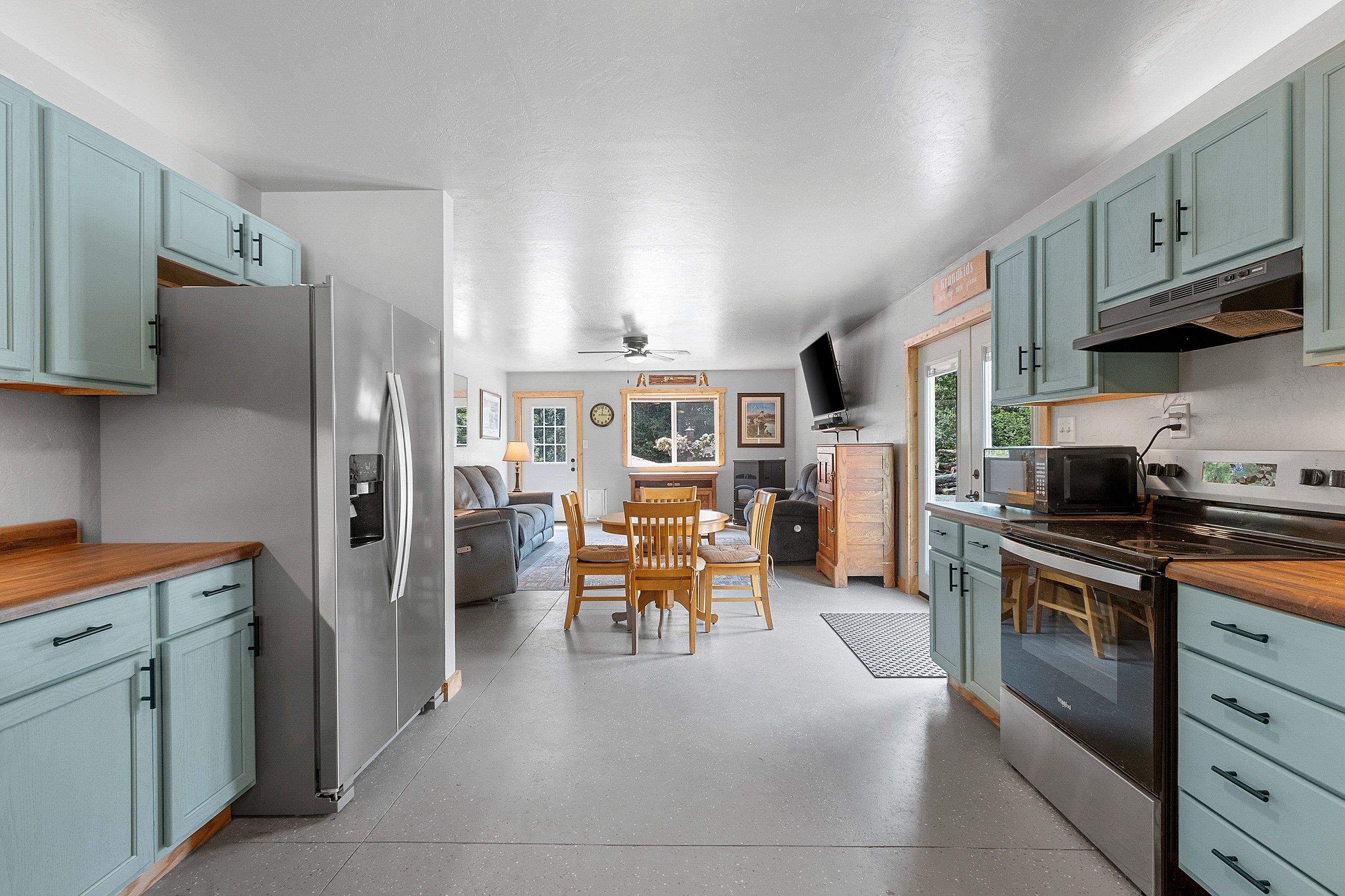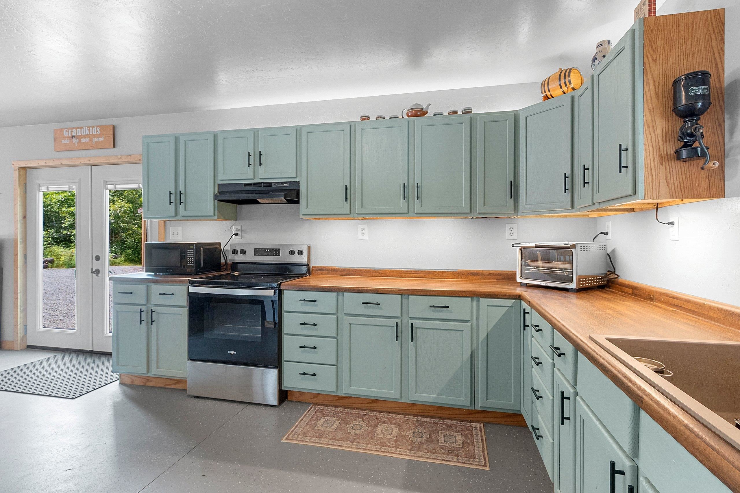 Northwoods Retreat: Cozy & Functional ], This newly built charming 2-bed, 2-bath single-story home with in-floor heating. Large open floor plan from kitchen to living room. Fenced in yard along with a large covered porch for entertaining. Enjoy watching the wildlife from your covered porch. Multi-purpose outbuilding (garage, workshop, storage), and a unique chicken coop/greenhouse combo. Minutes from boat landings, UTV and snowmobile trails. Ideal for peaceful living and year-round adventure. Three wells on the property; house, workshop, Greenhouse/ Chicken coop. Flooring in the house is epoxy coated. Workshop/ Garage outbuilding along with the Greenhouse/ Chicken Coop all have their own wells