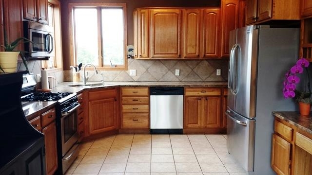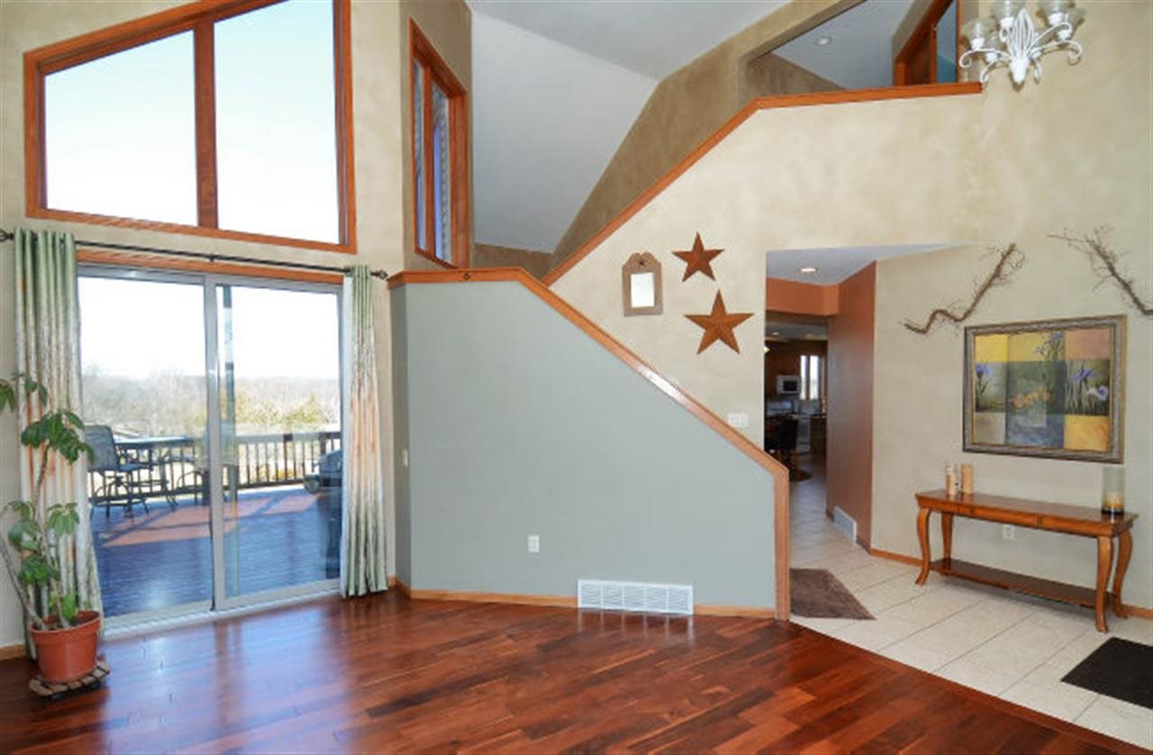 Country Subdivision. This spacious multi-level home offers an expansive view of Lake Wisconsin, Baraboo Bluffs, and in the winter the lighted ski slopes of Devils Head. The 3 levels feature great living spaces and room for everyone in the family. BRAND NEW stainless steel appliances in the kitchen. The LL features a 15x14 exercise room, 18x14 family or TV room, and an 18x14 game room with a fireplace. Large wrap-around deck. Yard with firepit, garden space, and fruit trees. Oversized 3+ car garage.