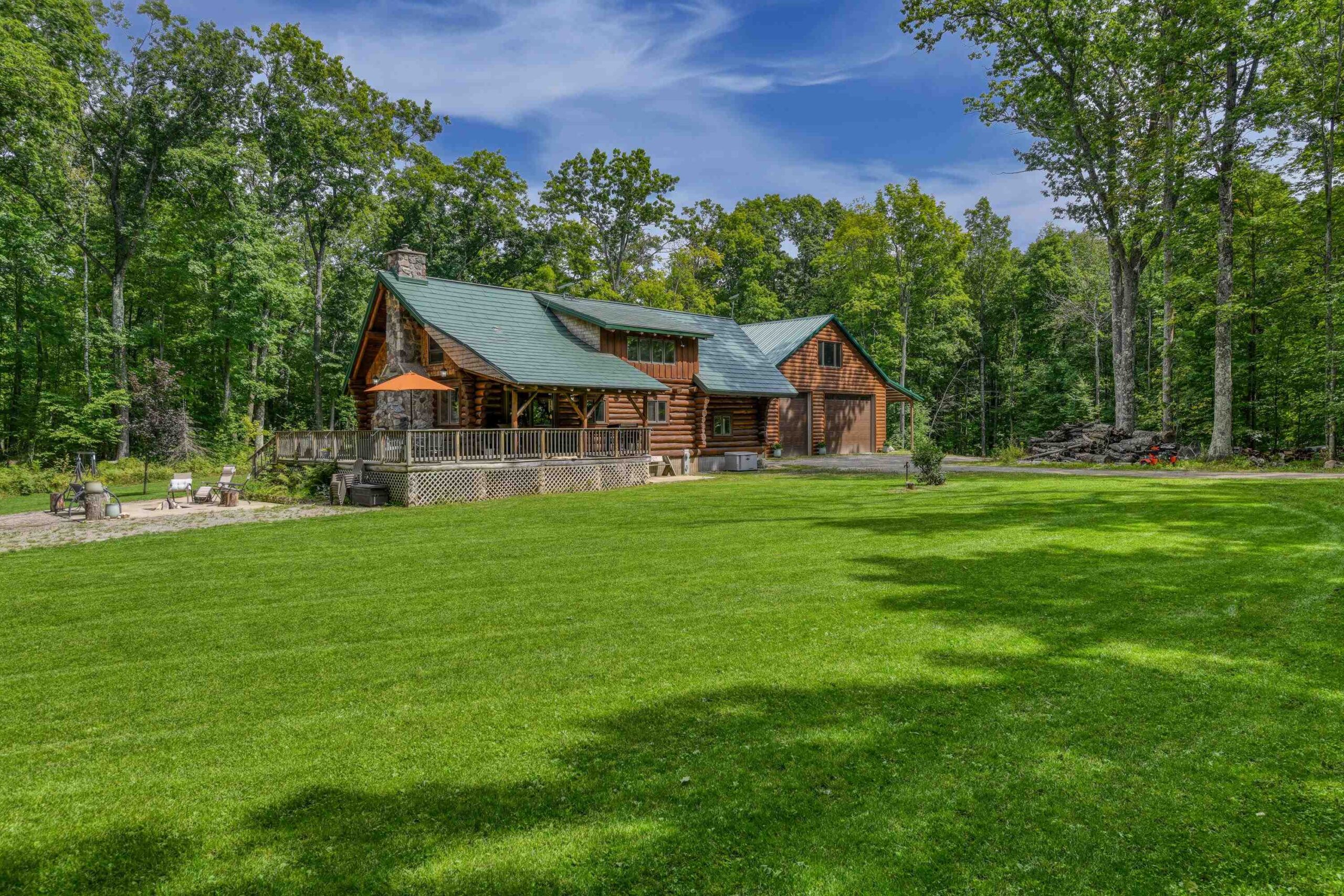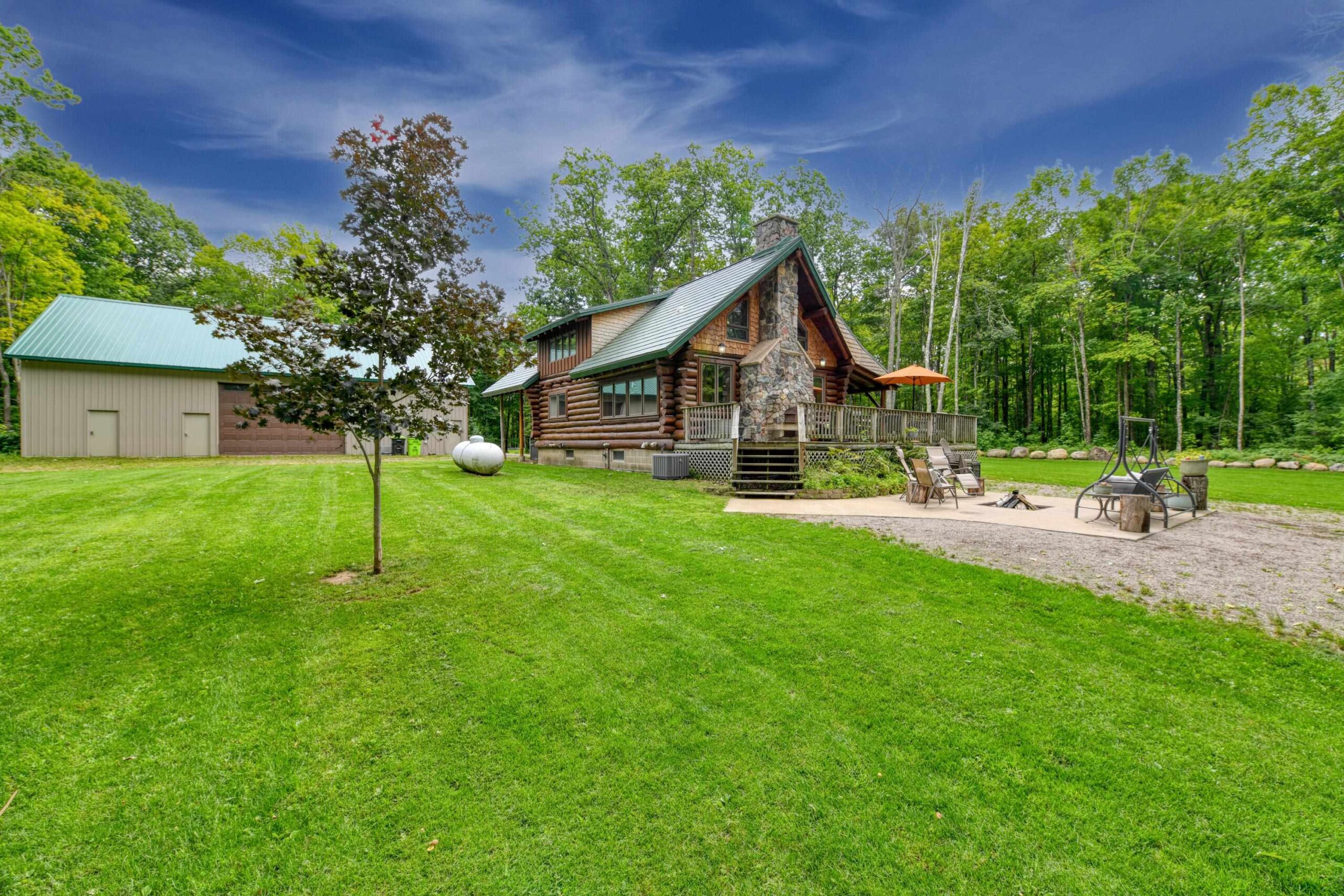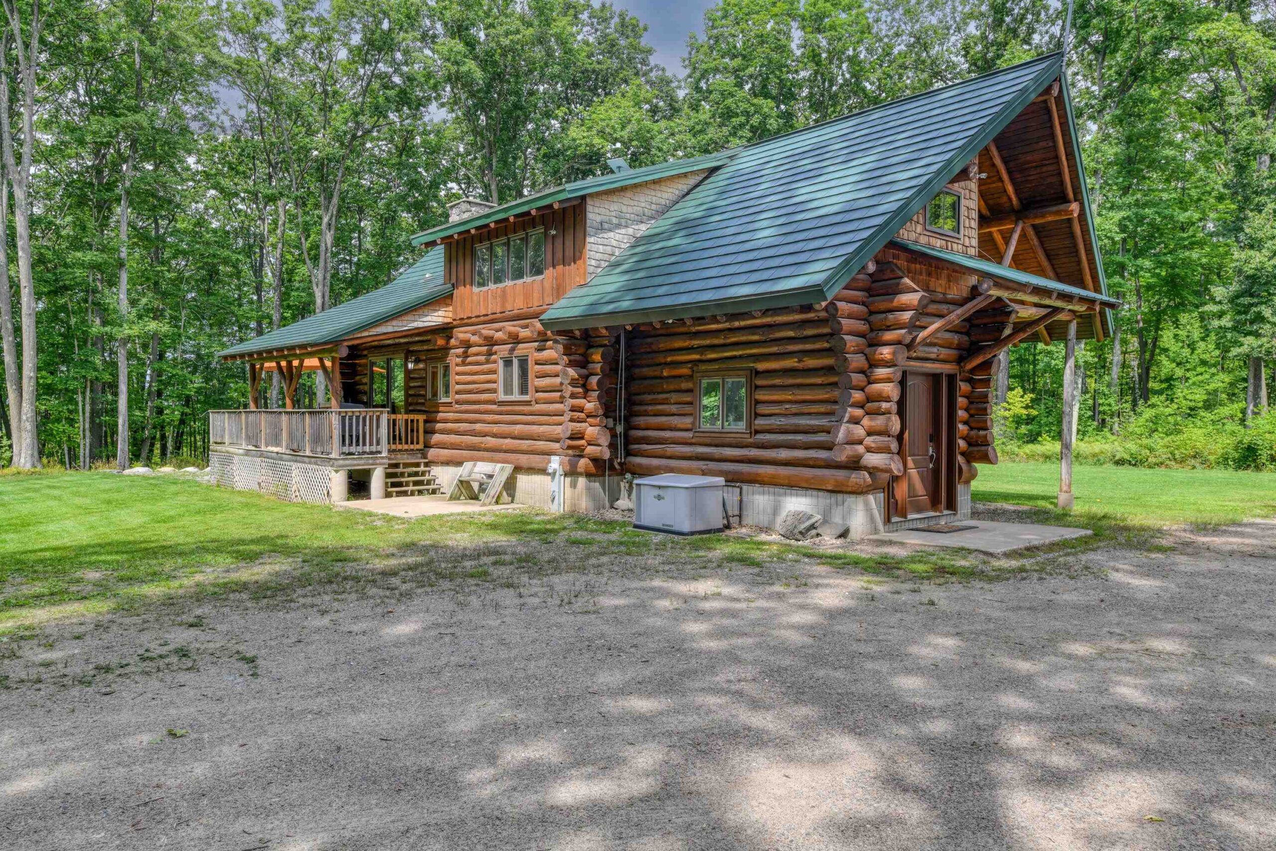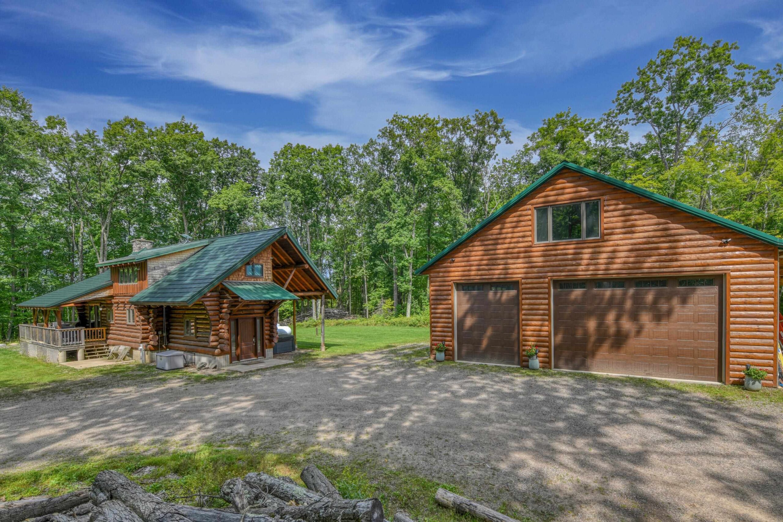 Escape to the Northwoods in this 3-bedroom 2-bath log home nestled on 4.78 wooded acres, just minutes from Lake Hilbert. This rustic yet refined home offers a blend of comfort and character, featuring a cozy wood fireplace, open concept, updated kitchen with granite countertops, renovated bath, wrap around deck, patio w/firepit, full basement with bedroom and new bathroom. A rare 40x60 garage has a heated office, finished upstairs w/bed and bath for additional living space and a 12x60 lean to for extra storage. The home is equipped with a back-up generator. Located on ATV/Snowmobile route. Whether you're looking for year-round home or a weekend retreat this unique property has the privacy, charm and location you've been looking for. Additional 4.78 acres for sale mls 50311040
