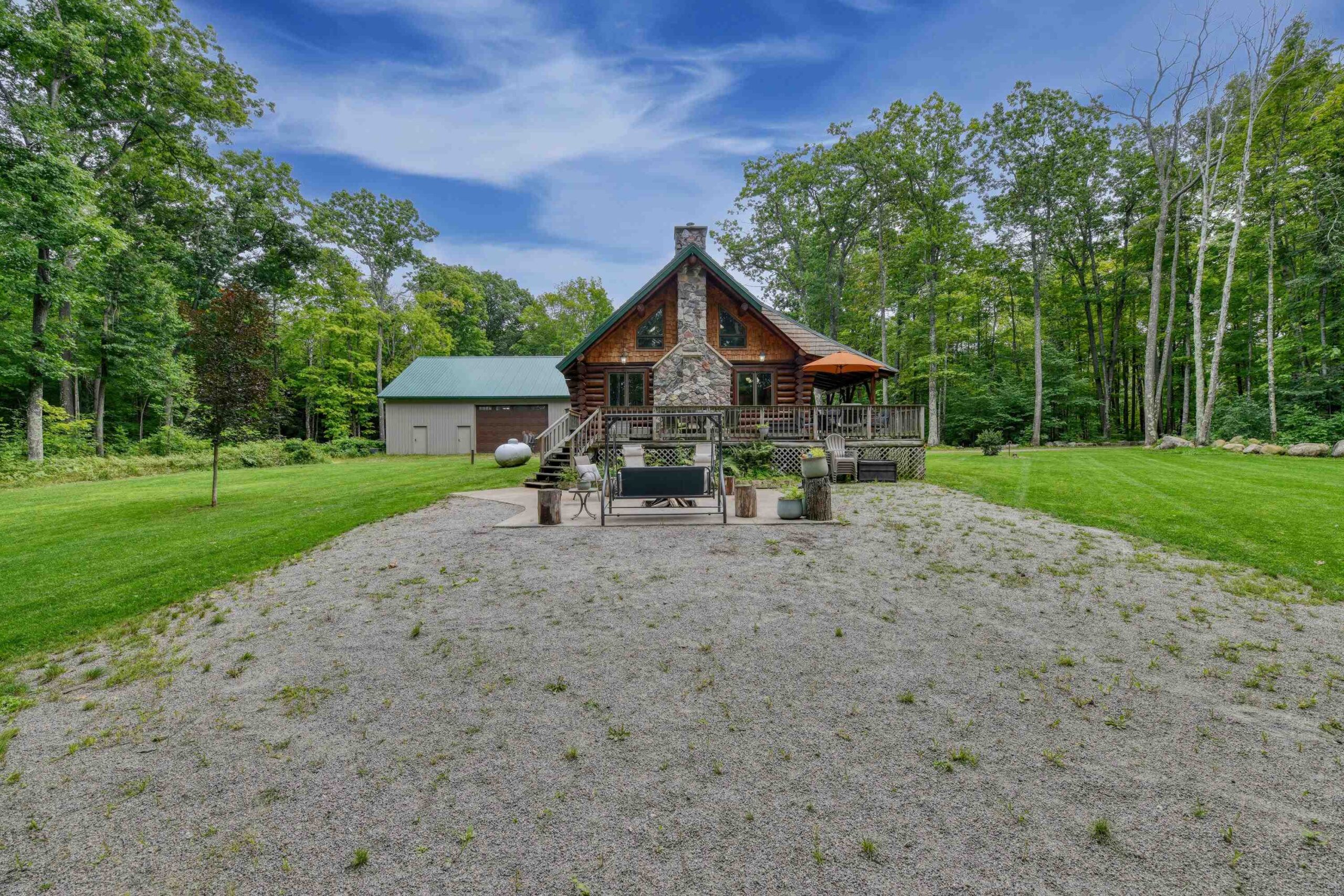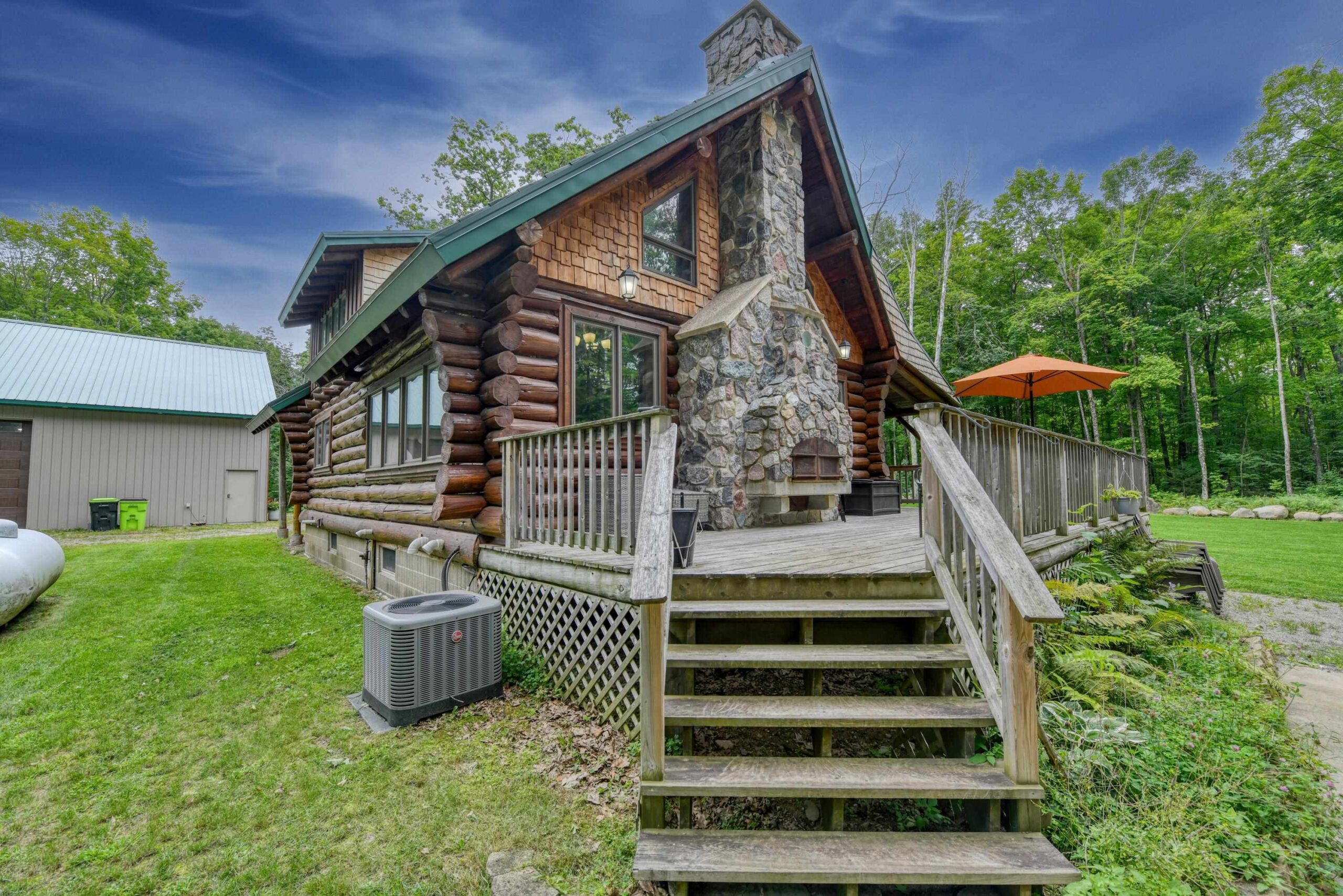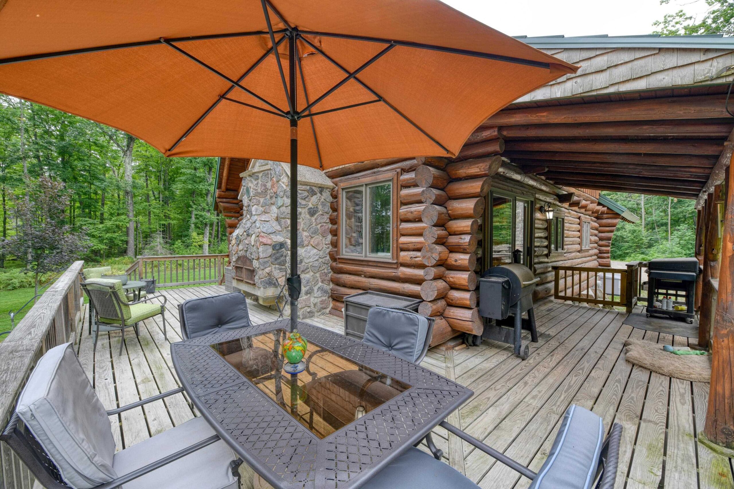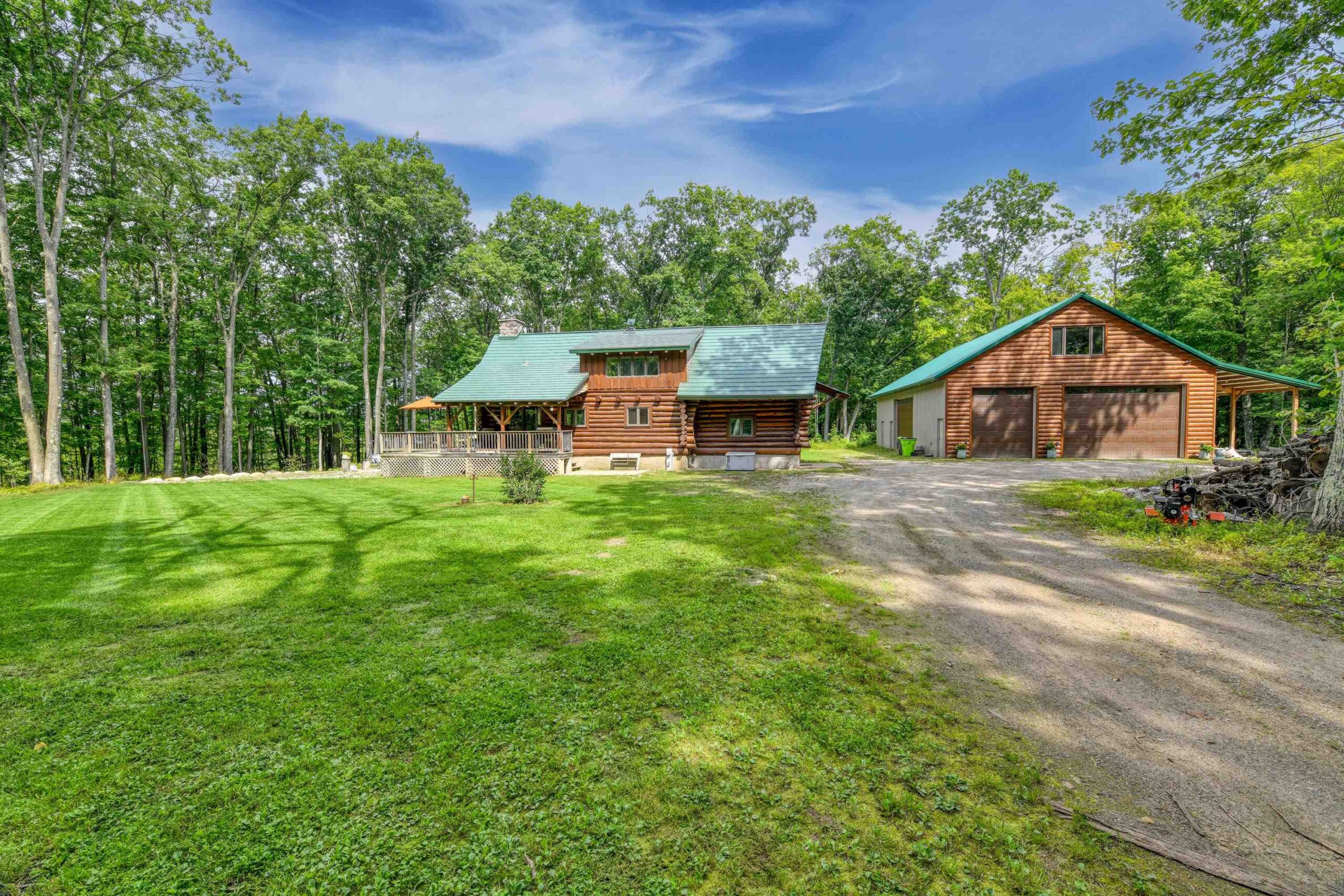 Escape to the Northwoods in this 3-bedroom 2-bath log home nestled on 4.78 wooded acres, just minutes from Lake Hilbert. This rustic yet refined home offers a blend of comfort and character, featuring a cozy wood fireplace, open concept, updated kitchen with granite countertops, renovated bath, wrap around deck, patio w/firepit, full basement with bedroom and new bathroom. A rare 40x60 garage has a heated office, finished upstairs w/bed and bath for additional living space and a 12x60 lean to for extra storage. The home is equipped with a back-up generator. Located on ATV/Snowmobile route. Whether you're looking for year-round home or a weekend retreat this unique property has the privacy, charm and location you've been looking for. Additional 4.78 acres for sale mls 50311040