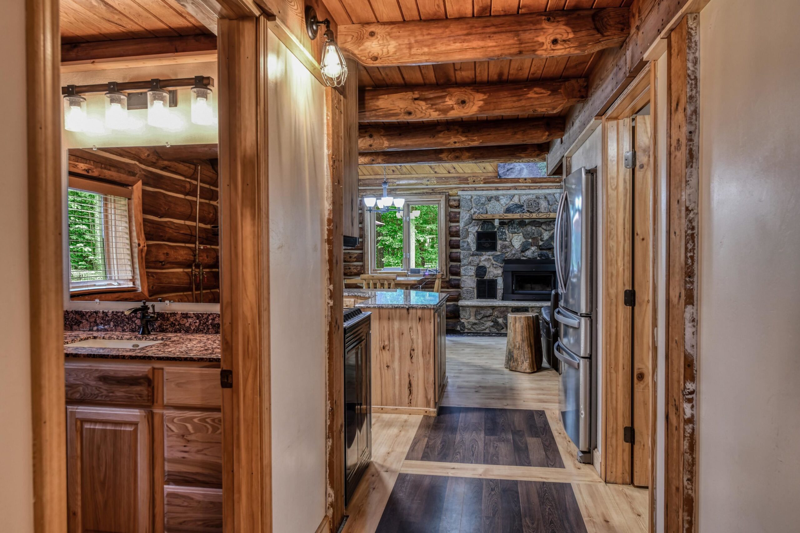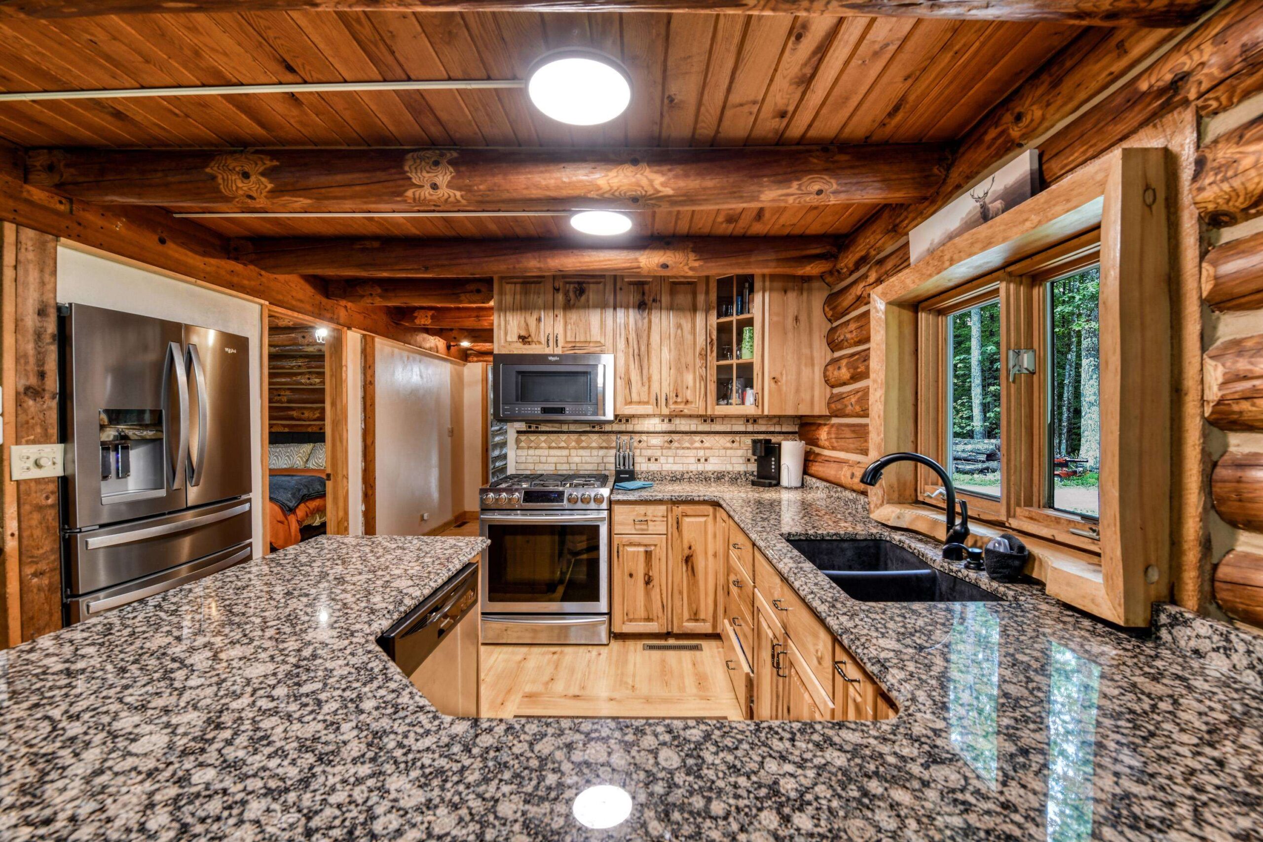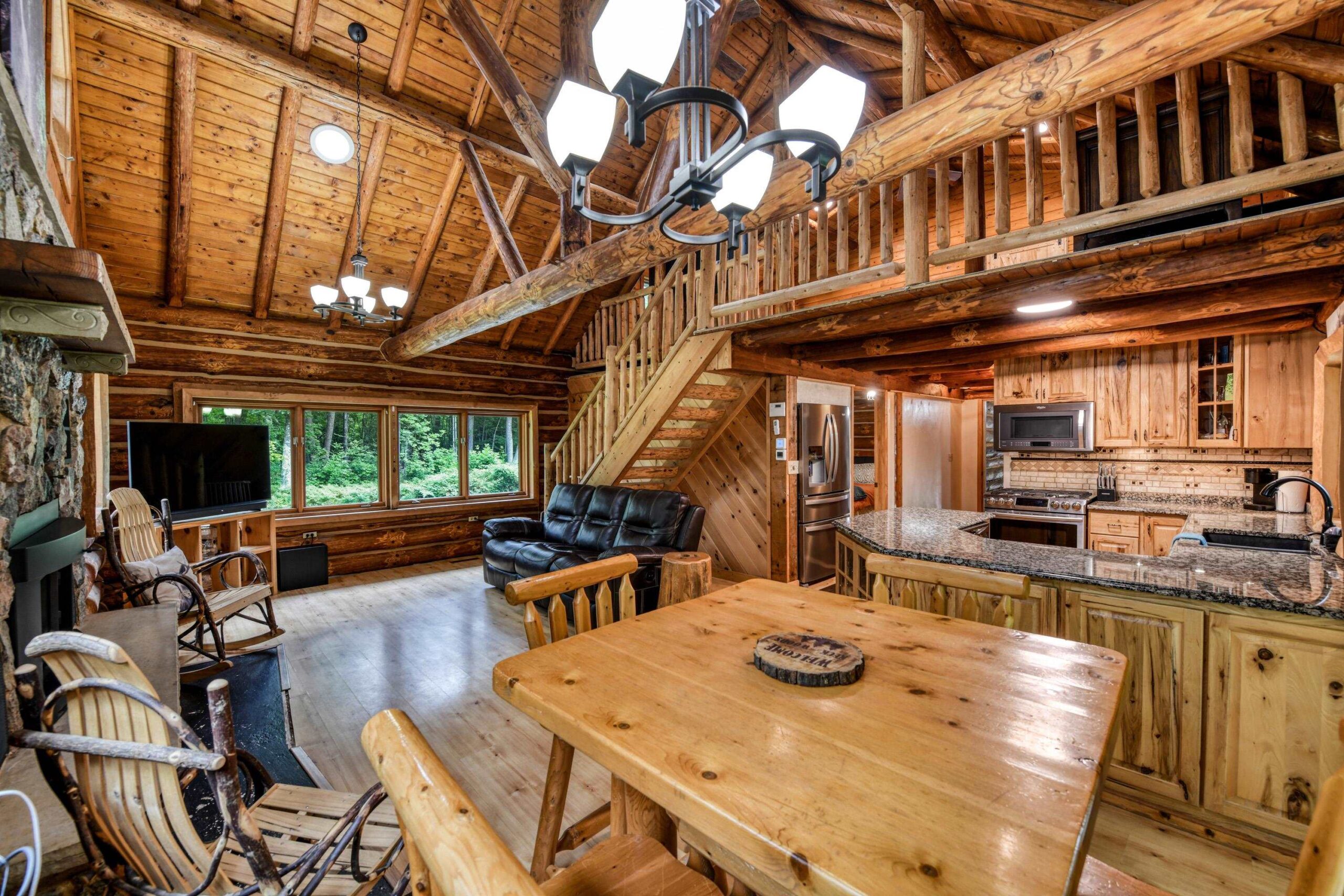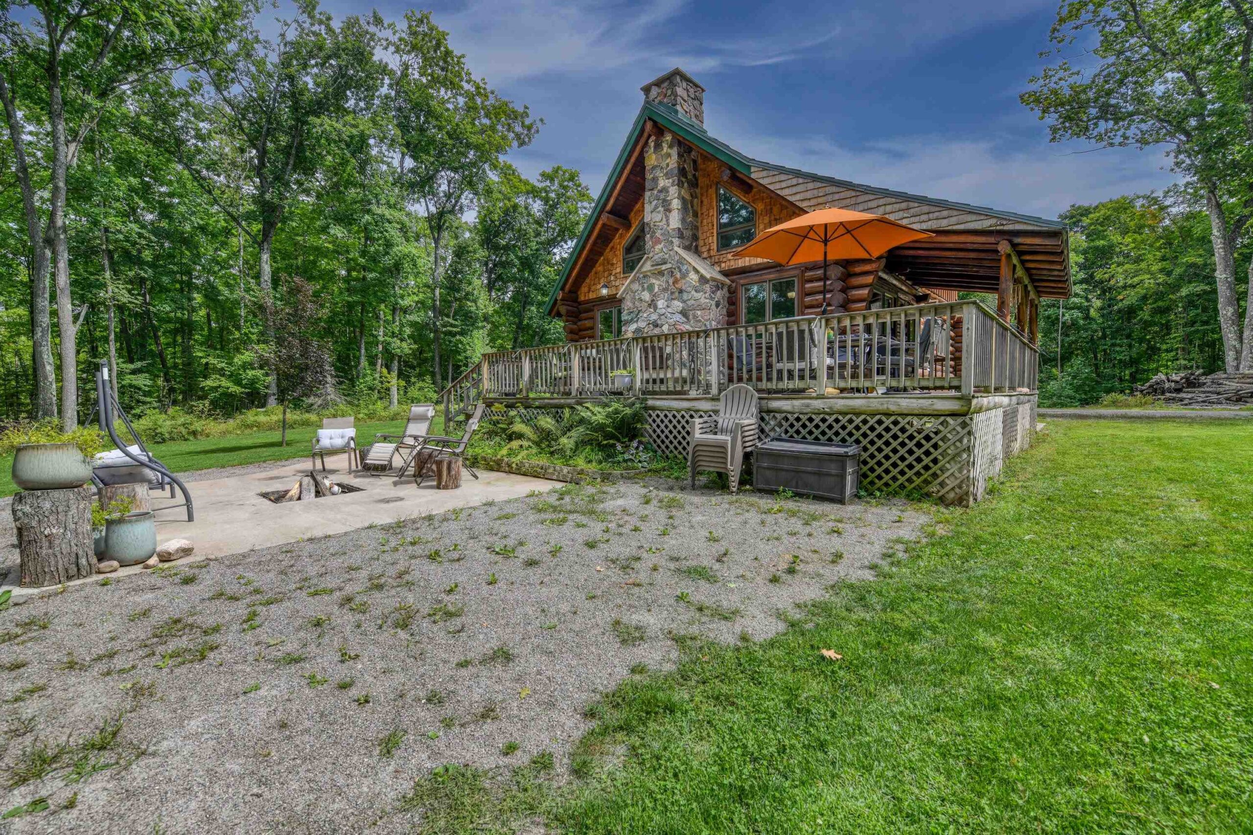 Escape to the Northwoods in this 3-bedroom 2-bath log home nestled on 4.78 wooded acres, just minutes from Lake Hilbert. This rustic yet refined home offers a blend of comfort and character, featuring a cozy wood fireplace, open concept, updated kitchen with granite countertops, renovated bath, wrap around deck, patio w/firepit, full basement with bedroom and new bathroom. A rare 40x60 garage has a heated office, finished upstairs w/bed and bath for additional living space and a 12x60 lean to for extra storage. The home is equipped with a back-up generator. Located on ATV/Snowmobile route. Whether you're looking for year-round home or a weekend retreat this unique property has the privacy, charm and location you've been looking for. Additional 4.78 acres for sale mls 50311040