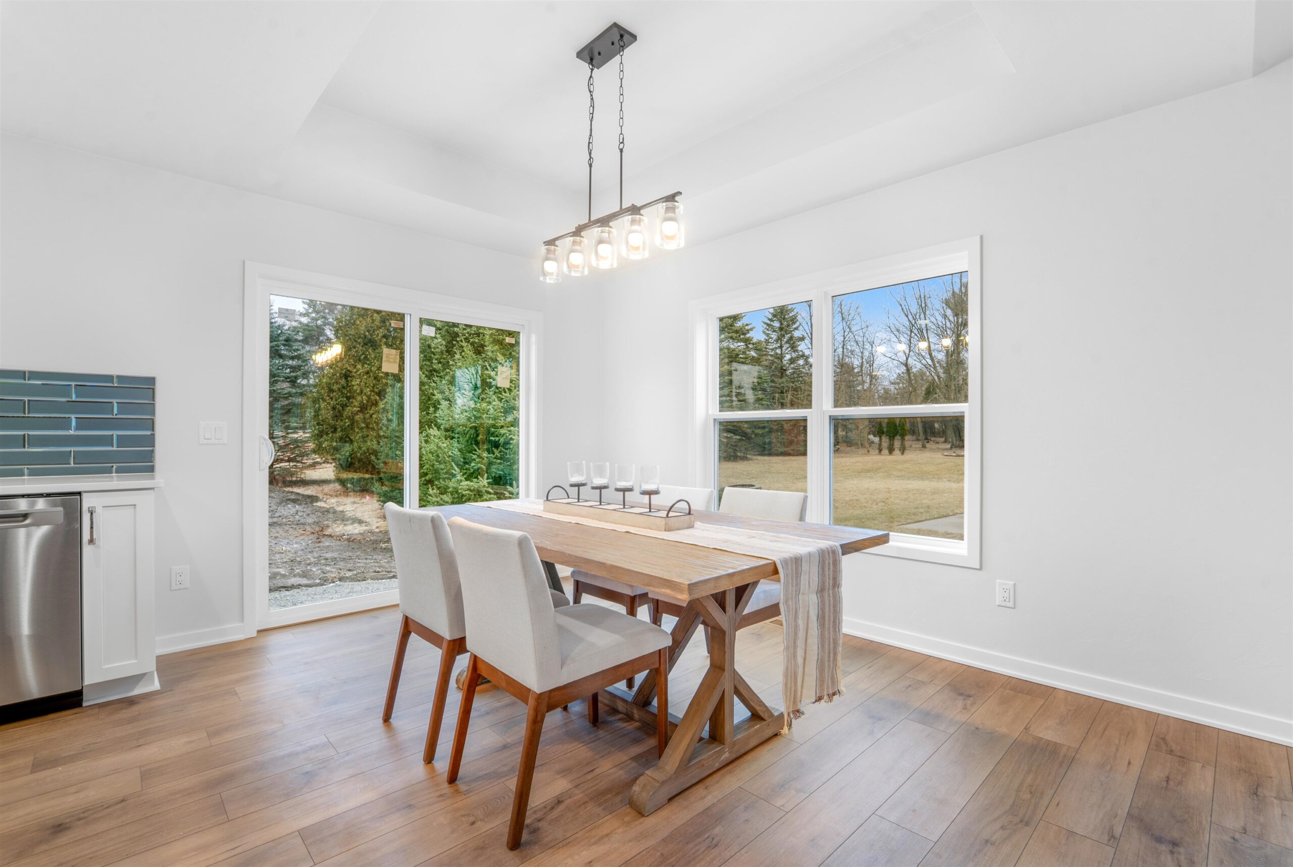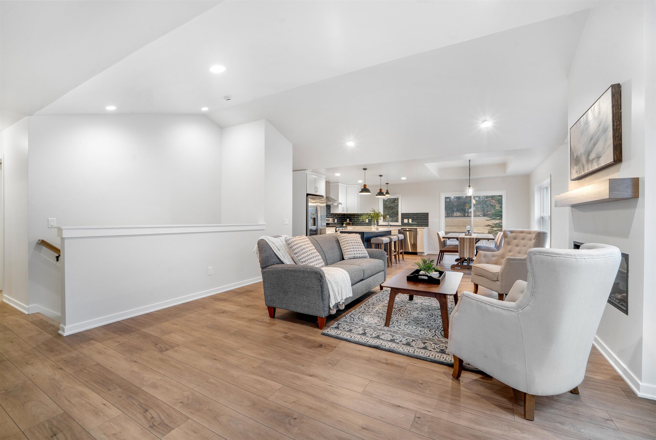 New Construction- open concept, with entry level convenience. Huge Living room w/LVP flooring & electric fireplace. The kitchen offers modern style finishes, with slow close drawers, Island & Pantry. There are 2 Bedrooms w/WIC, & 2 Full Baths with dual sinks. Includes a full basement, equipped with egress window & radon system. The poured concrete driveway, patio, & walkway leading to the home, & final seeding are included in the price. All brand new appliances included. Near Hwy 16, couple of miles from Lac Labelle and in the outskirts of Oconomowoc. NO HOA.