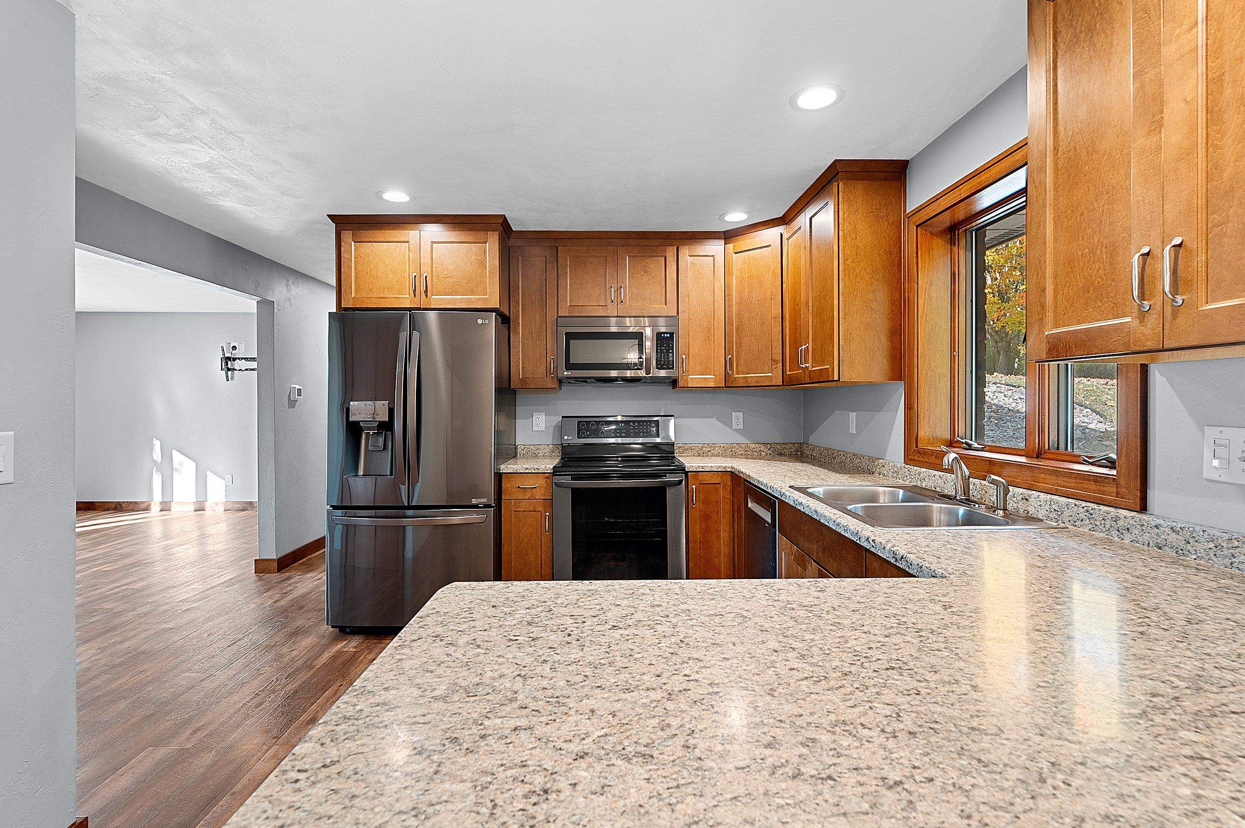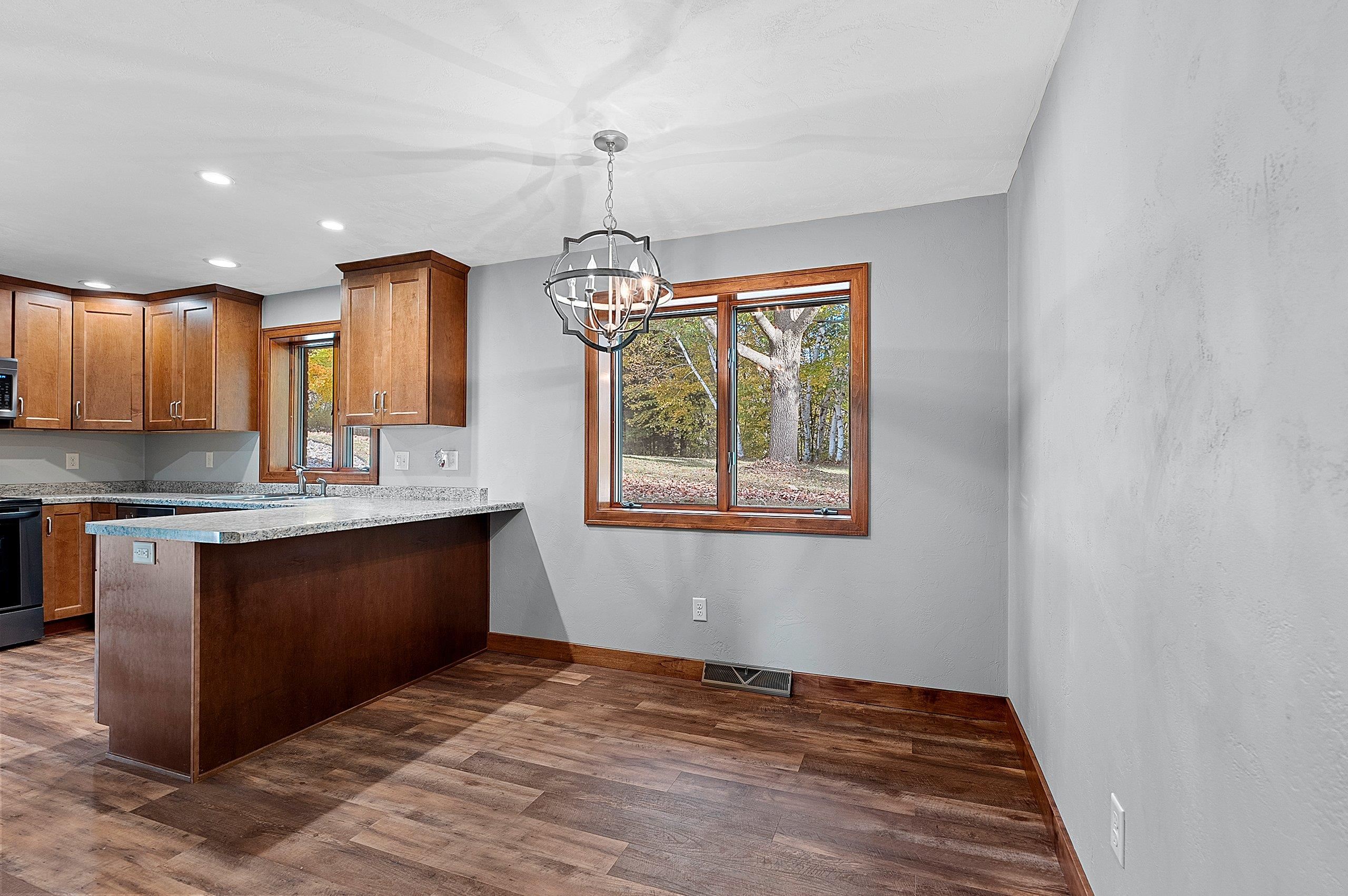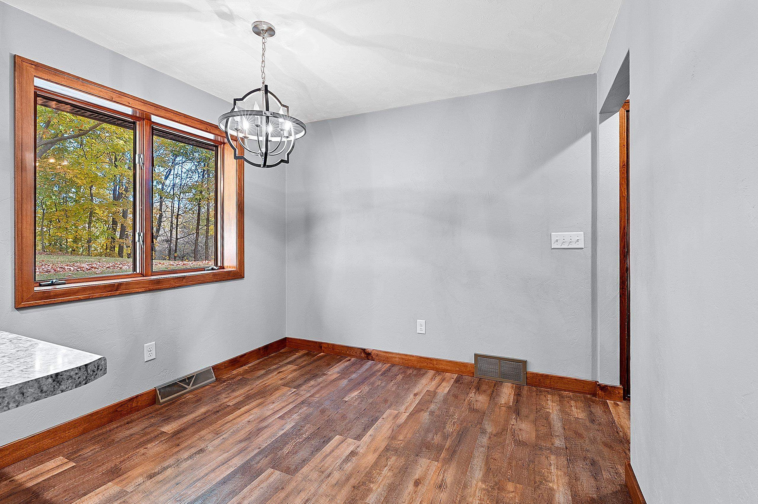 Nestled on 2.68 acres between Appleton and Green Bay, this beautifully updated home offers privacy, peaceful surroundings, and abundant wildlife. Set back from the road with a new concrete driveway, it features a 60x30 outbuilding, new mound system, and updated siding, roofs, and exterior doors. Professionally renovated by a home builder, it showcases a stylish kitchen with new cabinetry, countertops, appliances, and lighting. Additional highlights include conversion to natural gas, generator ready, a dual-sink vanity bath, luxury vinyl plank flooring, first-floor laundry, drop zone, spacious living room, and a lower-level family room. The lower level also offers a 3rd bedroom with walk-in closet and bathroom amenities in place. A rare find combining modern comfort and natural beauty!