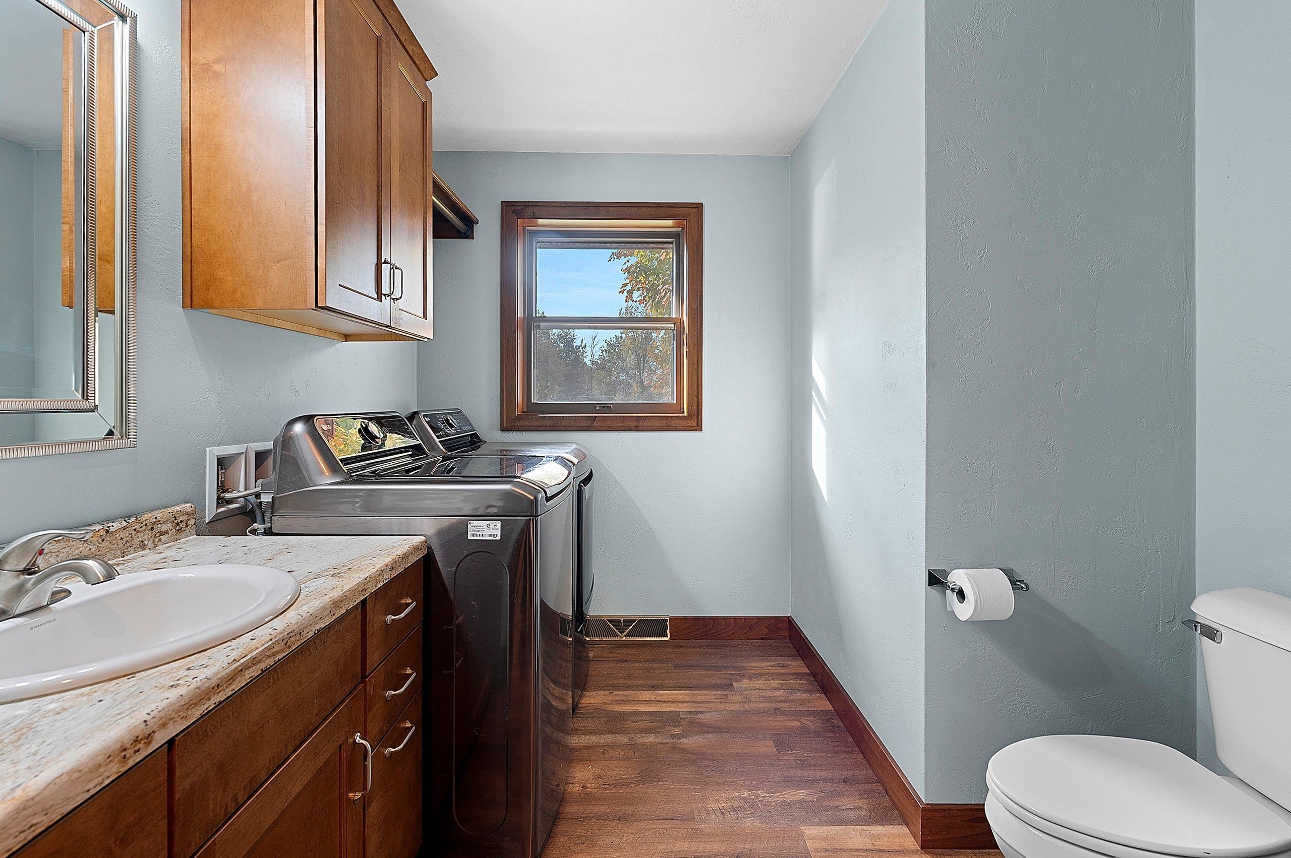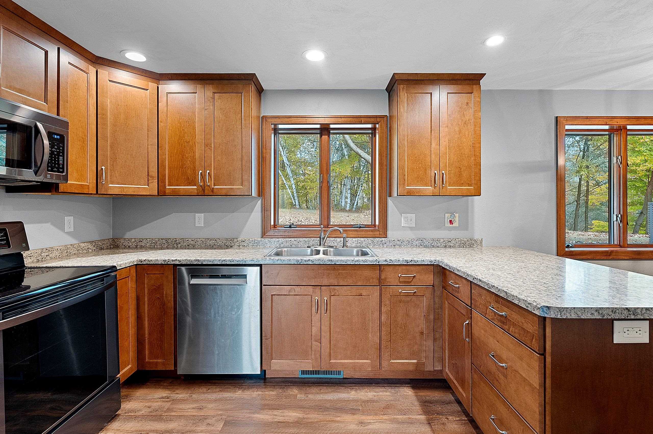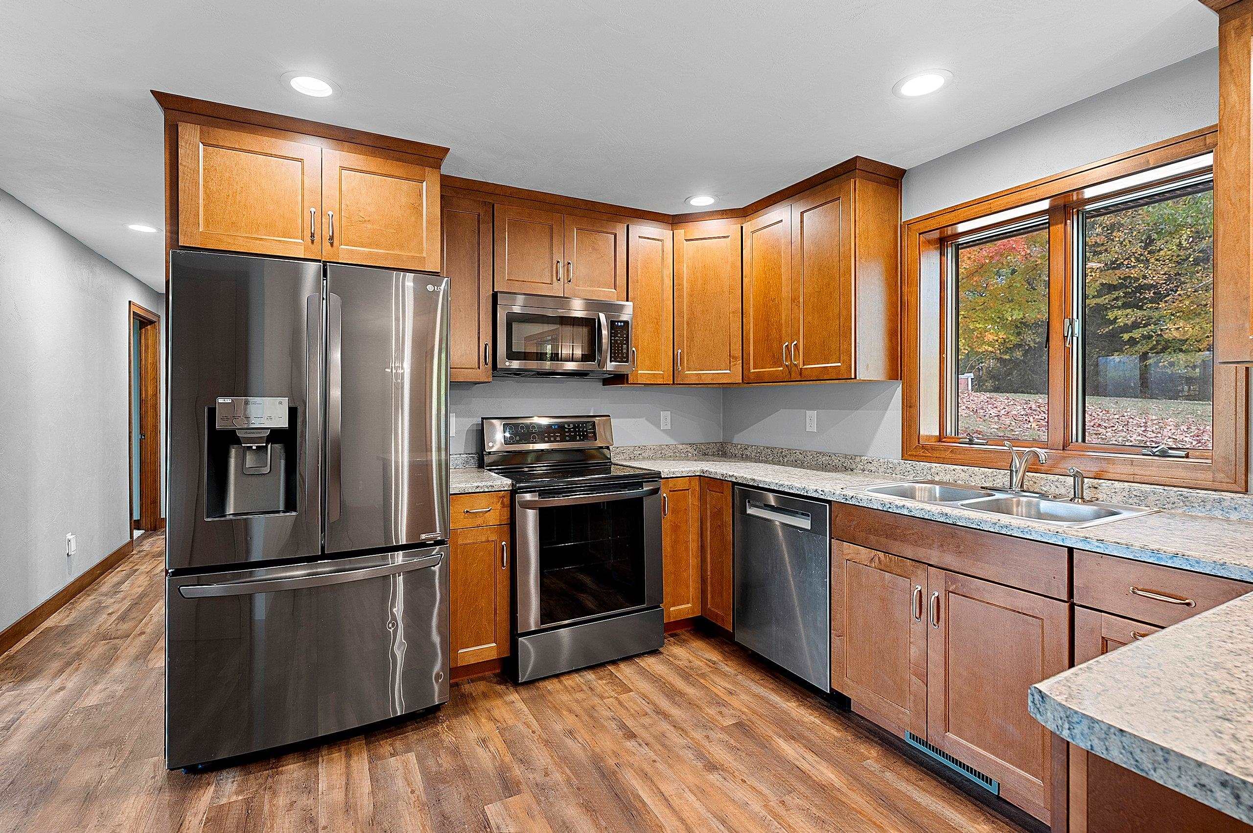 Nestled on 2.68 acres between Appleton and Green Bay, this beautifully updated home offers privacy, peaceful surroundings, and abundant wildlife. Set back from the road with a new concrete driveway, it features a 60x30 outbuilding, new mound system, and updated siding, roofs, and exterior doors. Professionally renovated by a home builder, it showcases a stylish kitchen with new cabinetry, countertops, appliances, and lighting. Additional highlights include conversion to natural gas, generator ready, a dual-sink vanity bath, luxury vinyl plank flooring, first-floor laundry, drop zone, spacious living room, and a lower-level family room. The lower level also offers a 3rd bedroom with walk-in closet and bathroom amenities in place. A rare find combining modern comfort and natural beauty!