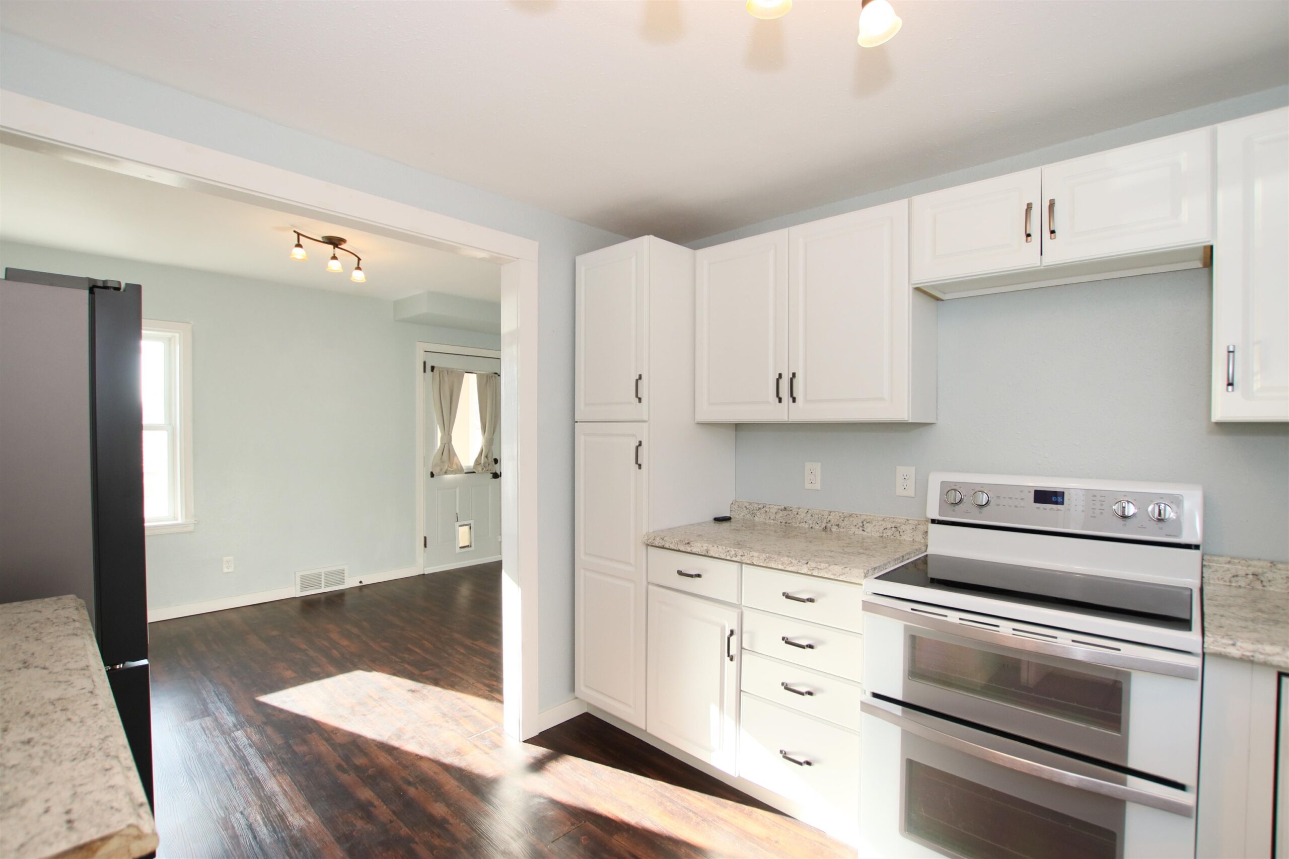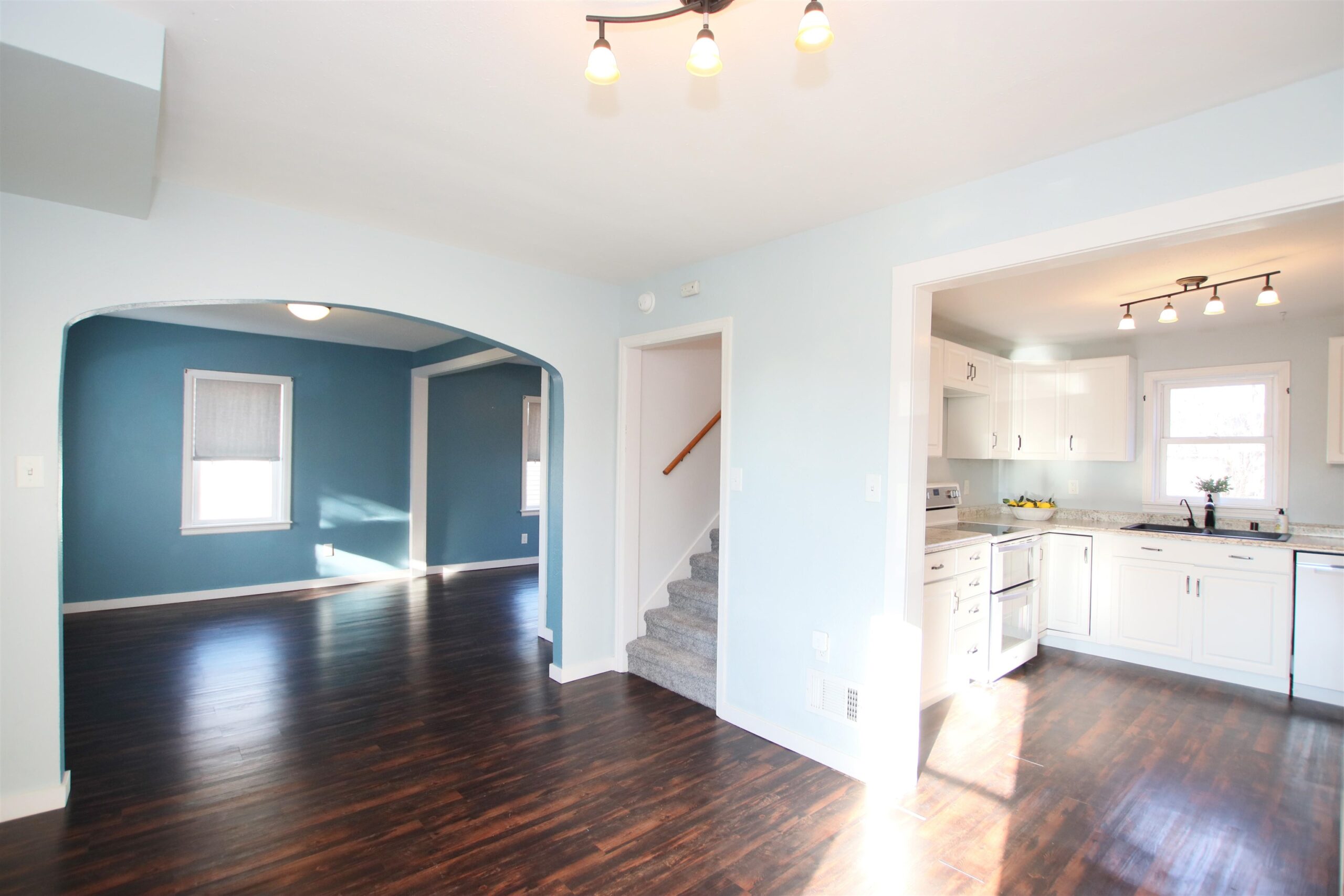 Nestled kitty-corner to the ball diamonds in St. Peter, a cute & modern 2 bed, 1.1 bath home greets you with its turquoise front door. From your front deck, step inside a mudroom-like porch which doubles as a great place to seasonally catch sunshine & sip coffee. The main living space features vinyl plank & white trim w/wide transitions between rooms - giving a more open feel. A double oven, dishwasher, newer fridge/garbage disp, & pocket ½ bath are found in the updated kitchen which overlooks the backyard. Other Items to note are: the sizable upper bath, updated plumbing & electrical (visible in the LL), 2016 well, attached garage w/back storage room, & yard w/garden-shed/firepit. This location will have you becoming a regular at Urban Fuel, Little Farmer, Kiekhaefer Park, & more!
