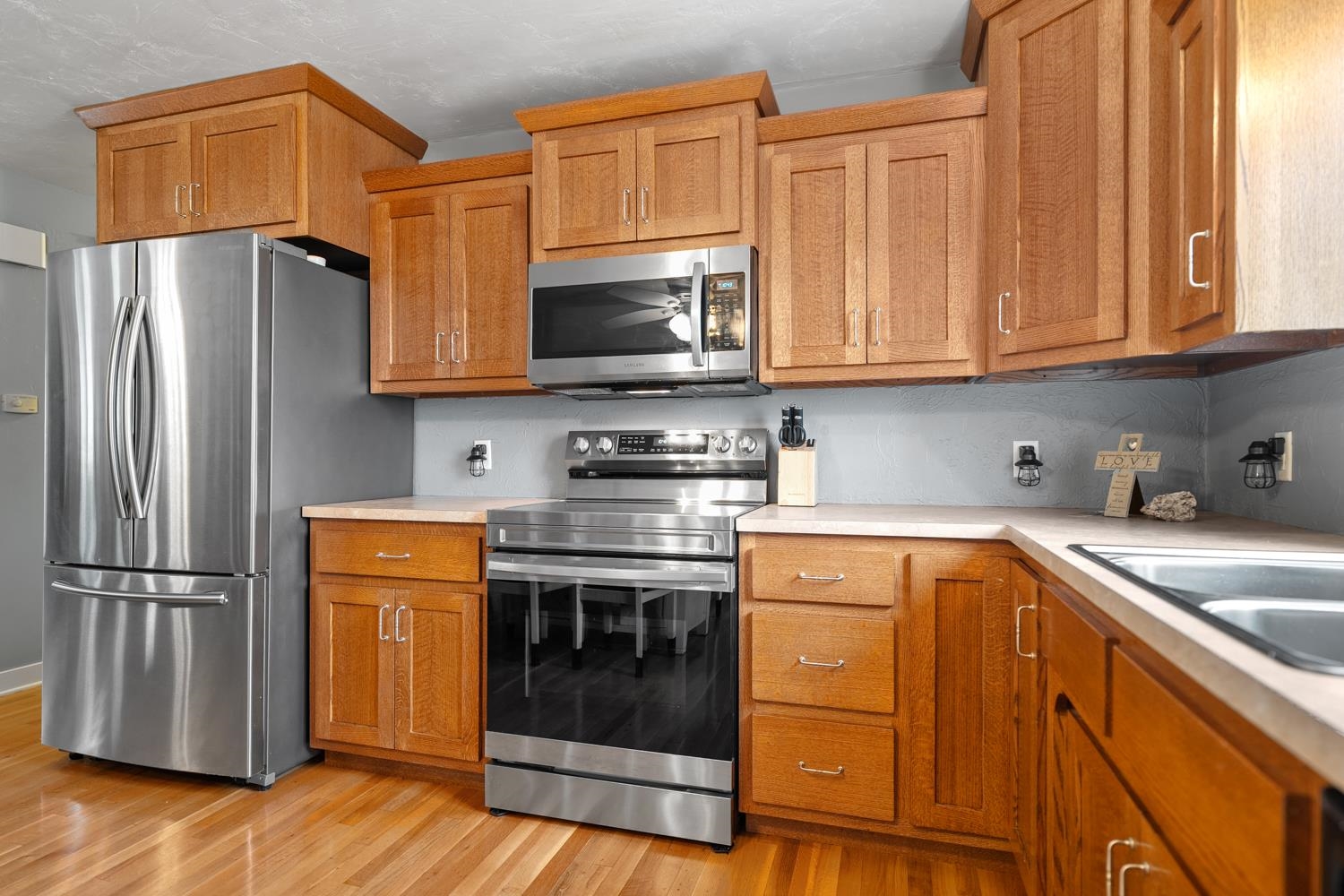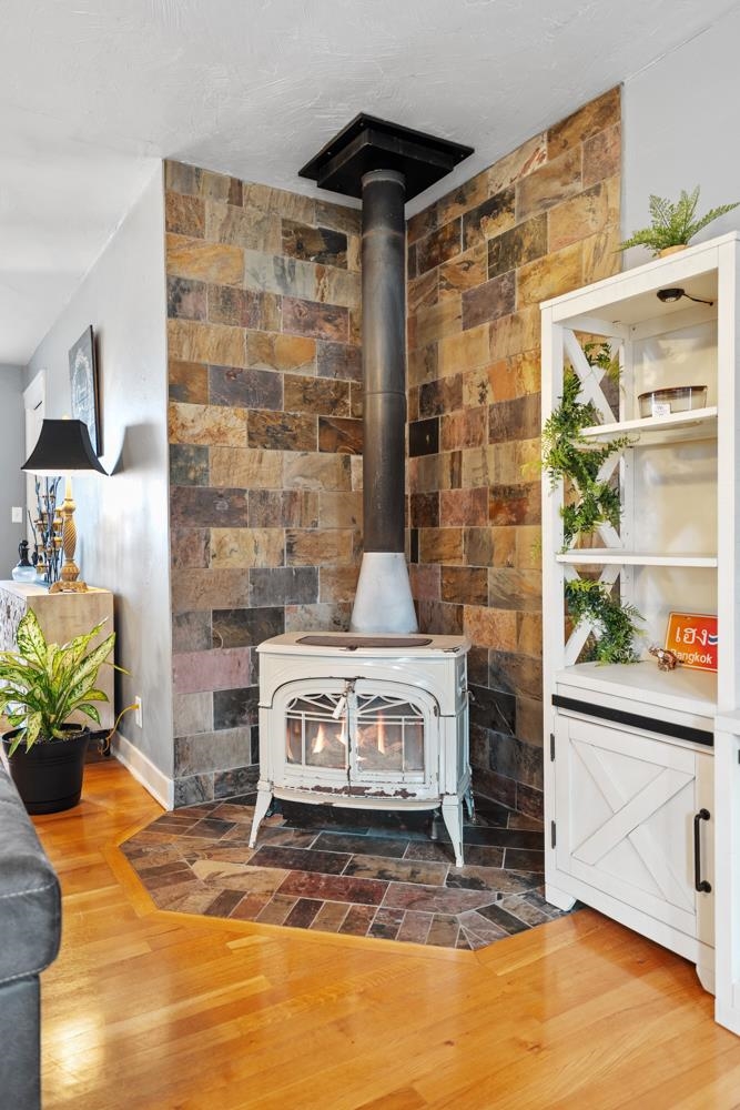 Welcome home! Located on a 1 acre lot minutes from Fox Valley amenities, this 4BR/2BA ranch home greets w/refinished pecan-oak hw floors, 3-pnl prairie doors & modern open-concept living space! LR w/ bay window & wood-stove w/slate surround. Kitchen w/pantry, ss appliances, and gorgeous quarter-sawn oak cabinetry! Primary bedroom w/alder hw floor & full en-suite w/impressive dual-spout walk-in tiled shower. Main floor bedrooms feature lit closets w/organizers! Main bath w/unique tile shower surround. LL adds 685 sqft composed of a 4th bedroom w/ full egress & large rec-room w/unfinished floor. Unfinished portion offers clean, dry storage & laundry room w/included washer+dryer. 2.5 stall attached garage & bonus 1-stall behind home. Back-yard w/patio & beautiful scenery! Freedom School dist.