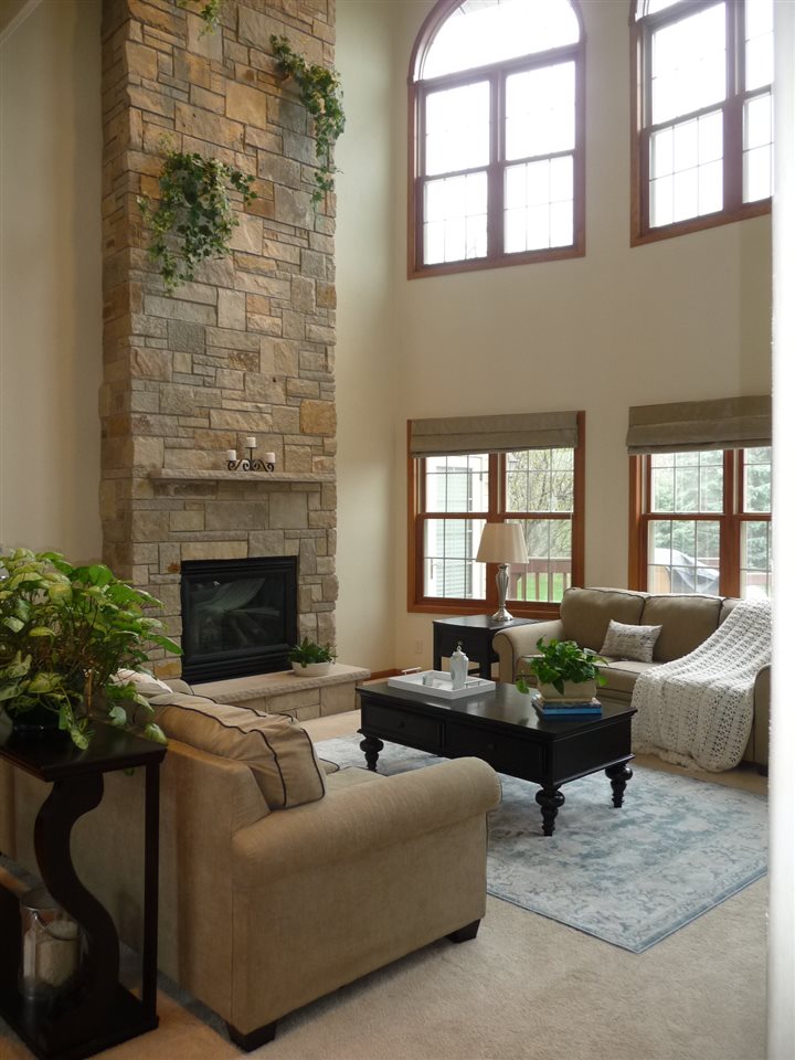 Drama! And Lots of It! From the towering front entry to the expansive deck, you will find creative details, dramatic finishes, distinctive style and three gas fireplaces! A spectacular staircase, a two story living room, a library and a private office are exceptional. The kitchen with its large center island, cherry cabinetry and pantry is a hands down winner. A Family Room framed with beautiful windows is a comfy place to linger while 4 bedrooms, 5.1 baths and a finished Lower Level with large game, exercise & pub areas and a sauna accommodate active and demanding life styles.
