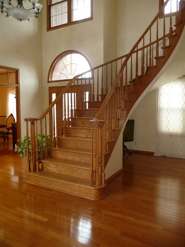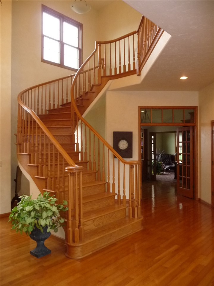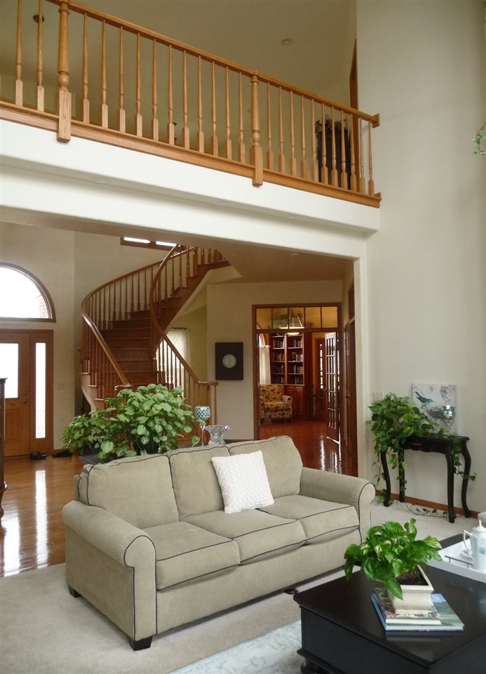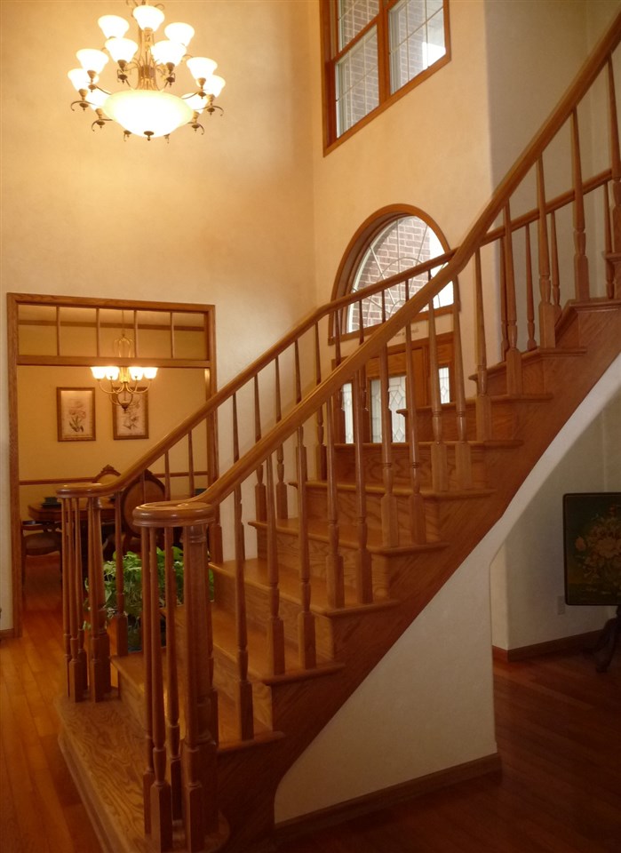 Drama! And Lots of It! From the towering front entry to the expansive deck, you will find creative details, dramatic finishes, distinctive style and three gas fireplaces! A spectacular staircase, a two story living room, a library and a private office are exceptional. The kitchen with its large center island, cherry cabinetry and pantry is a hands down winner. A Family Room framed with beautiful windows is a comfy place to linger while 4 bedrooms, 5.1 baths and a finished Lower Level with large game, exercise & pub areas and a sauna accommodate active and demanding life styles.