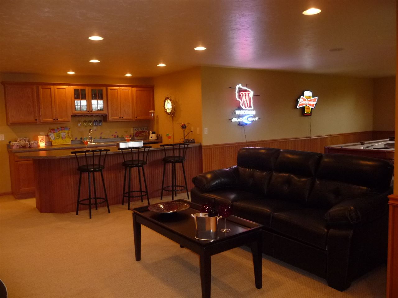 Range, Refrigerator, Microwave, Washer, Dryer, Tanning Bed, Pool Table, Refrigerator Behind Bar, Water Softener & Window Treatments.