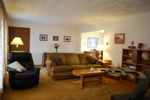 Well maintained ranch home on 1.3 Acres. Kitchen has breakfast bar, lots of cabinets & includes appliances. Big living rm features bow window & alcove. Dining rm has patio door out to deck. 3 berms. 1.5 baths. Convenient 1st floor laundry. The full basement is ready for you to finish for additional living space. Attached 2 Car Garage (24x28) has shelving & workbench. Deck. Nicely landscaped yard--mature trees, raised garden beds, decorative rock and a campfire pit, too! Country living at an affordable price