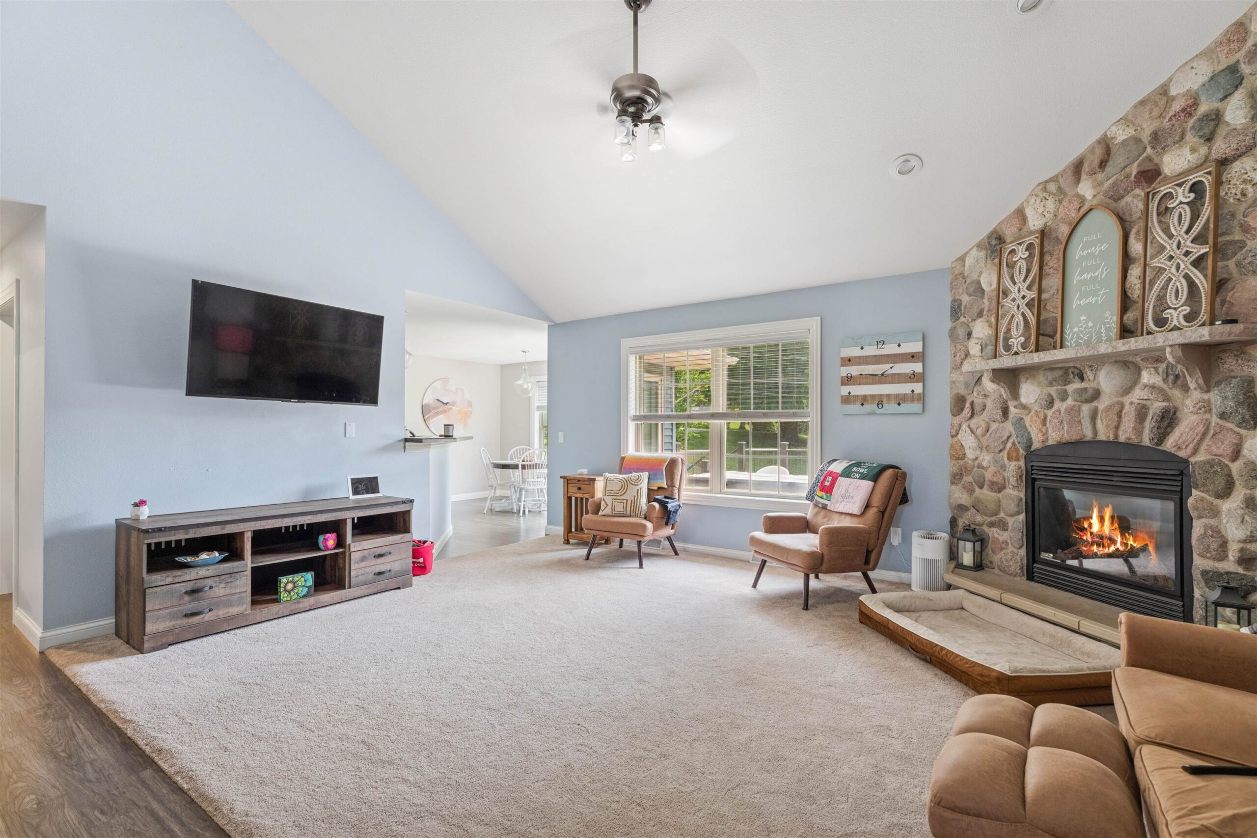 This Beautifully Updated 4 Bedroom, 3 Bath, Walkout Ranch w/ a 3 Car Attached Garage w/ over 3,400 finished Sq Ft is in a great Country setting just east of Fond du Lac is just what you've been waiting for! From the spacious master suite w/ a jetted tub, walk in shower, & 13X4 WIC to the gorgeous Living Rm w/ a Gas FP, through the Tastefully Finished Walk Out Basement, this home has everything you could want and more! There's a newer 32X17 composite deck off with an electric sun shade off of the dining area & a 32X16 stamped concrete patio off of the lower level providing multiple options for enjoying the outdoors. The lower level also has a 4th BR w/ an 8X8 WIC & a full bath w/ heated floors. The home is wired for sound & even includes a 16X10 shed. Call Now to Experience it for Yourself!