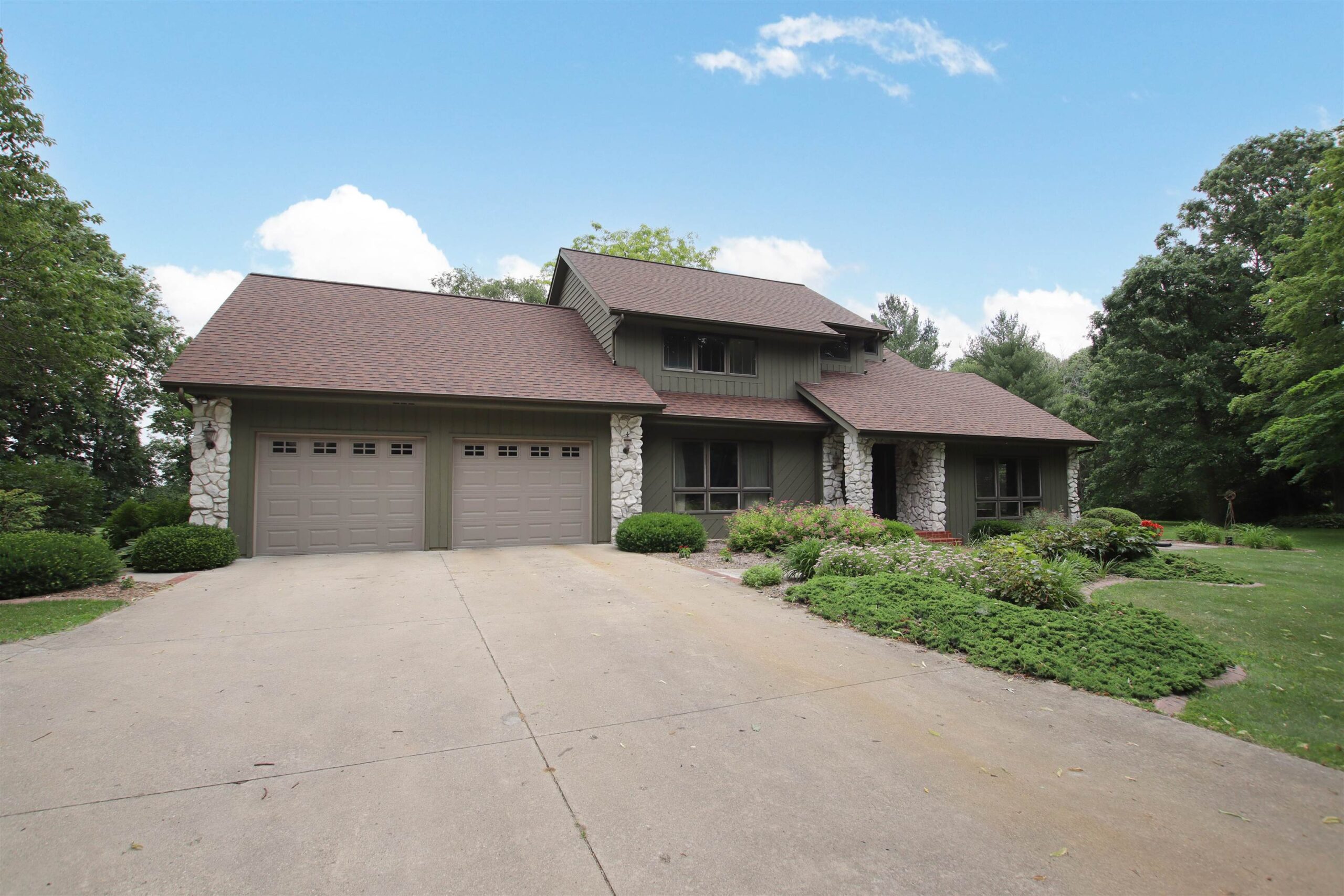 -QUIET AND CONVENIENT NEIGHBORHOOD! Close to Hwy 151, but outside of city limits, this 4 bedroom, 2.5 bath home has much to offer. 3 car garage and almost half acre lot. Main floor master suite with full bath and large walk-in closet. Cathedral ceilings, and loft that overlooks gas fireplace. Basement is ready for finishing!