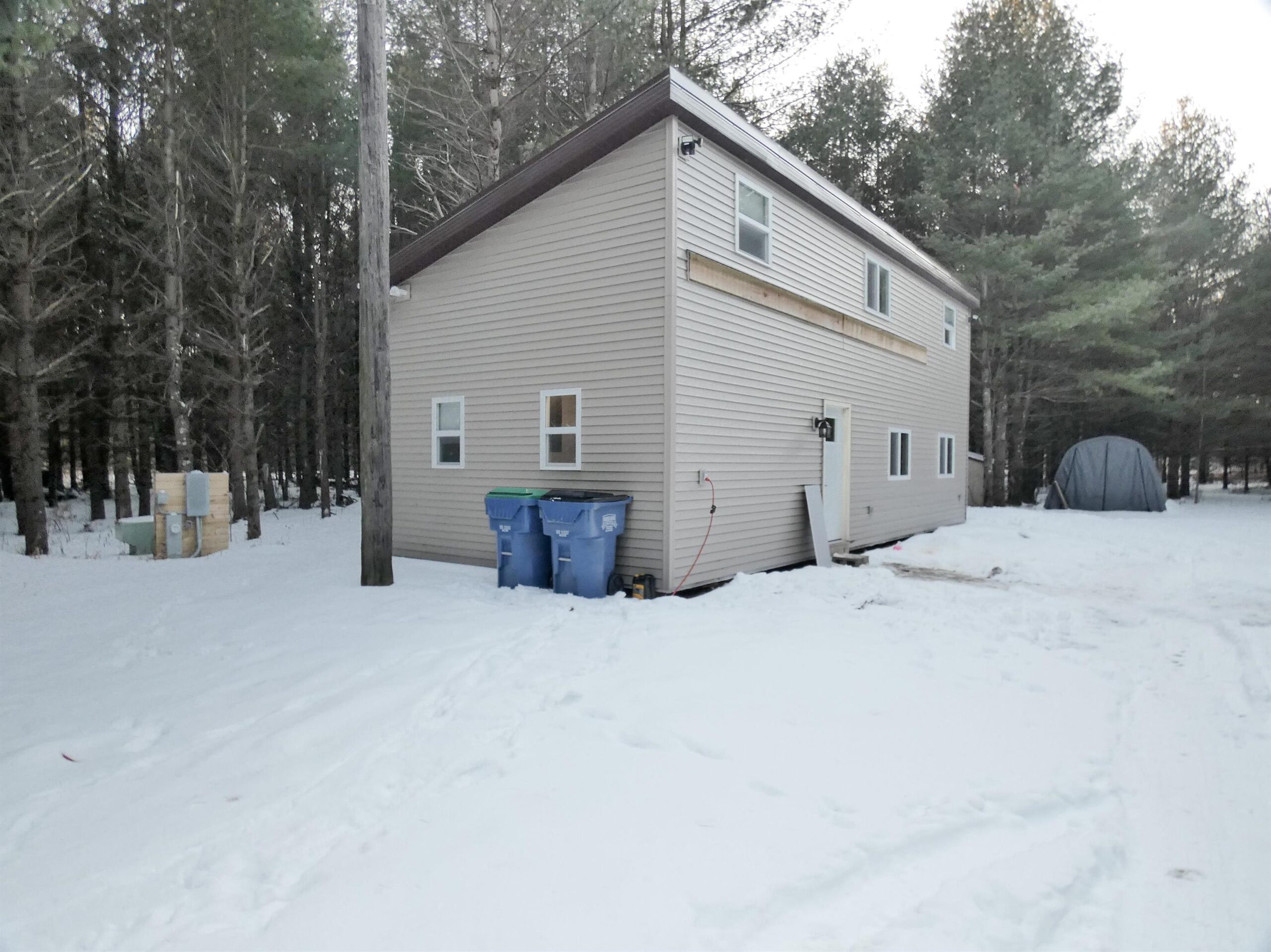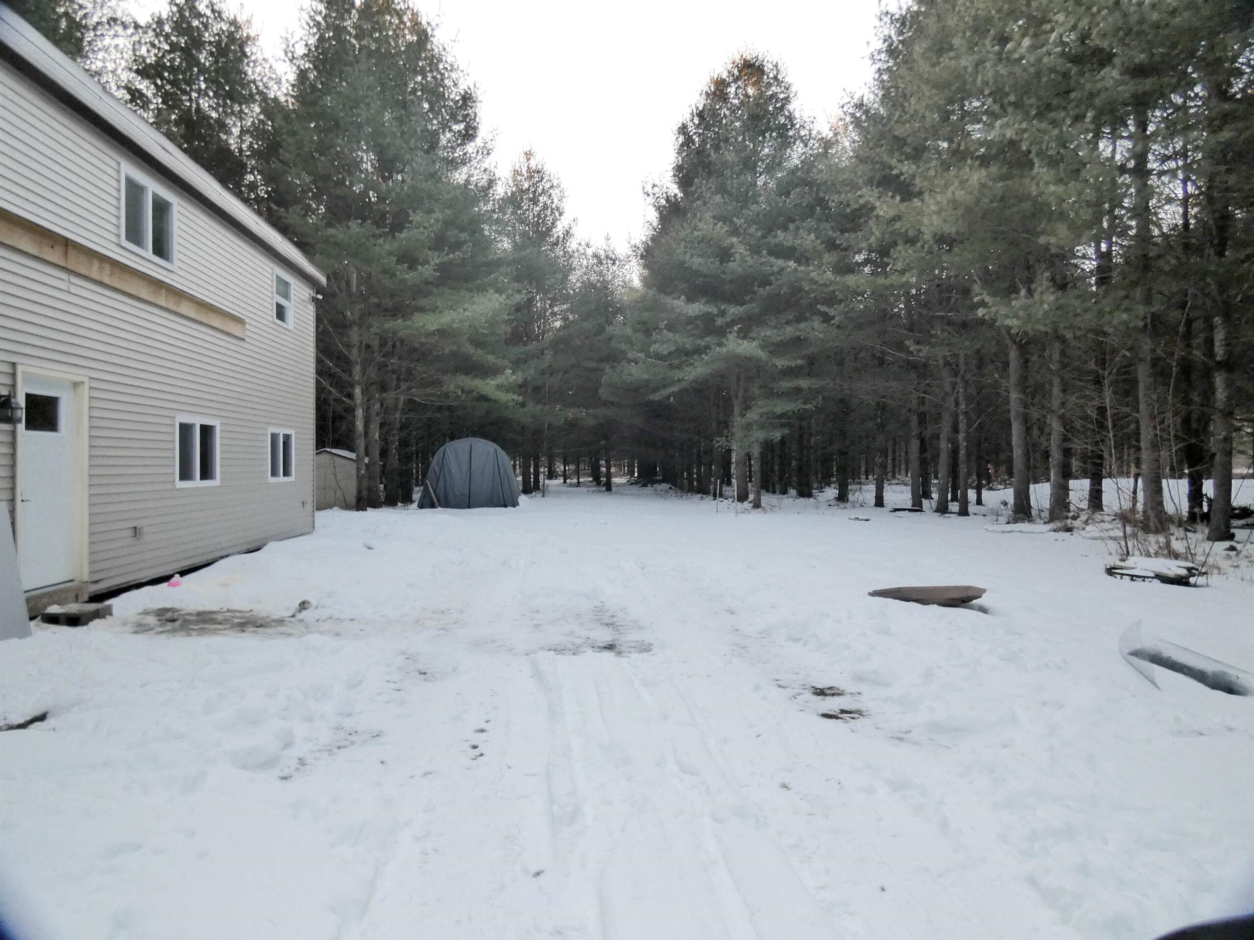 Live Small on a Big piece of land. Over 25 acres and a "Medium" house (not a small house). built in 2021 with new appliances. (refrigerator, range/oven, dishwasher). Electric service has backup generator. A drilled well with water softerner. Mound septic. side of home has a ledger board to accommodate an attached garage? or other addition? further down the road on this same property is a cleared out area with road access for a future building site.