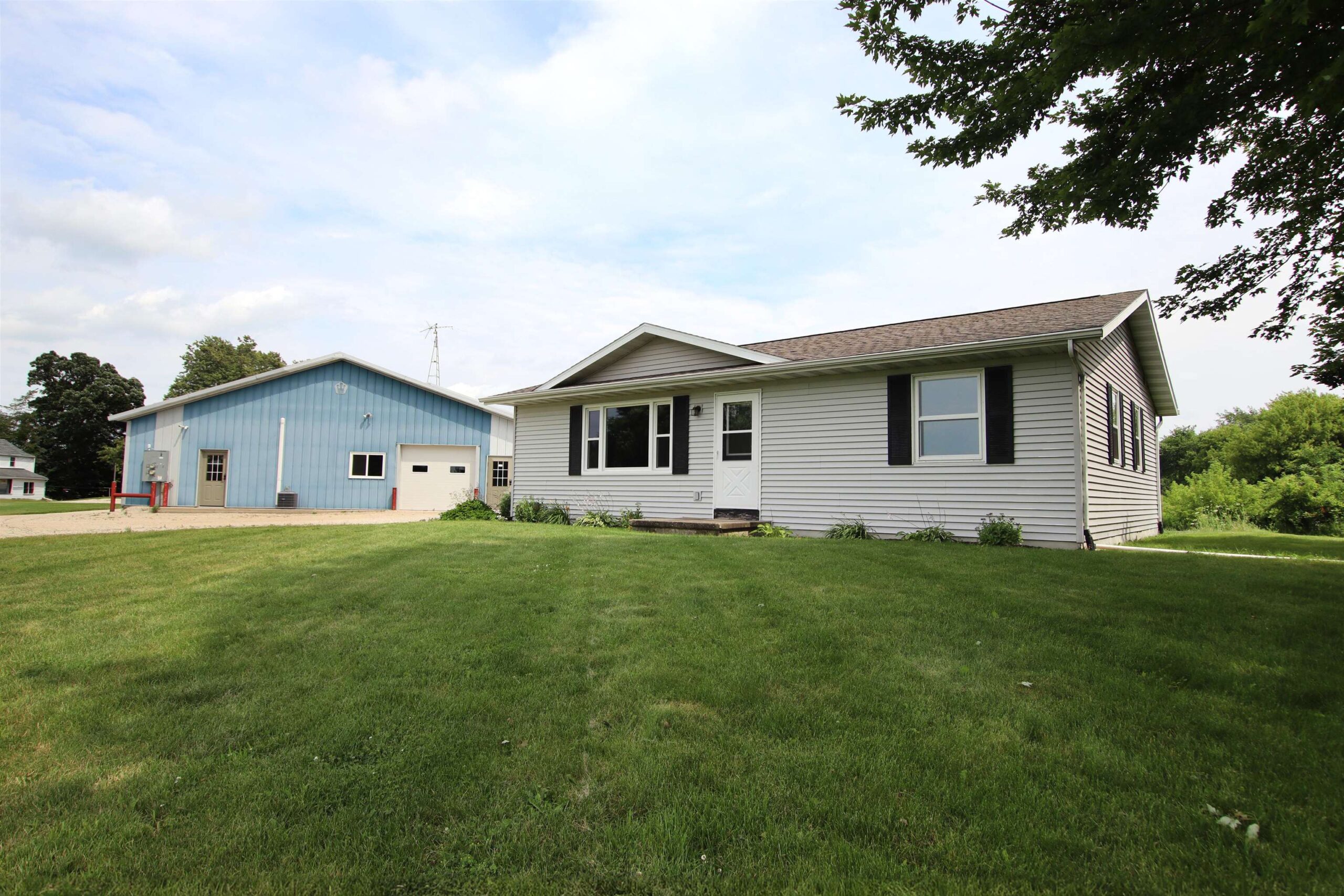 Discover a charming ranch-style home in Southeast Fond du Lac, situated on approximately 2.9 acres w/ a 50x150 Commercial Workshop & view of farm fields & pastures. On the main floor of this approx 1,544 Sq Ft home is 2 bedrooms & 1 full bath. In the lower level you'll find the rec room, half bath & large 3rd bedroom w/ Egress windows. The outbuilding is equipped w/ in-floor radiant heat, new boiler & thermostat, concrete floors, 14 ft high liner paneled walls/ceilings & industrial lighting. New power garage doors w/ openers in several areas. The 2,400 sq ft office space is custom finished with quality style & materials making for a comfortable place to be. The acreage & workshop put this property over the top, giving hobby enthusiasts & entrepenuers the perfect set up for a one stop shop!