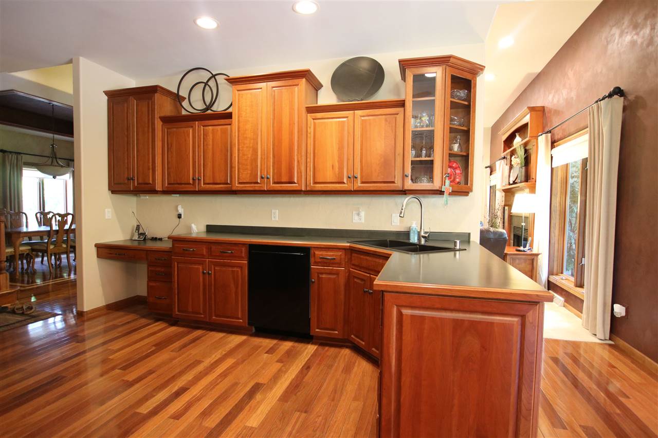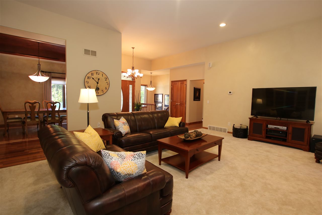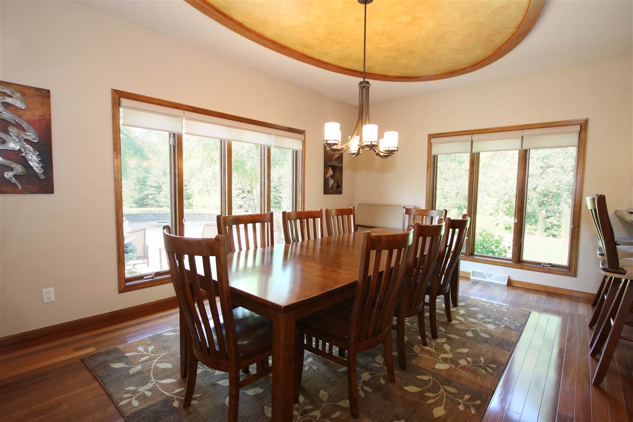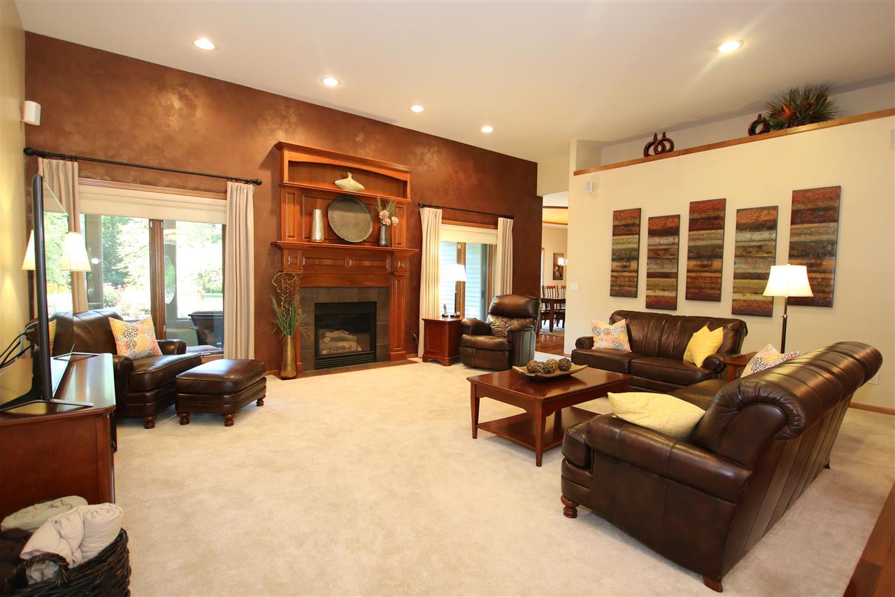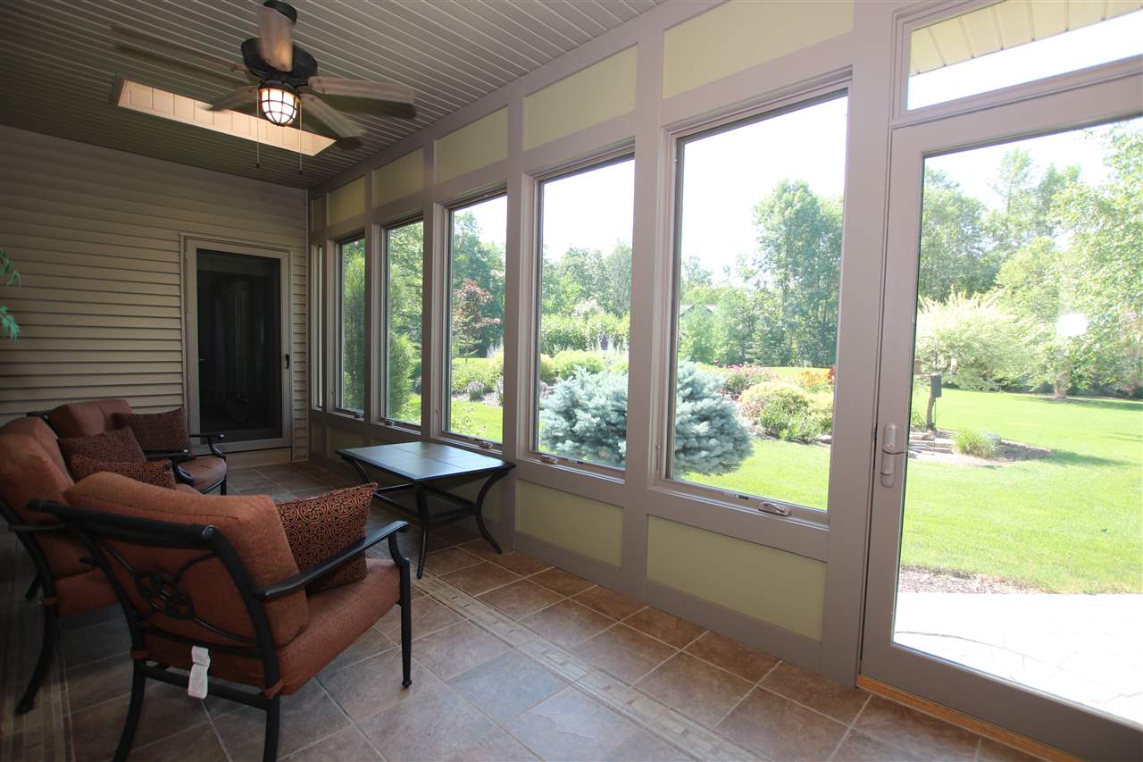 Impeccable Ranch with Captivating Landscaped Land. Exclusive country subdivision. Home features 3 bedrooms, one is a beautiful master ensuite. Extensive living space w/ towering fireplace. Limitless 1st floor laundry area. Custom kitchen features cherry cabinets, walk in pantry, Jenn Air stove top, builtin’s galore & adjoins entertaining sized dining area looking out to the professional landscaped backyard through the wide-ranging windows. Formal dining. Brilliant Brazilian hardwood flooring. Tiled 3 season rm is a hot spot to enjoy. Theater room (or 4th bedroom) 3 zoned heating/cooling.