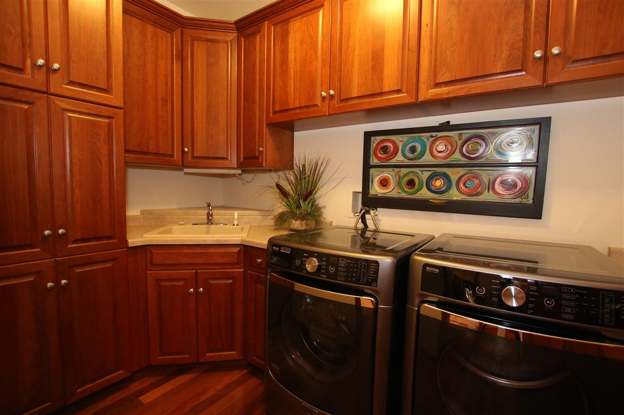 Refrigerator, stove, oven, microwave, Iron Curtain, theater movie projector, sound components, window treatments, washer, dryer, basement wood shelves